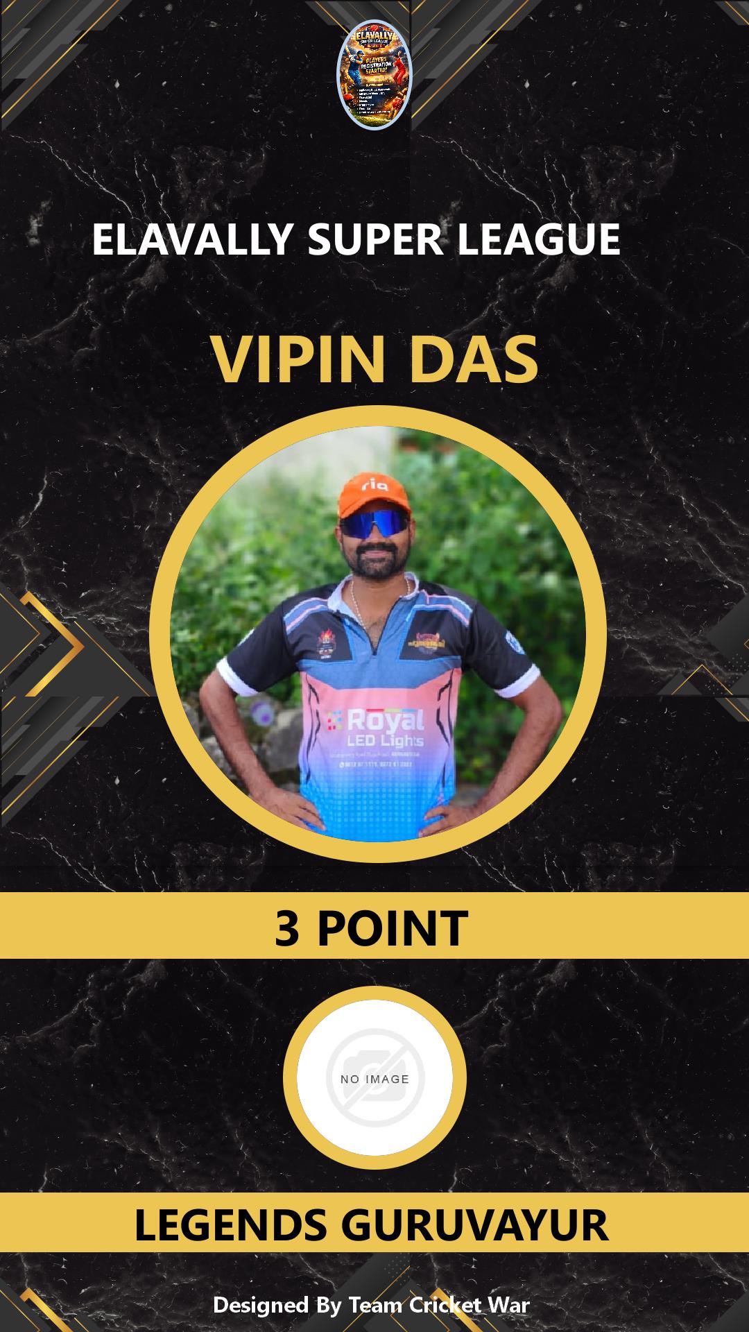 ALLROUNDER, AGE : 33 GURUVAYOOR Bid Amount : 3 Team : LEGENDS GURUVAYUR Download ID Card VIEW PROFILE |