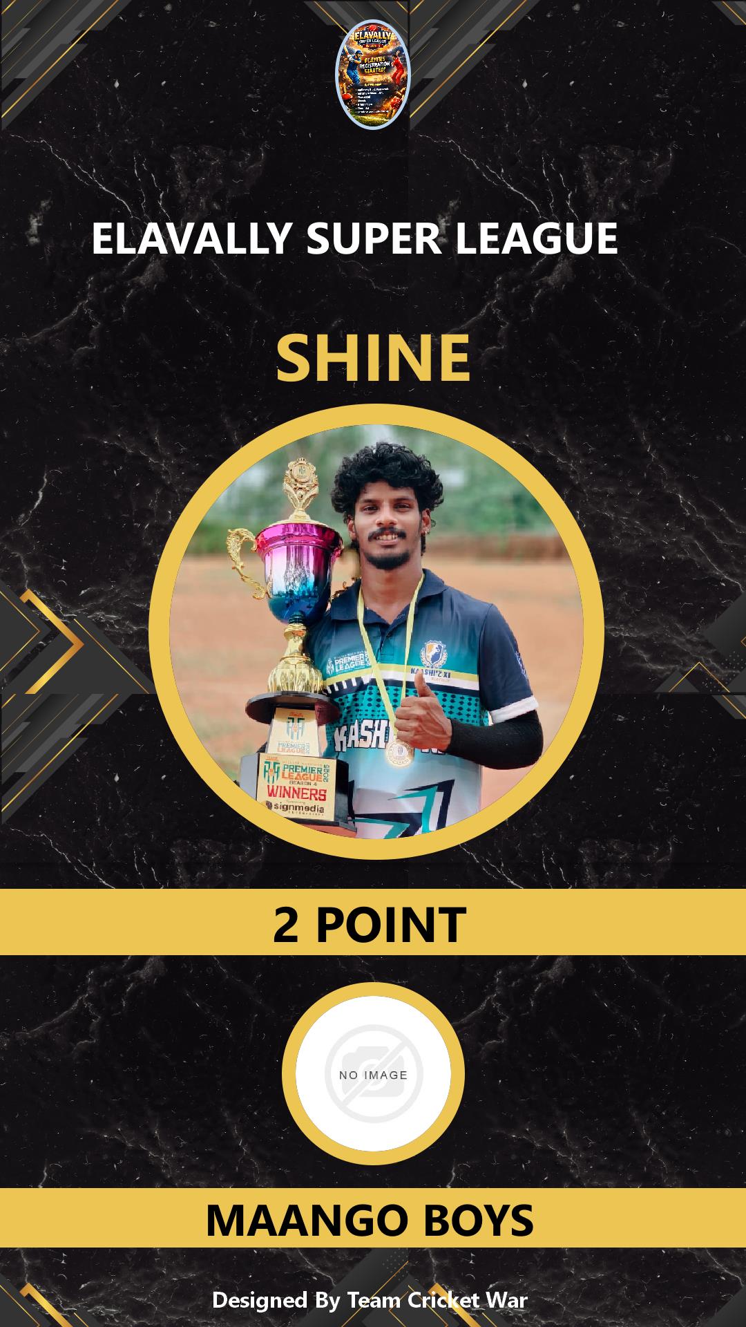 ALLROUNDER, AGE : 36 ELAVALLY Bid Amount : 13 Team : MAANGO BOYS Download ID Card VIEW PROFILE |