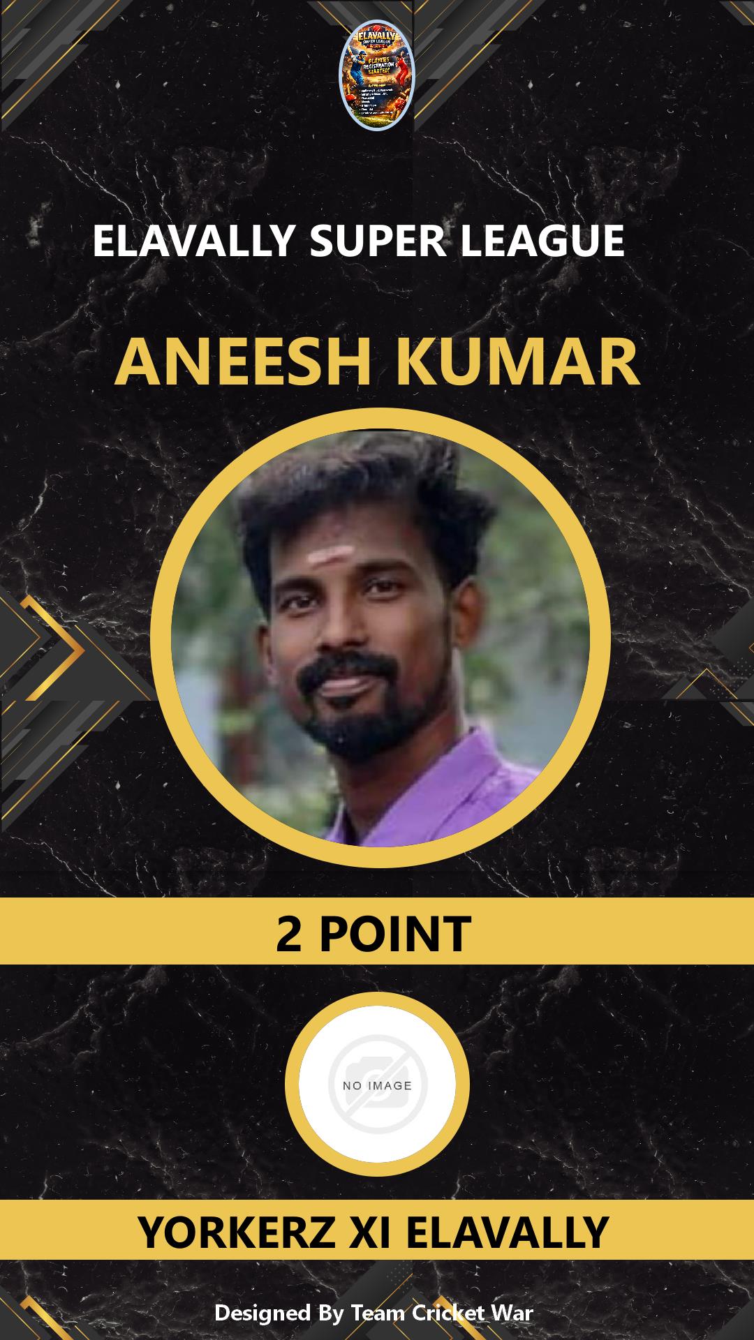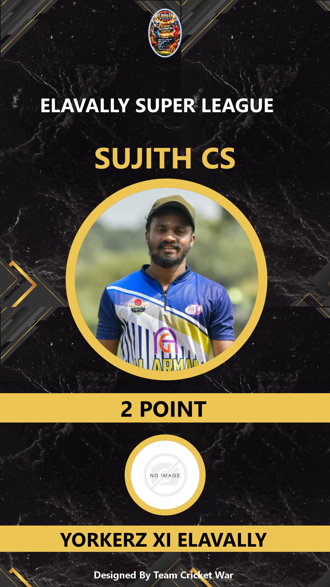 ALLROUNDER, AGE : 30 MANALUR Bid Amount : 7 Team : YORKERZ XI ELAVALLY Download ID Card VIEW PROFILE |