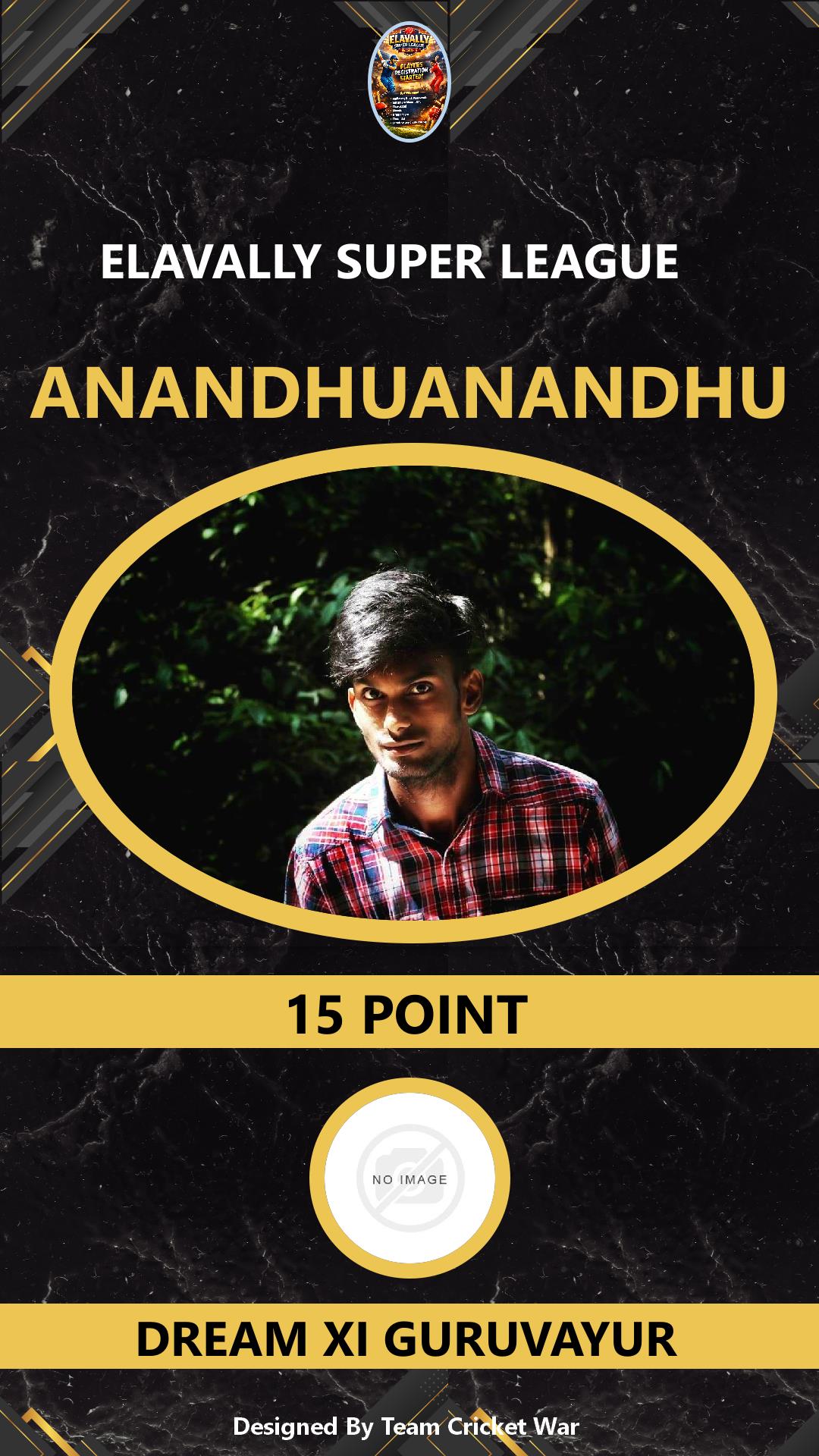 BATSMAN, AGE : 30 GURUVAYOOR Bid Amount : 2 Team : DREAM XI GURUVAYUR Download ID Card VIEW PROFILE |