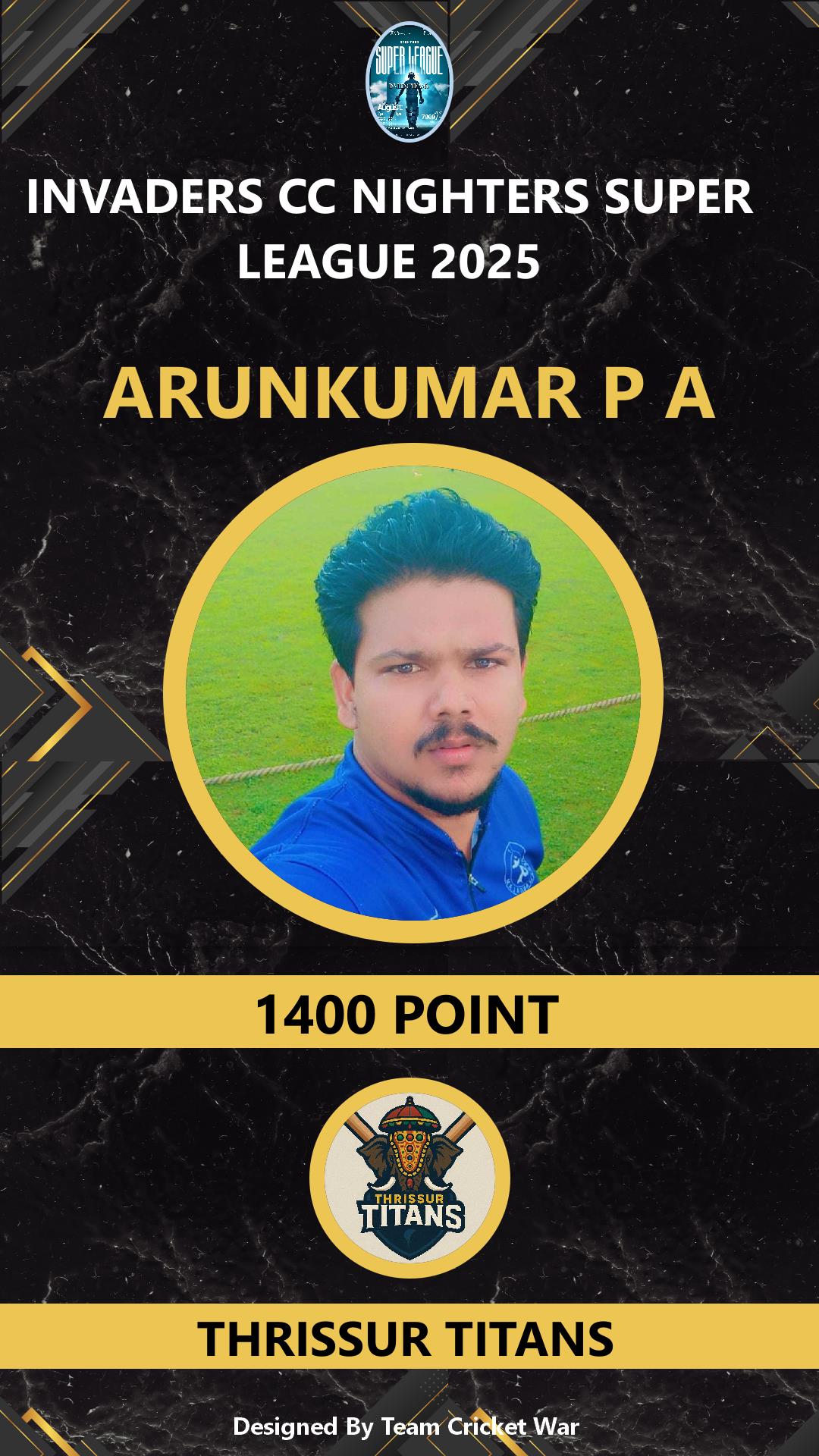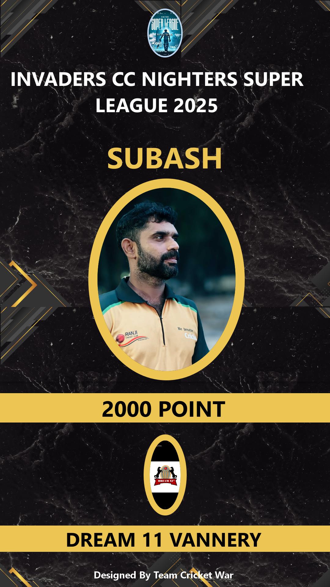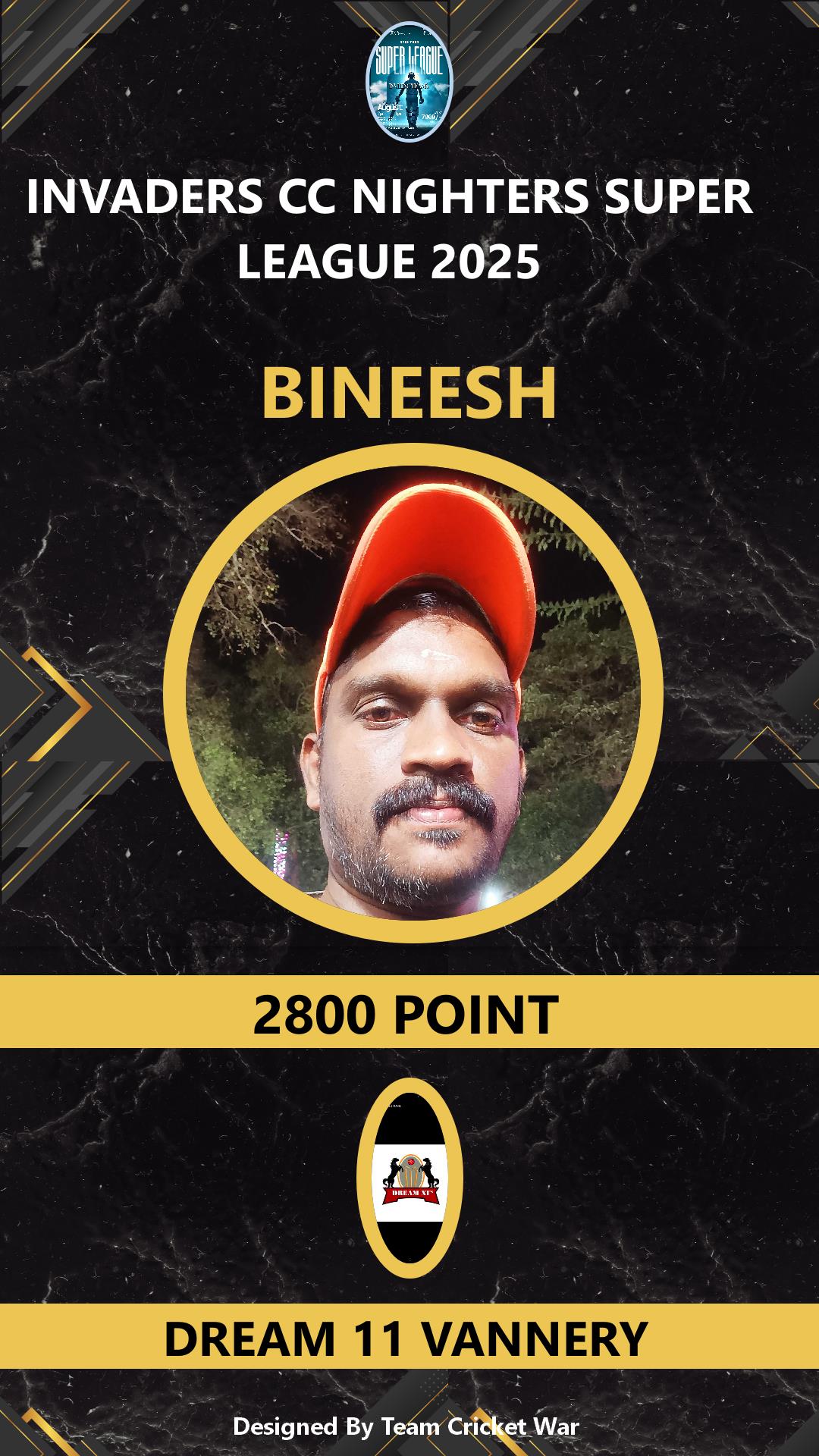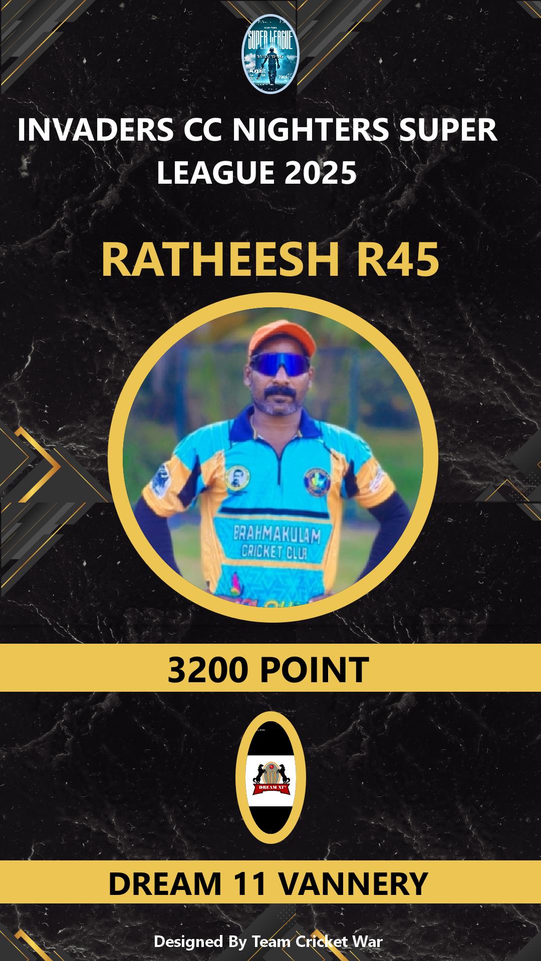BATTING ALLROUNDER, AGE : 32 GURUVAYOOR Bid Amount : 1600 Team : DREAM 11 VANNERY Download ID Card VIEW PROFILE |