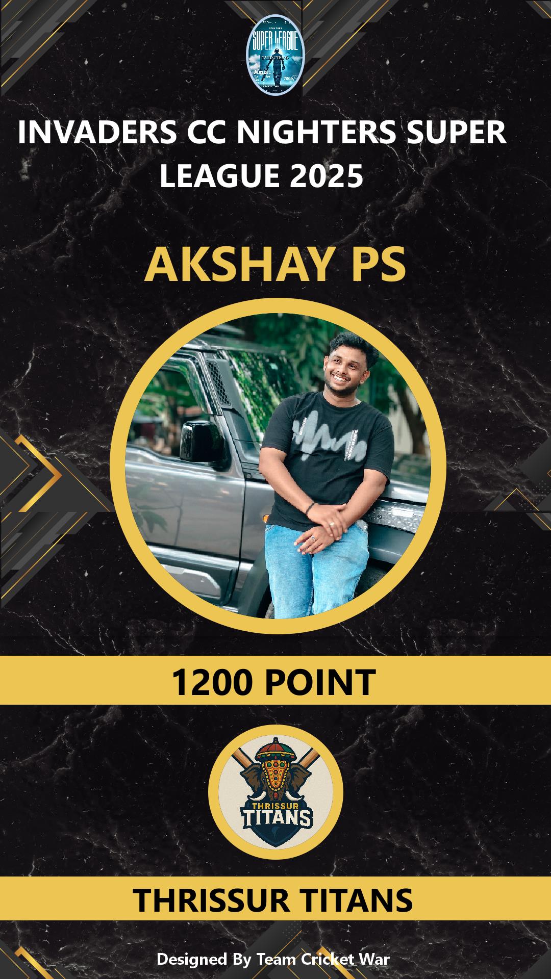 BATTING ALLROUNDER, AGE : 23 THAYYUR VIEW PROFILE |