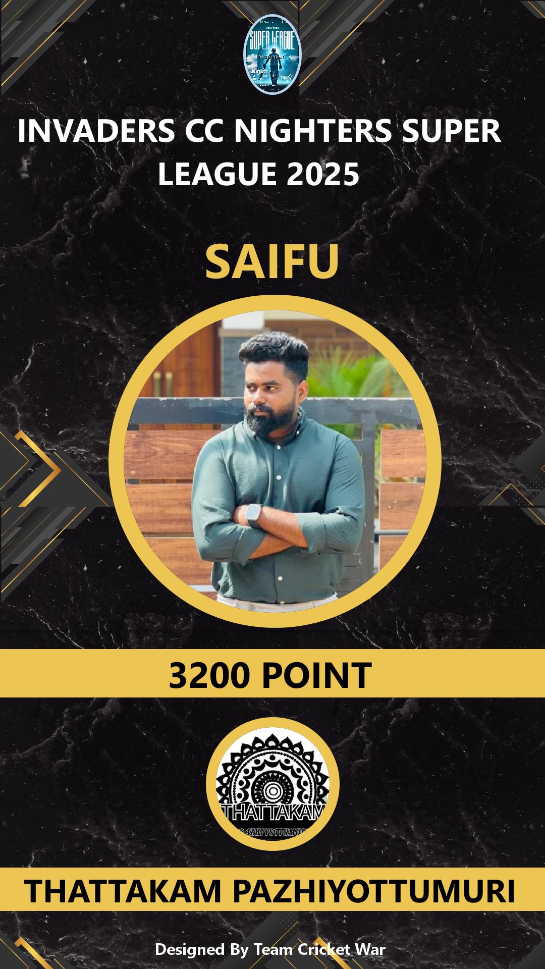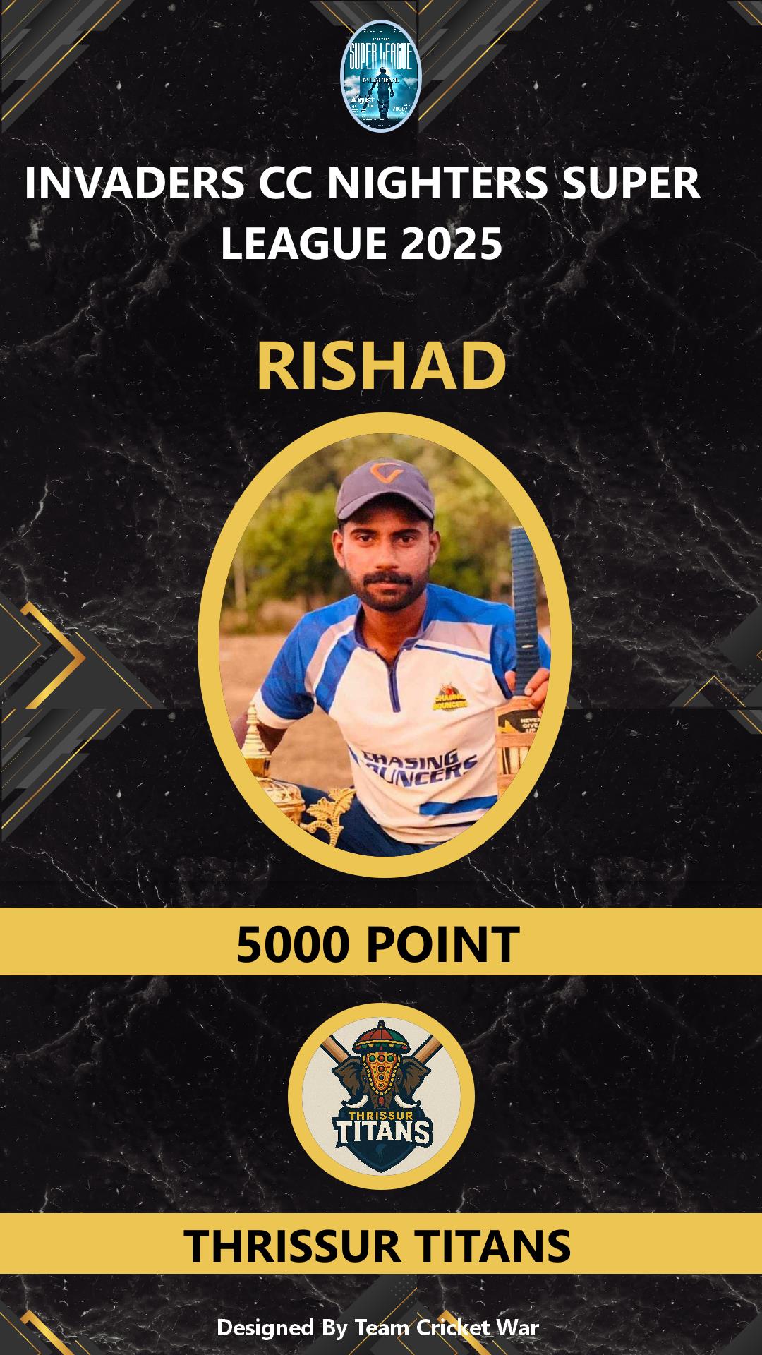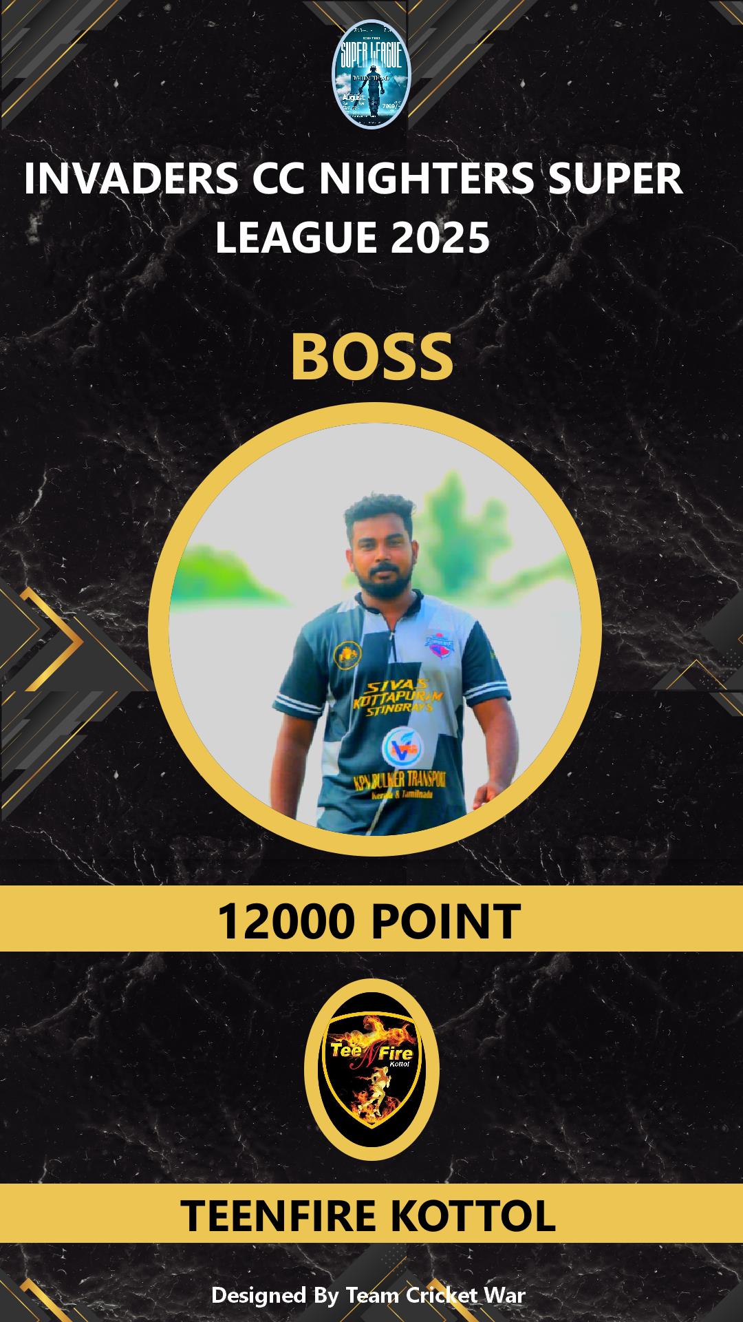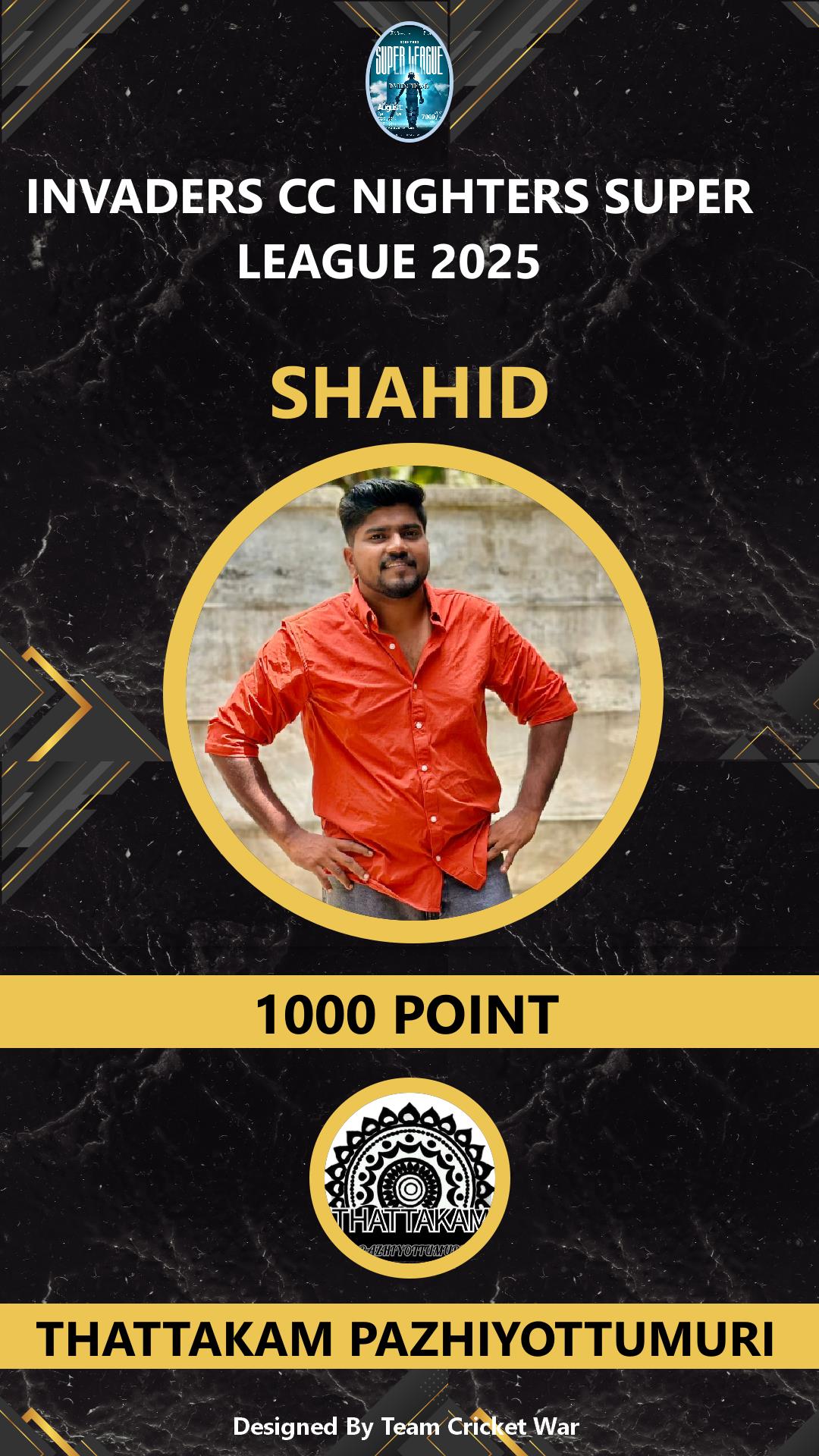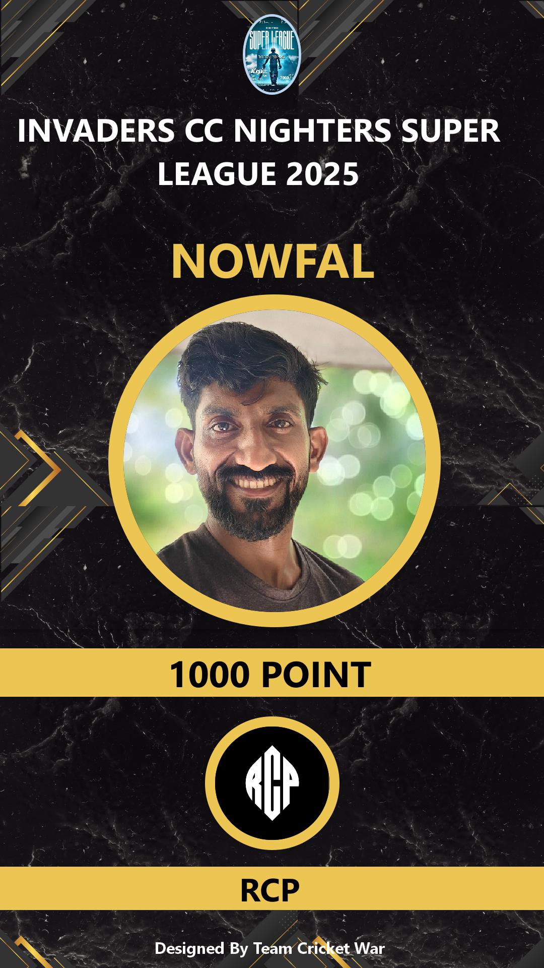 BOWLING ALLROUNDER, AGE : 31 THAYYUR Bid Amount : 1200 Team : FIGHTERS 11 Download ID Card VIEW PROFILE |