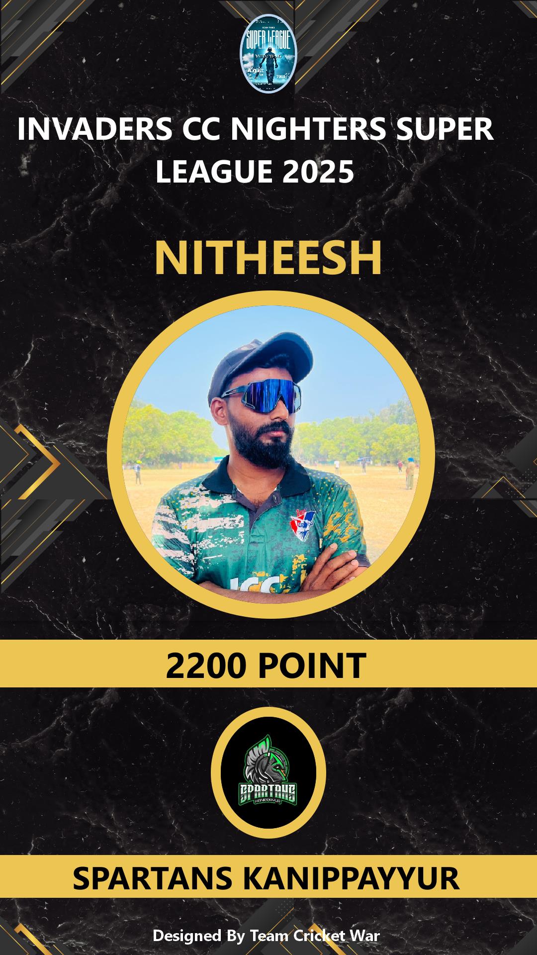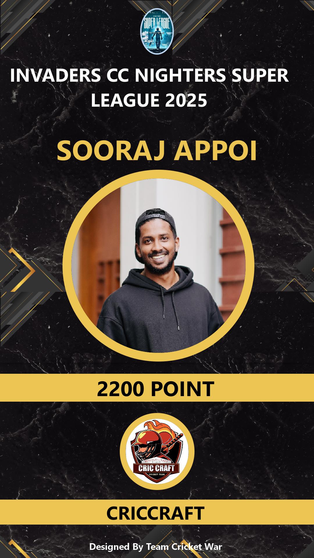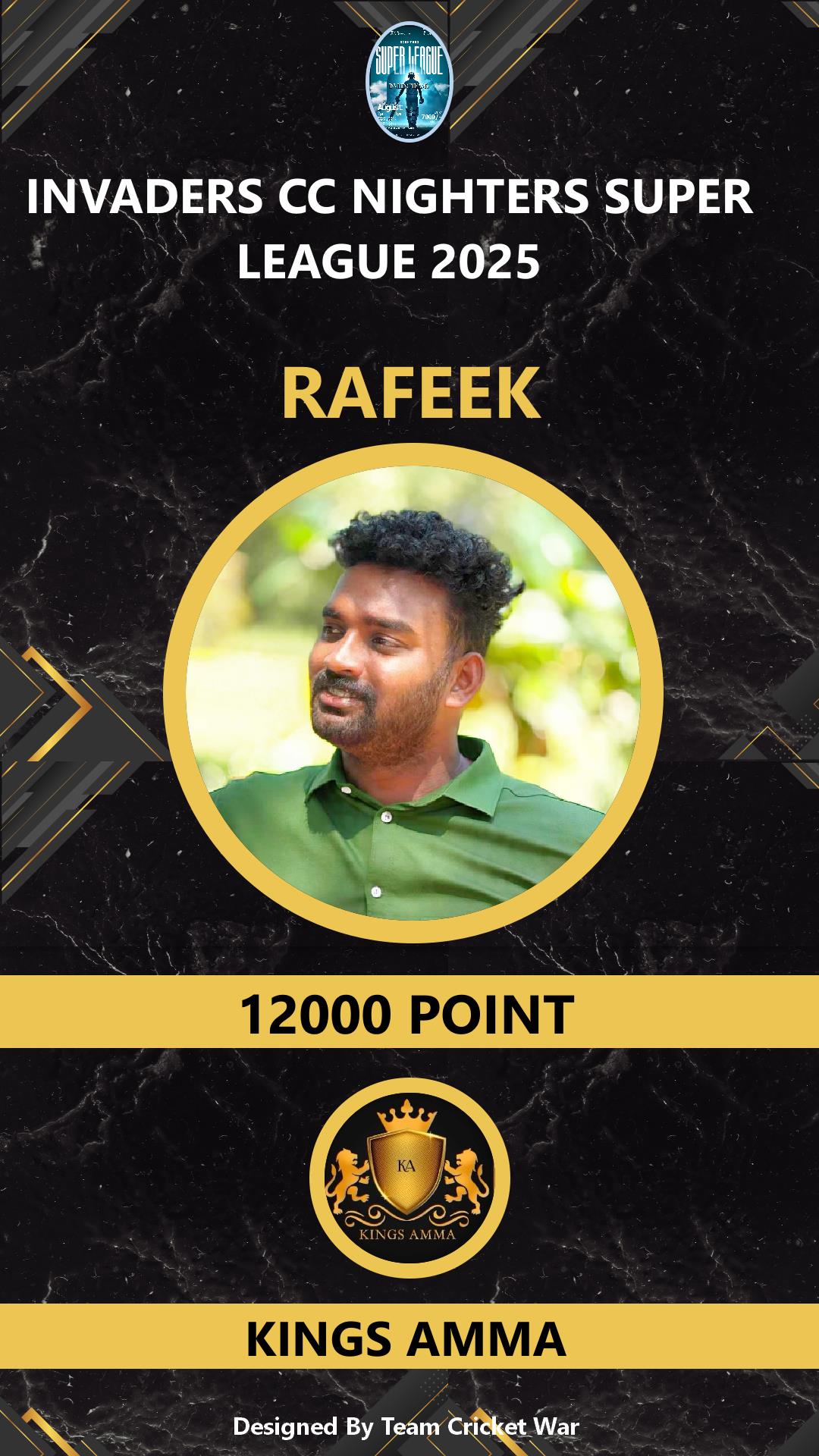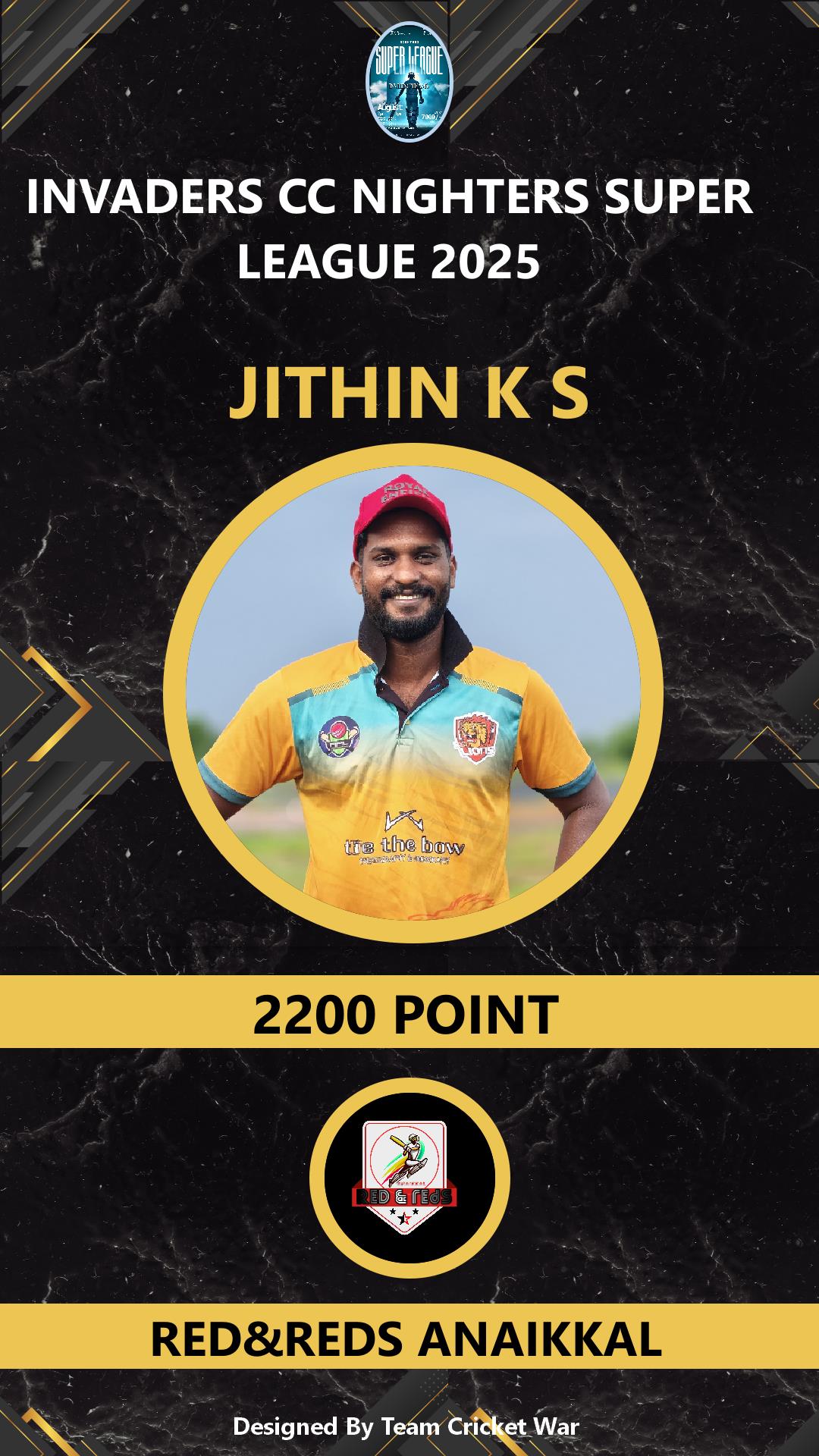 ALLROUNDER, AGE : 29 KECHERY Bid Amount : 1600 Team : CRICCRAFT Download ID Card |