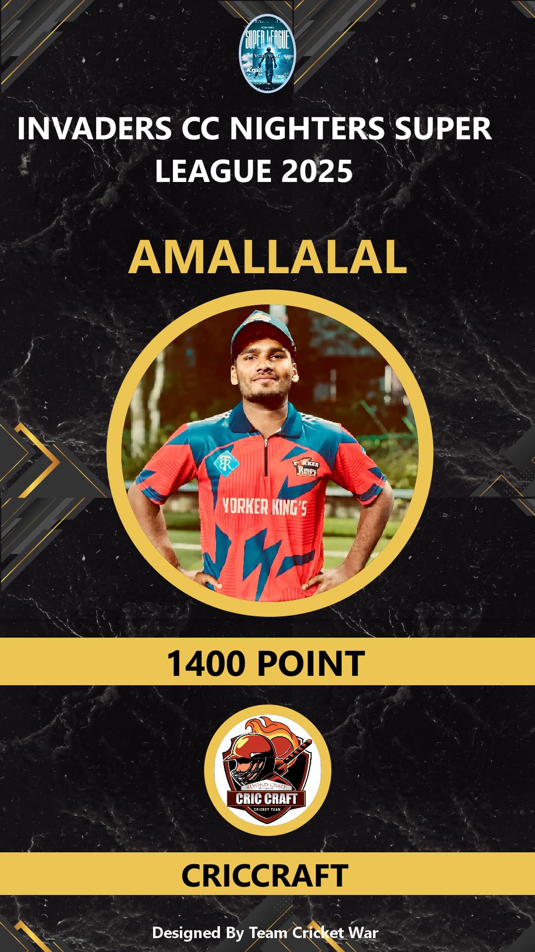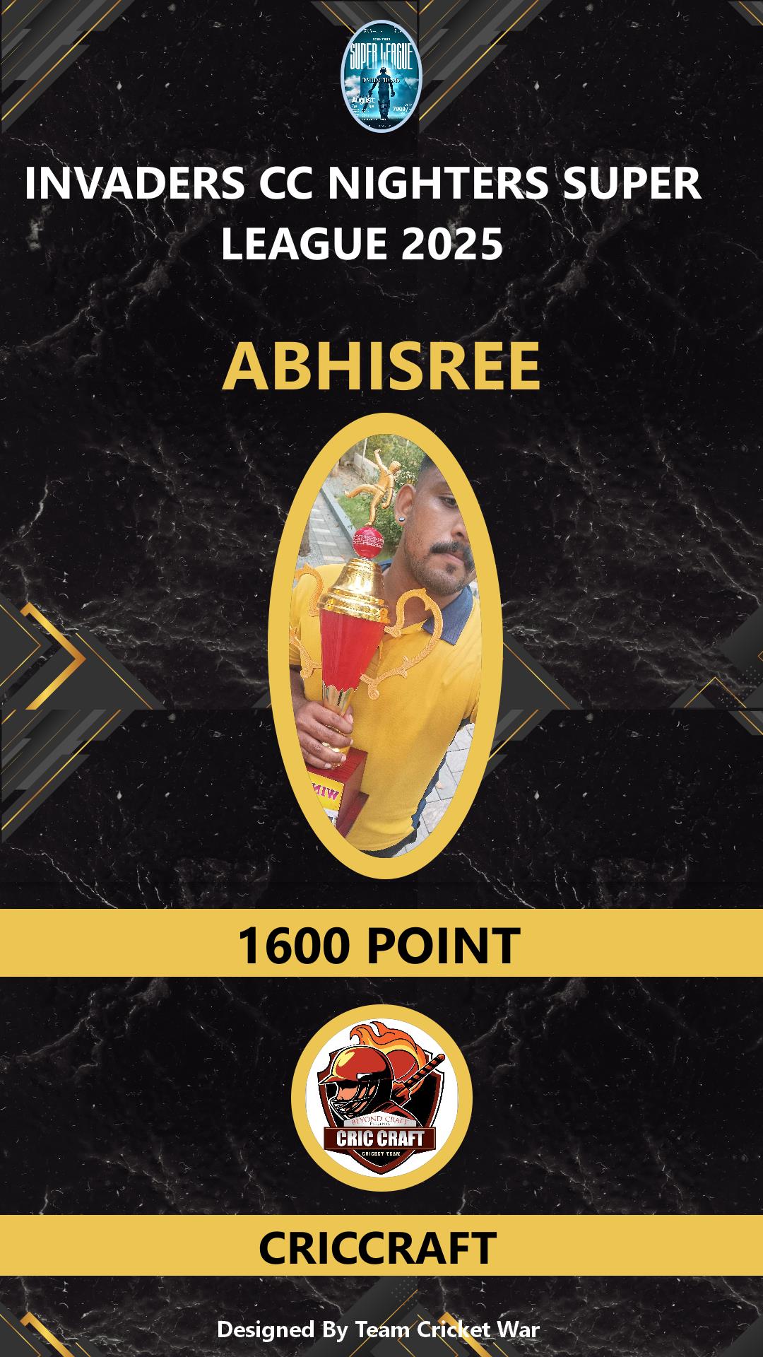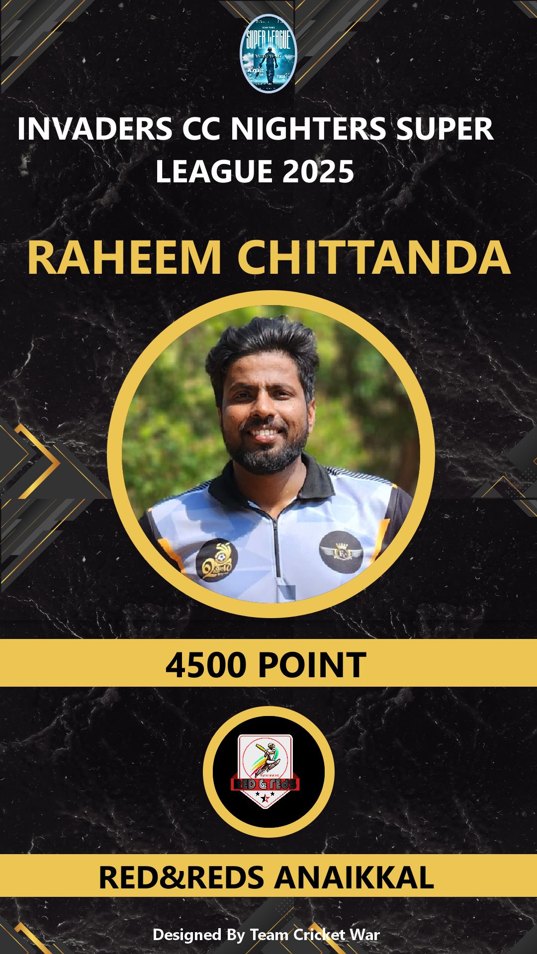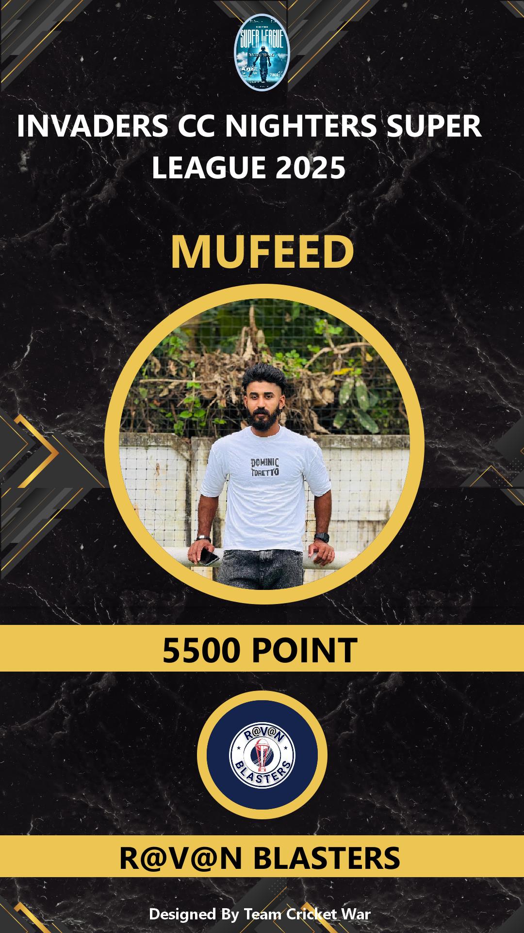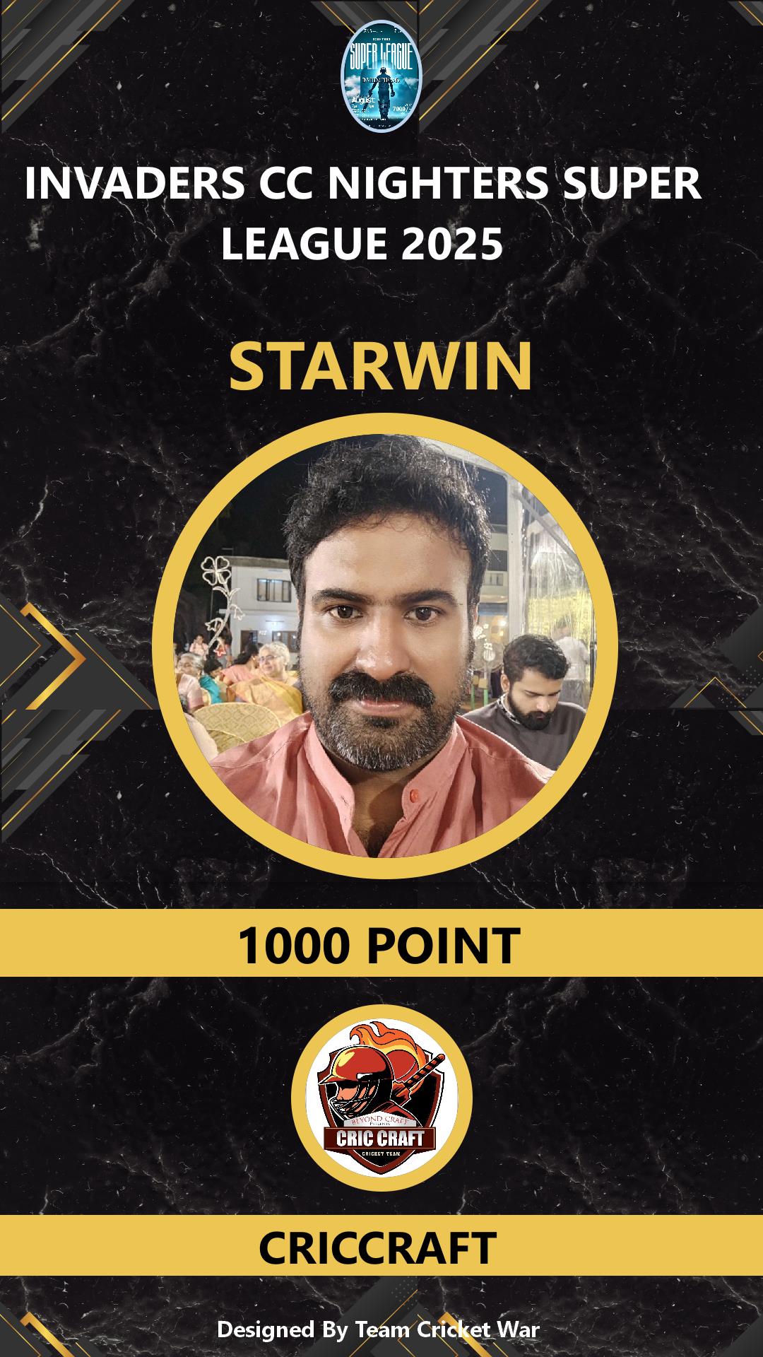 ALLROUNDER, AGE : 29 KECHERY Bid Amount : 1600 Team : CRICCRAFT Download ID Card |