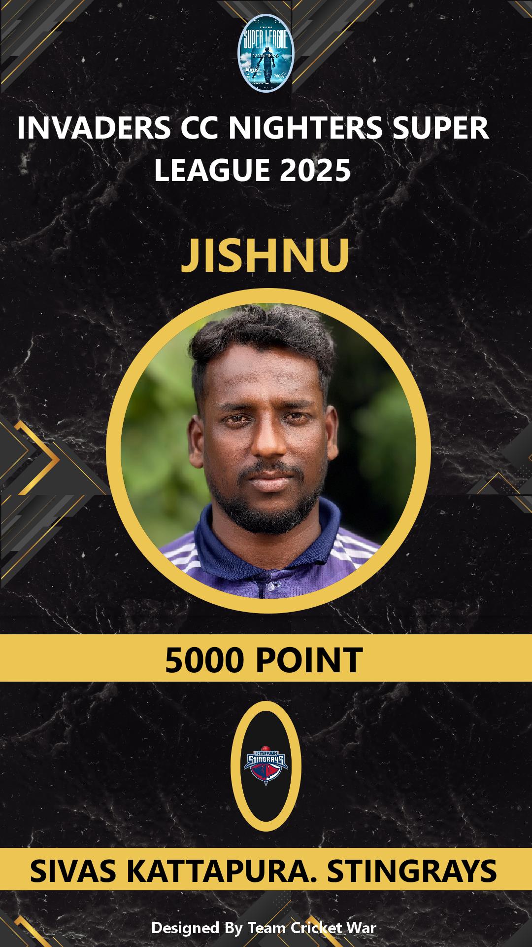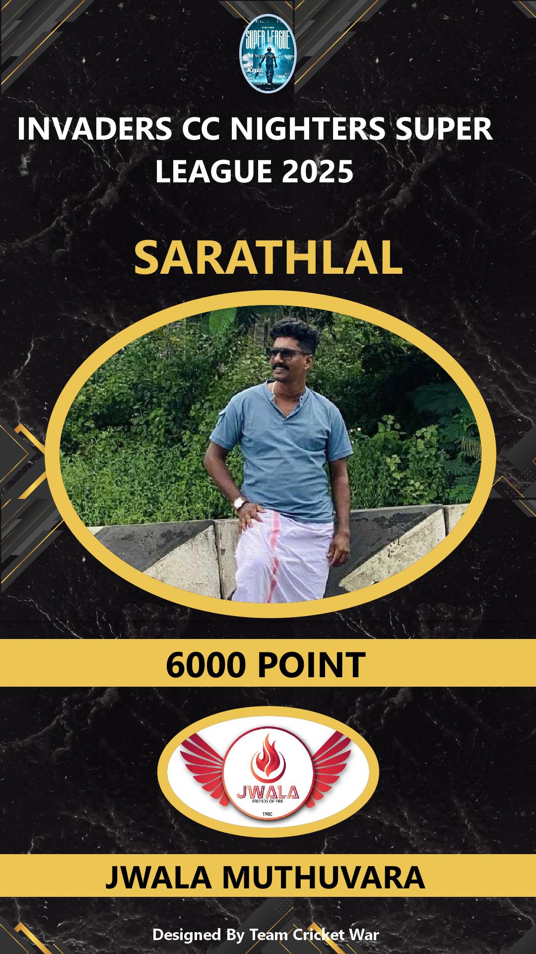 BATTING ALLROUNDER, AGE : 30 ANAKKALLU Bid Amount : 5500 Team : SIVAS KATTAPURA. STINGRAYS Download ID Card VIEW PROFILE |