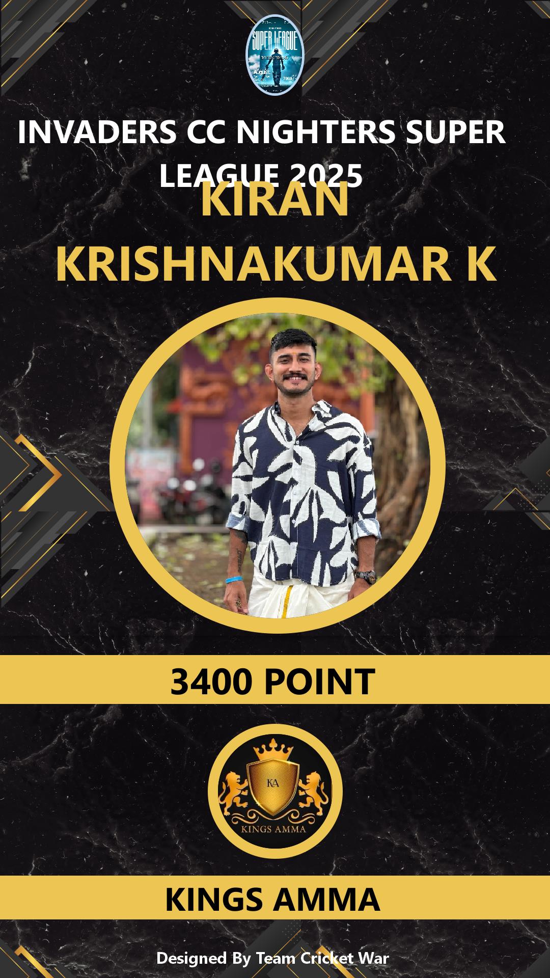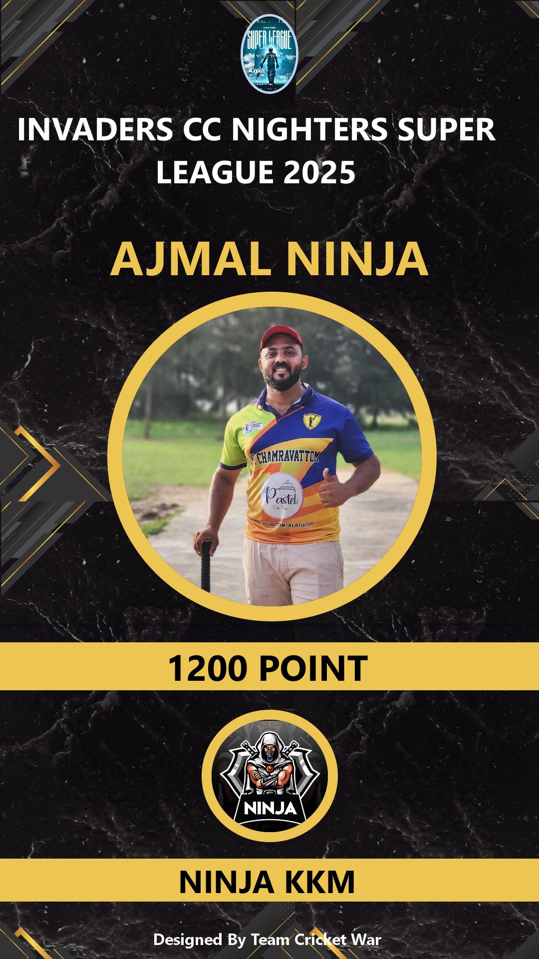 ALLROUNDER, AGE : 30 VADUTHALA Bid Amount : 1200 Team : NINJA KKM Download ID Card VIEW PROFILE |