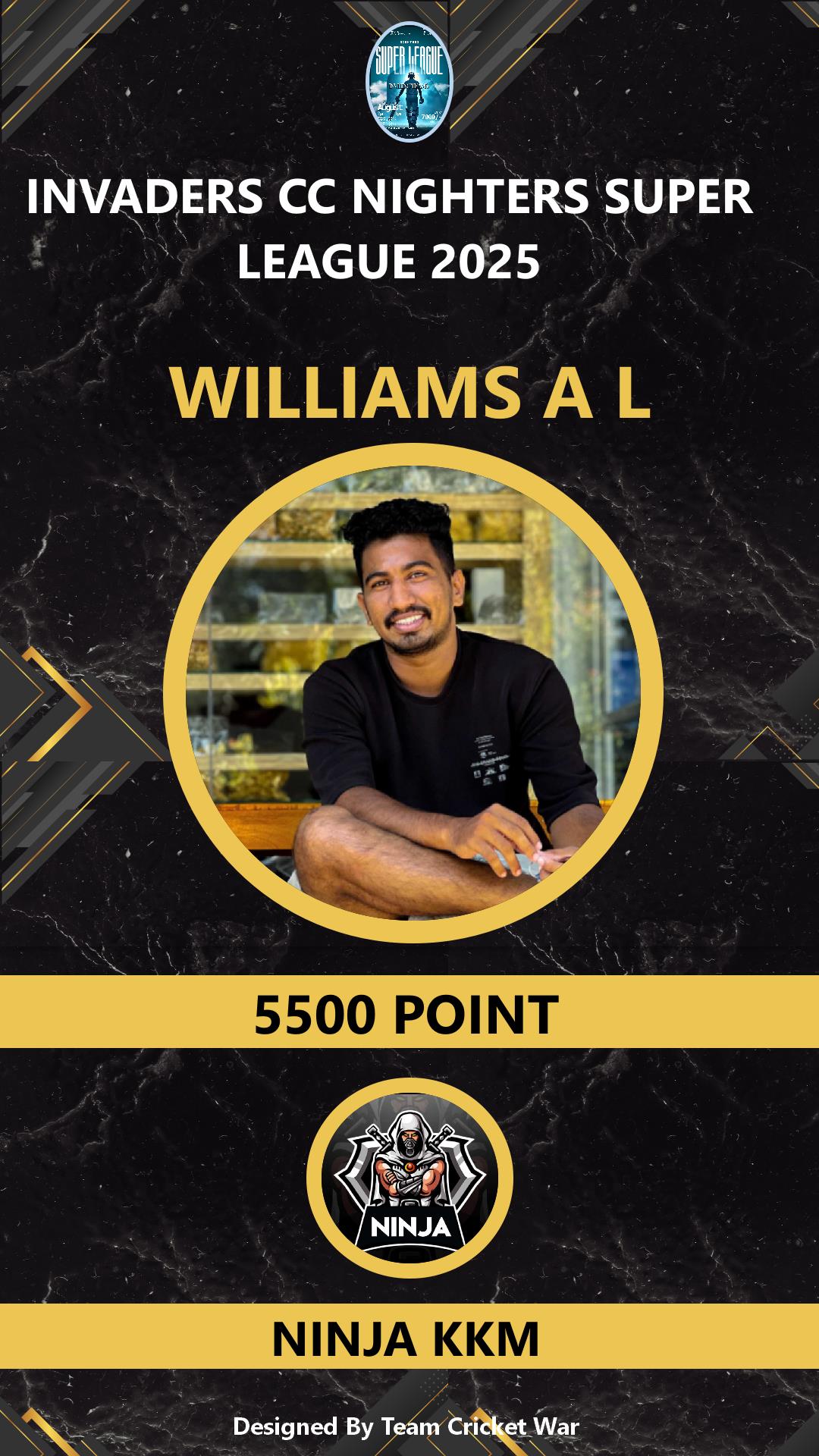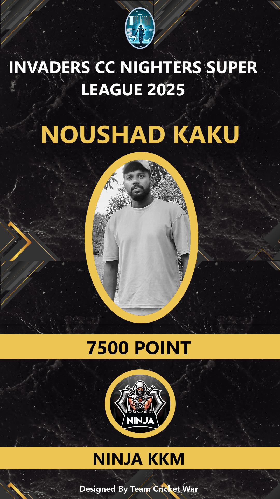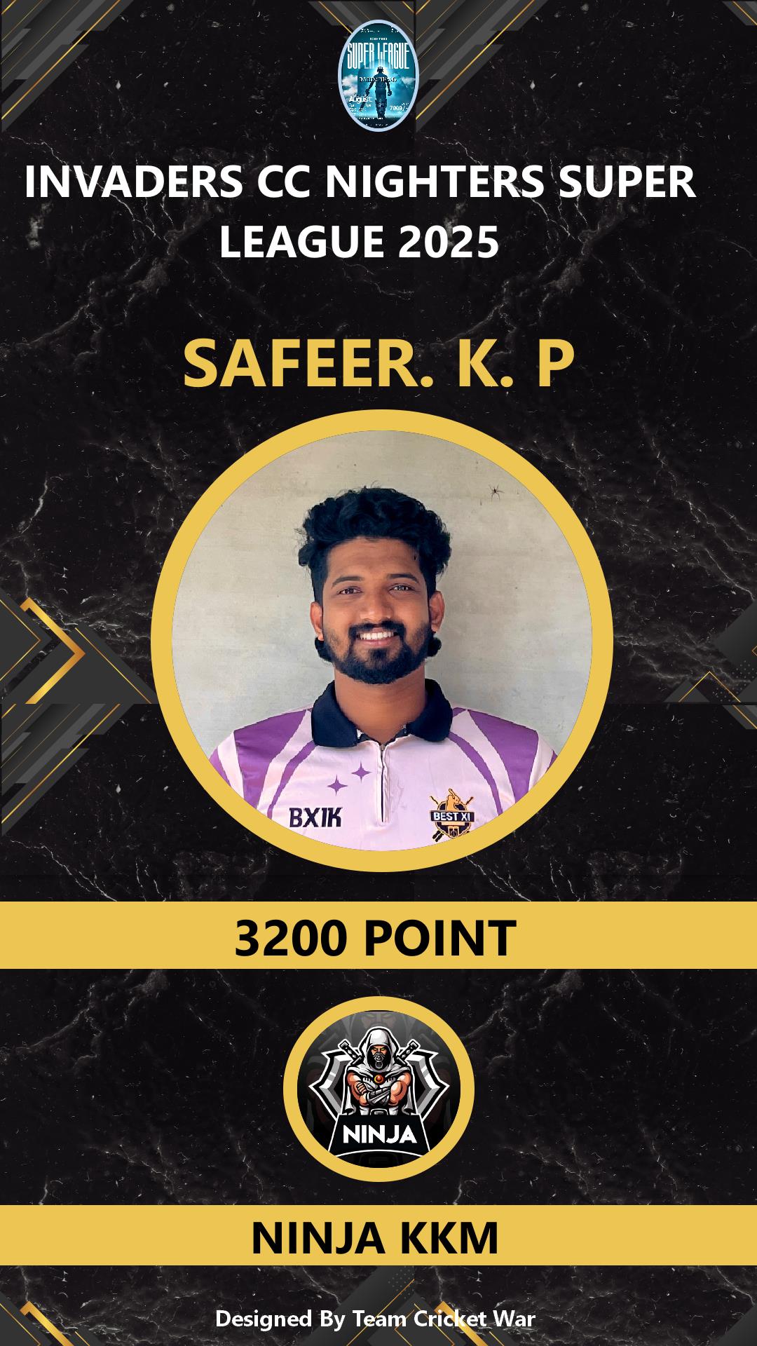 ALLROUNDER, AGE : 34 NELLUVAI Bid Amount : 3200 Team : NINJA KKM Download ID Card VIEW PROFILE |