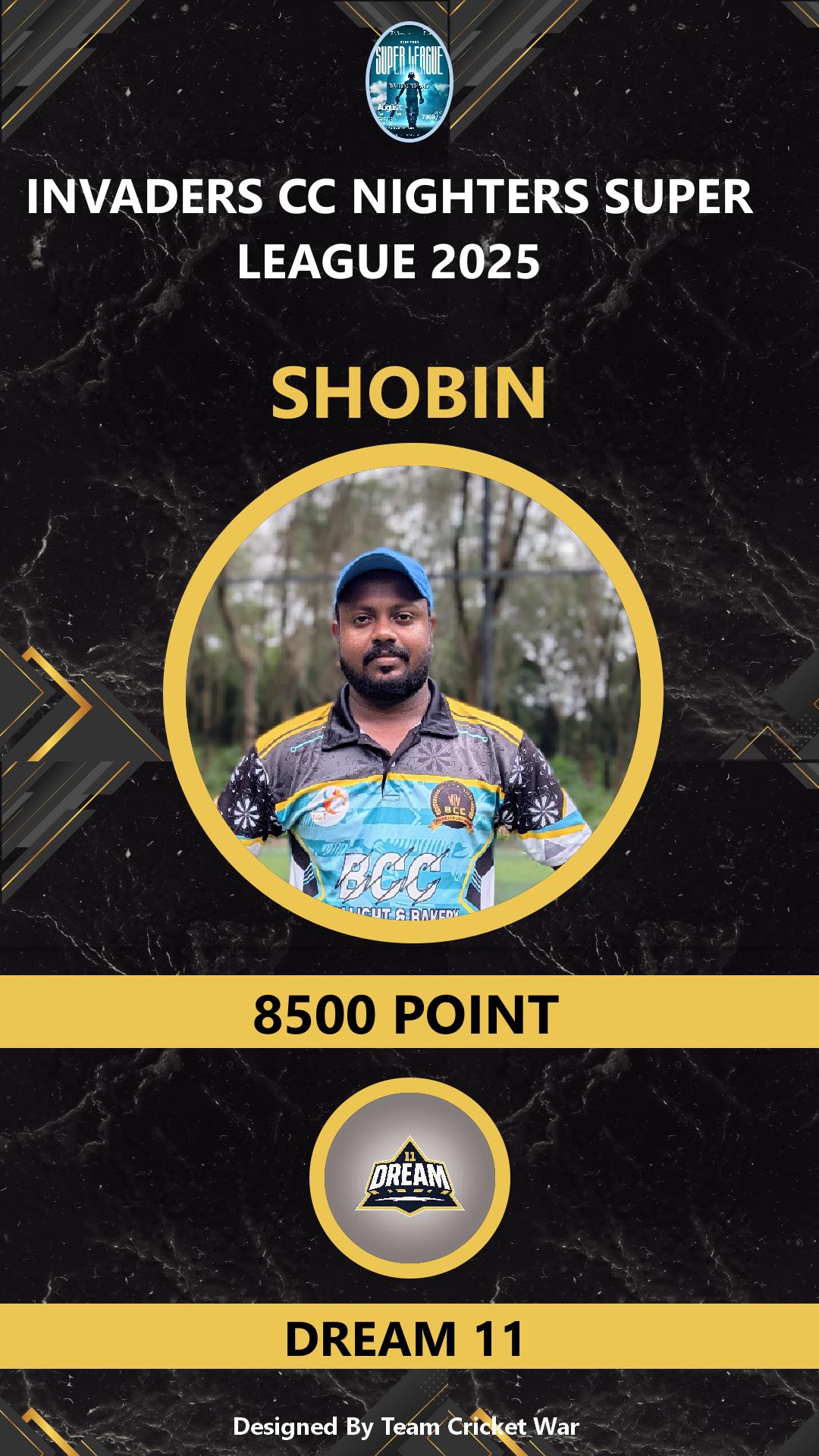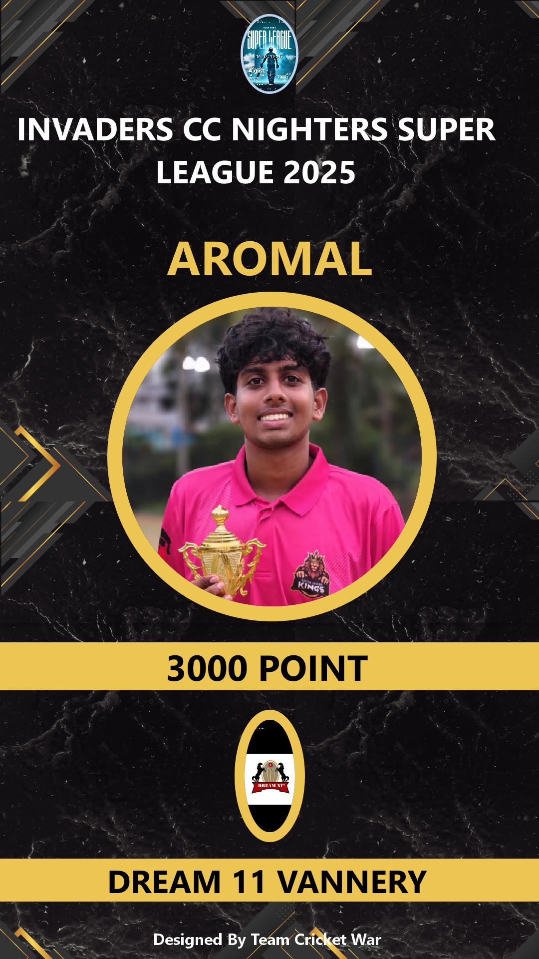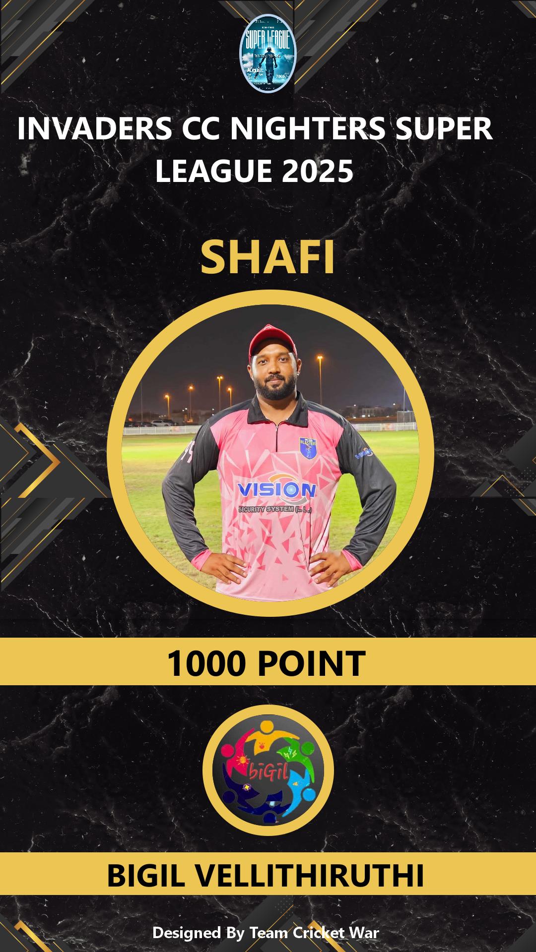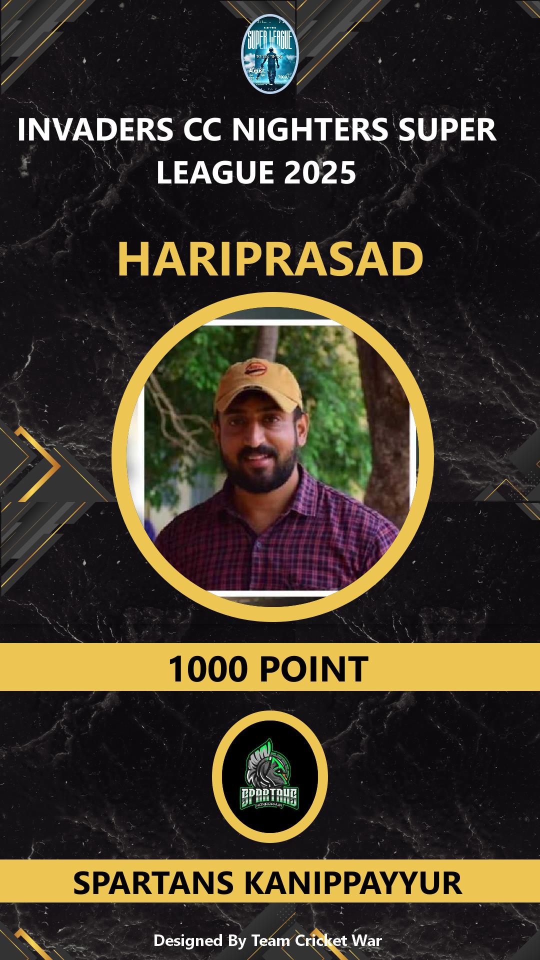 BOWLING ALLROUNDER, AGE : 20 VAZHANI Bid Amount : 1000 Team : DREAM 11 Download ID Card VIEW PROFILE |