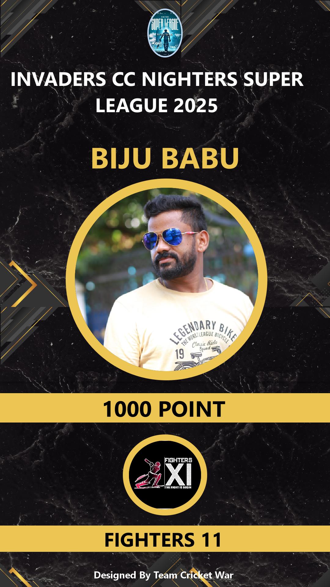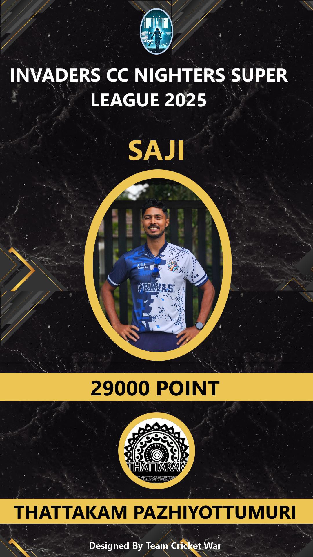 BATTING ALLROUNDER, AGE : 42 PUTHUSSERY Bid Amount : 1000 Team : THATTAKAM PAZHIYOTTUMURI Download ID Card VIEW PROFILE |