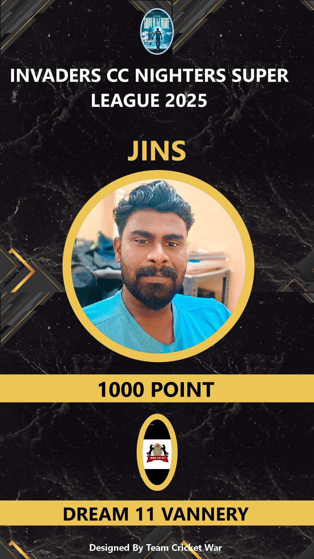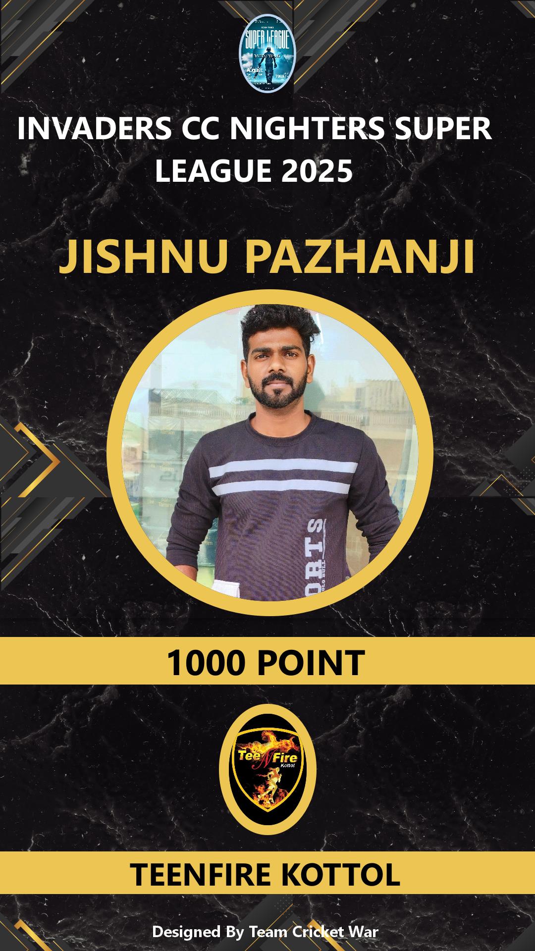 BATSMAN, AGE : 24 PAZHANJI Bid Amount : 1000 Team : DREAM 11 Download ID Card VIEW PROFILE |