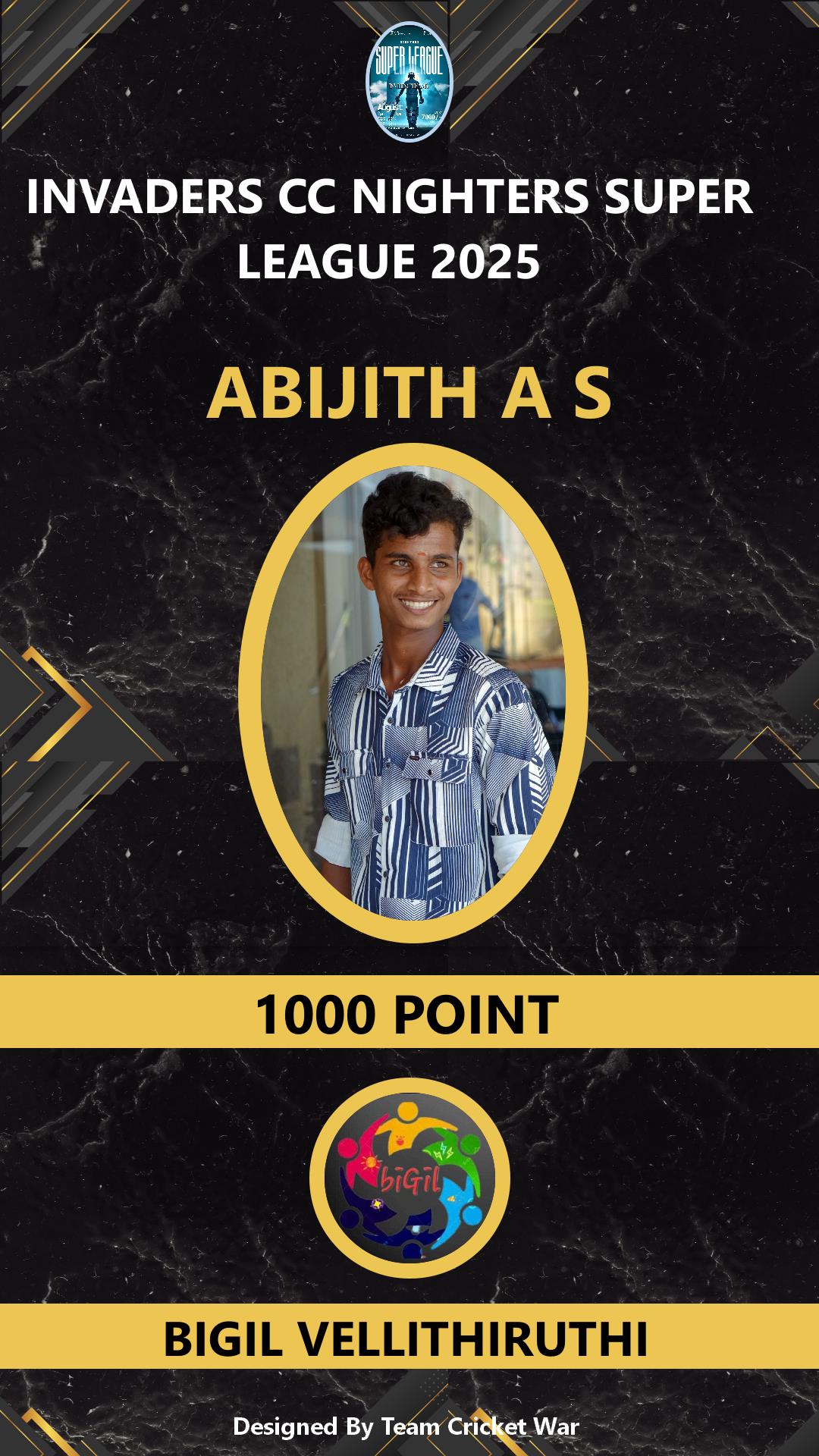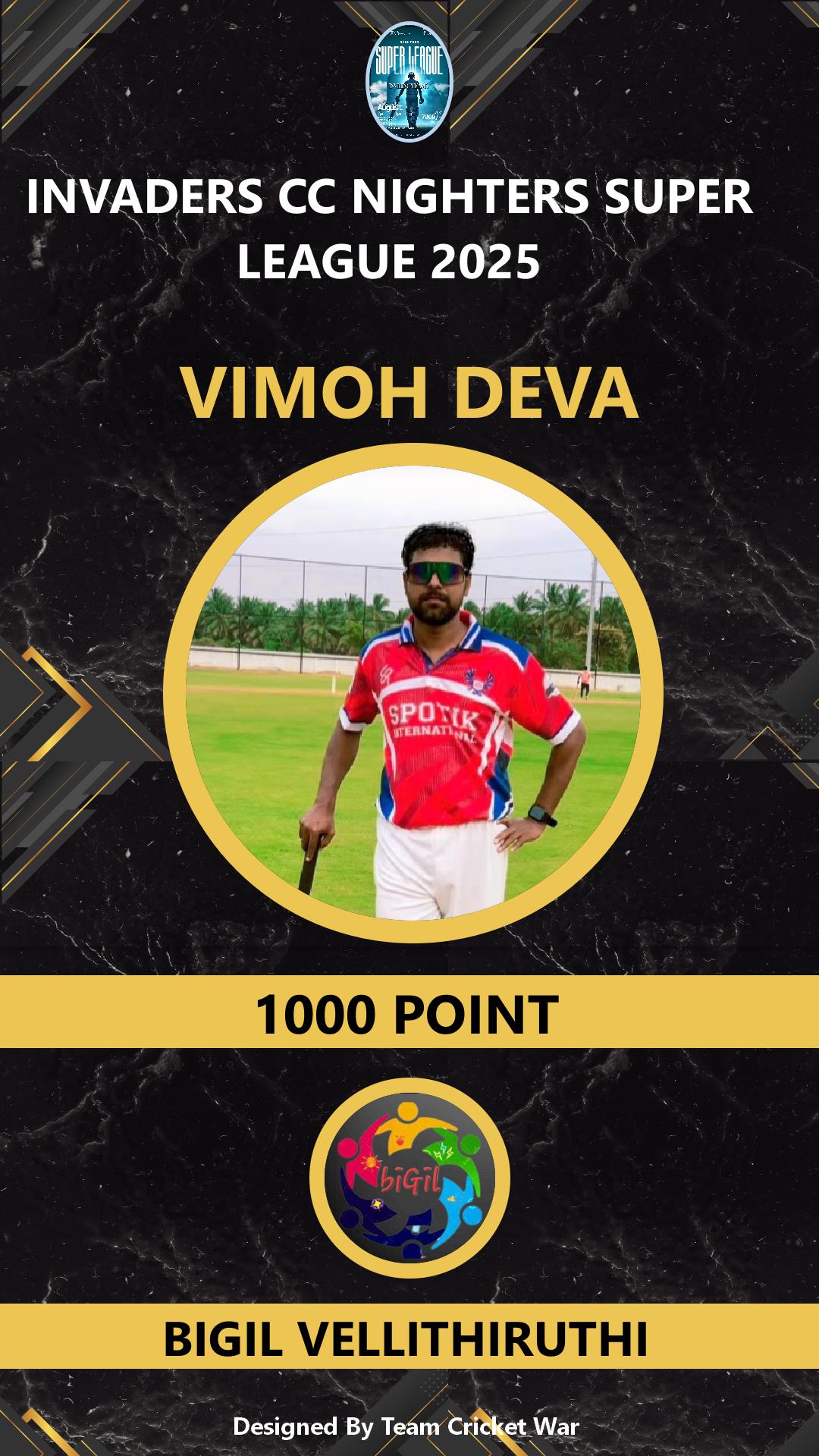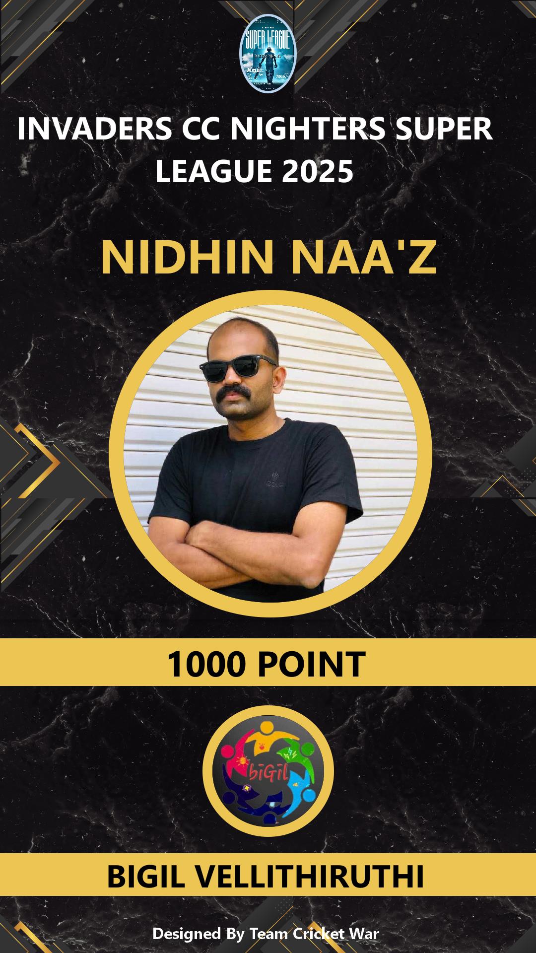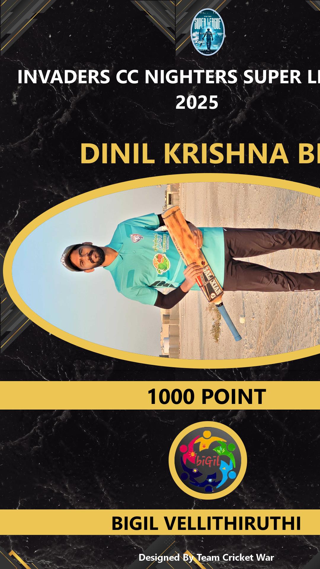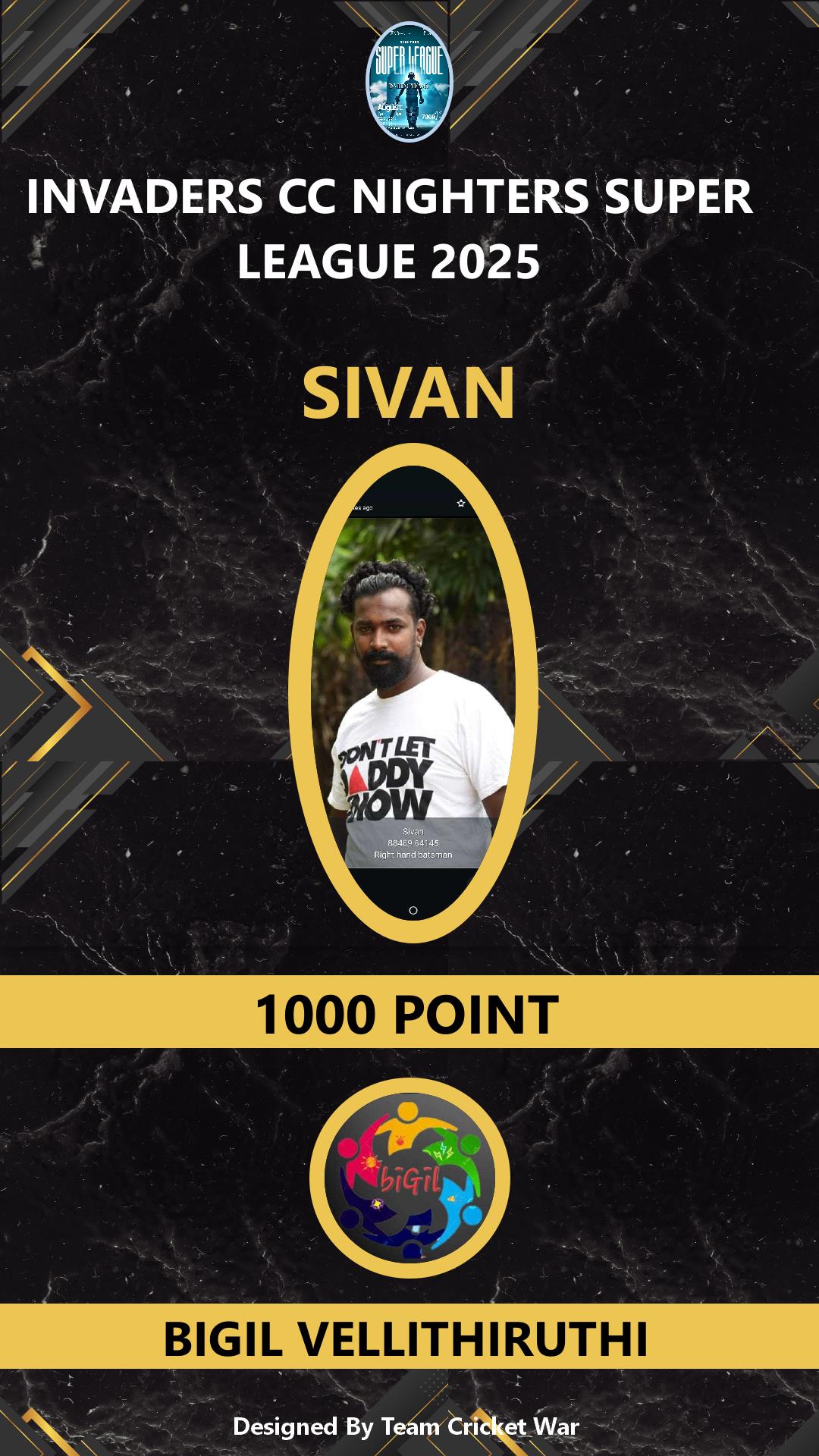 BOWLING ALLROUNDER, AGE : 27 ANAIKKAL Bid Amount : 1000 Team : BIGIL VELLITHIRUTHI Download ID Card VIEW PROFILE |
