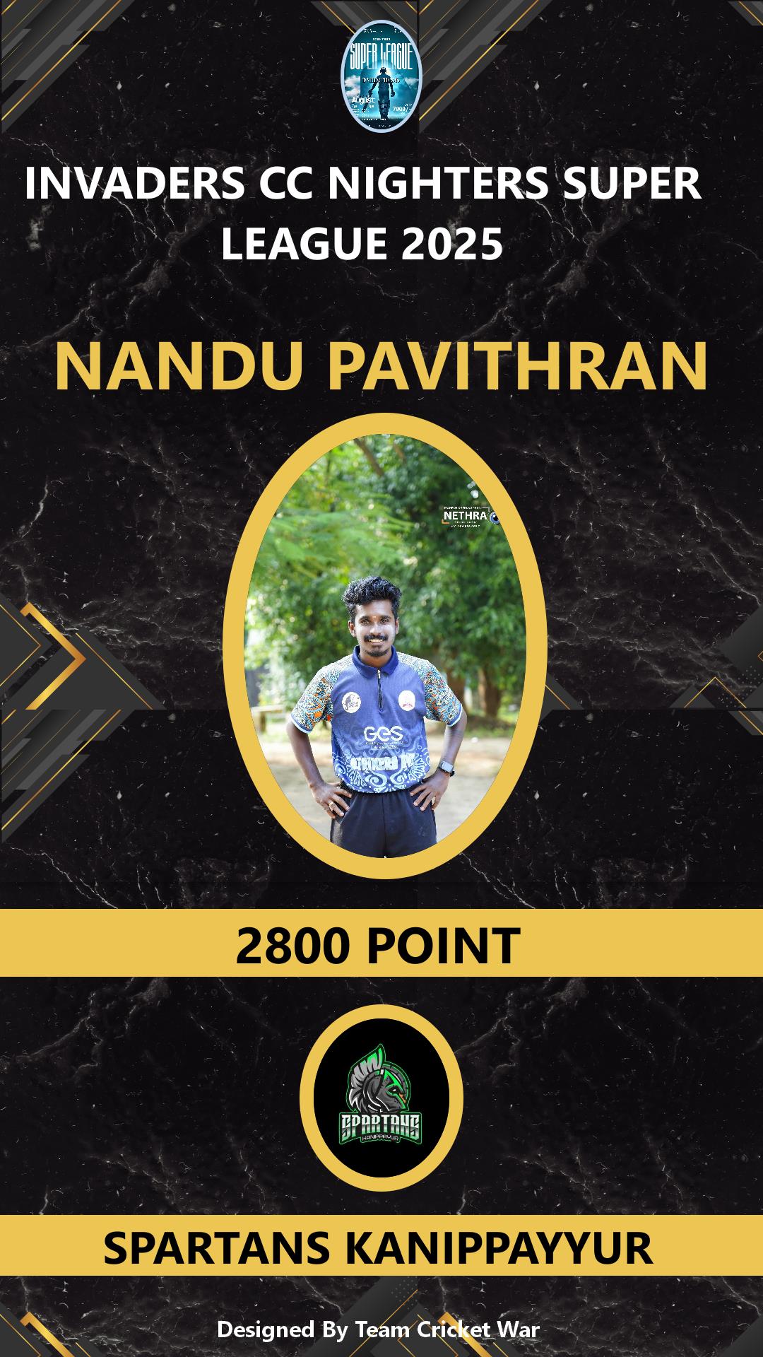 BOWLER, AGE : 34 MANGAD Bid Amount : 1000 Team : SPARTANS KANIPPAYYUR Download ID Card VIEW PROFILE |