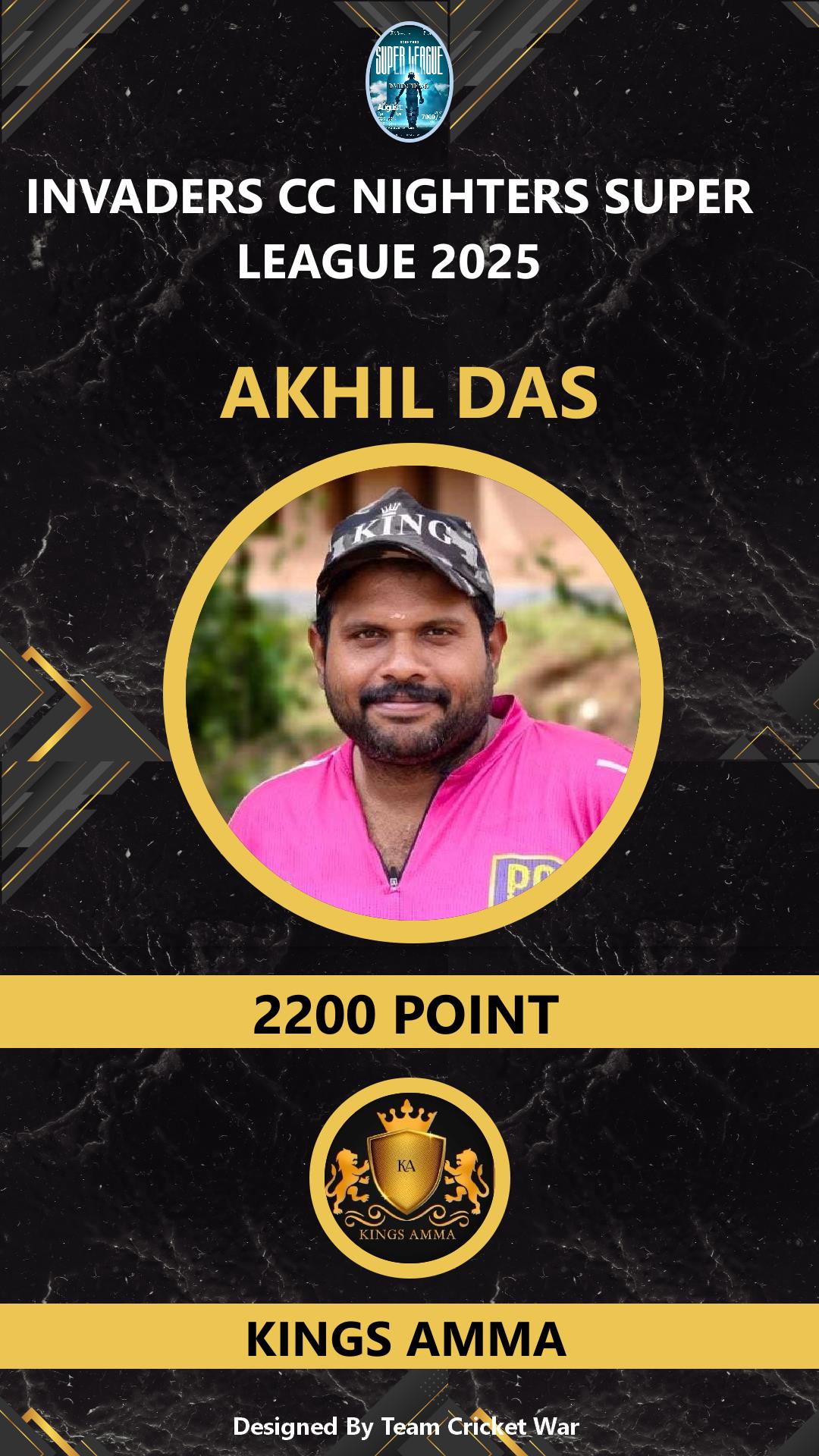 BATTING ALLROUNDER, AGE : 36 ATHANI Bid Amount : 2200 Team : KINGS AMMA Download ID Card VIEW PROFILE |