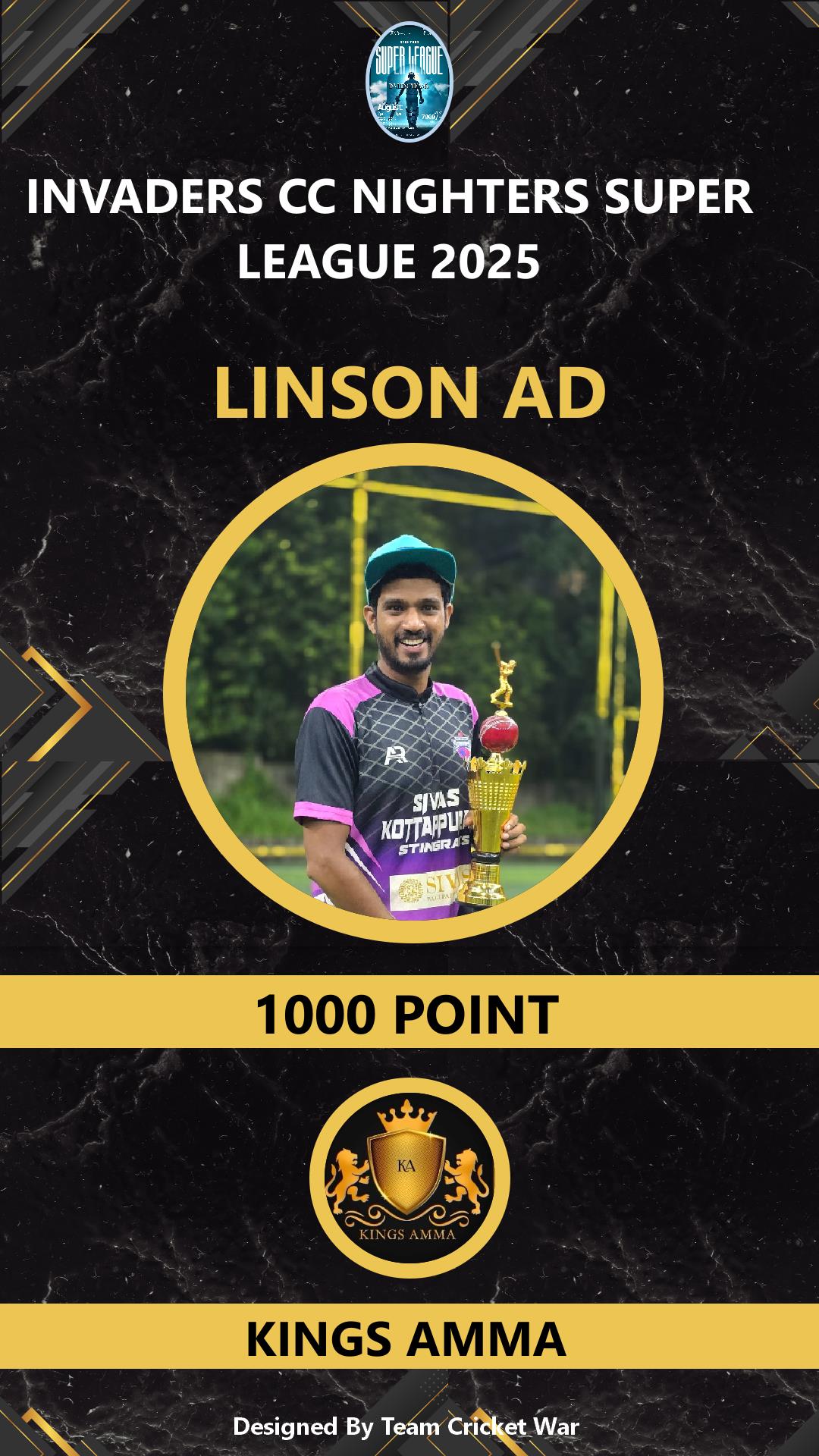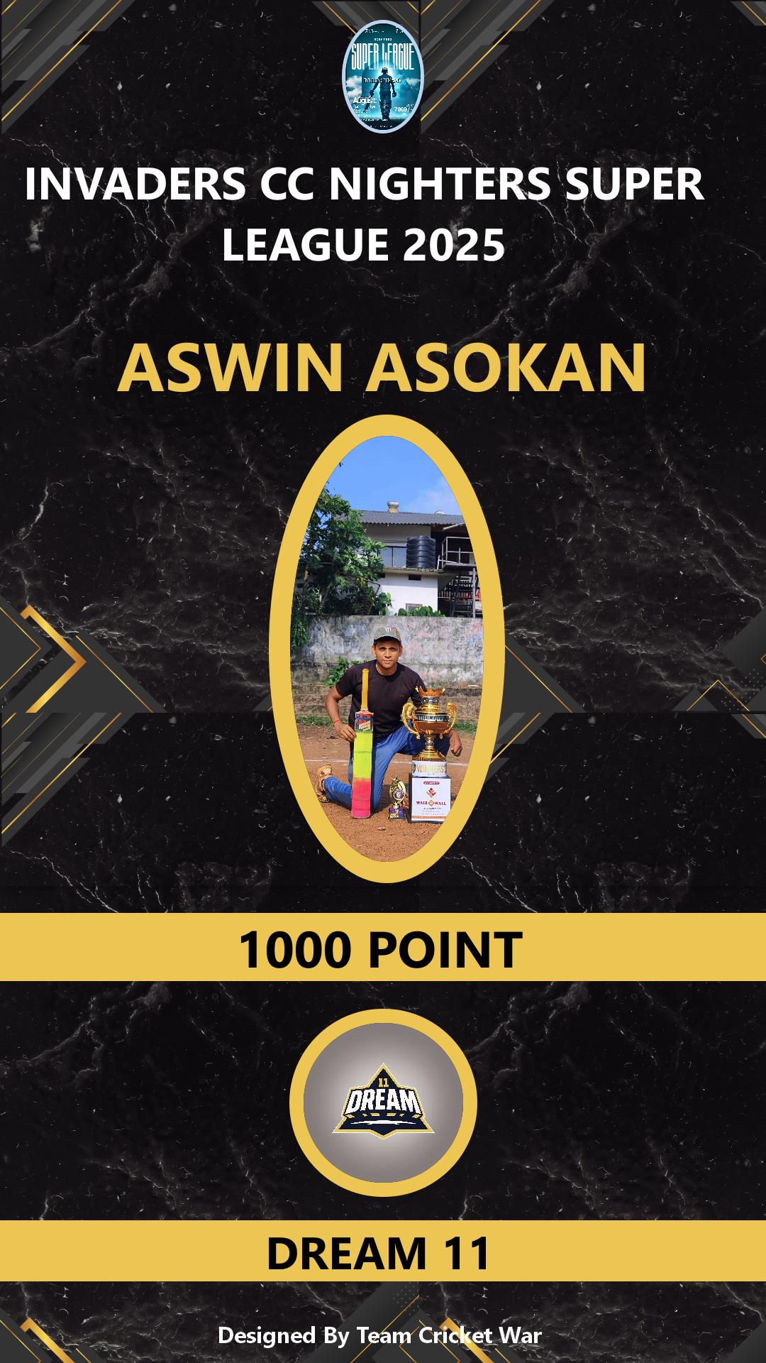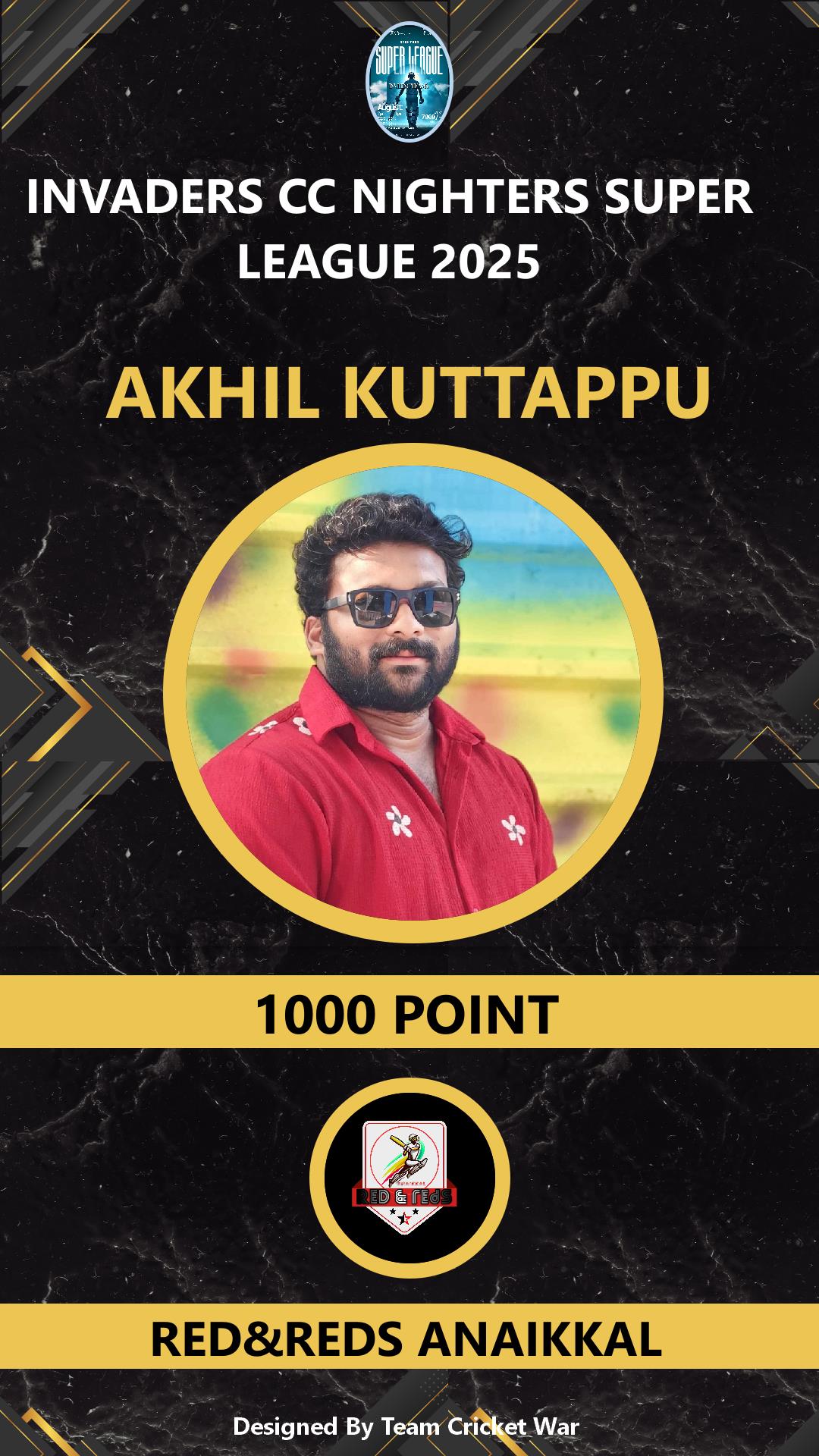 ALLROUNDER, AGE : 34 KUNNAMKULAM Bid Amount : 1000 Team : DREAM 11 Download ID Card |