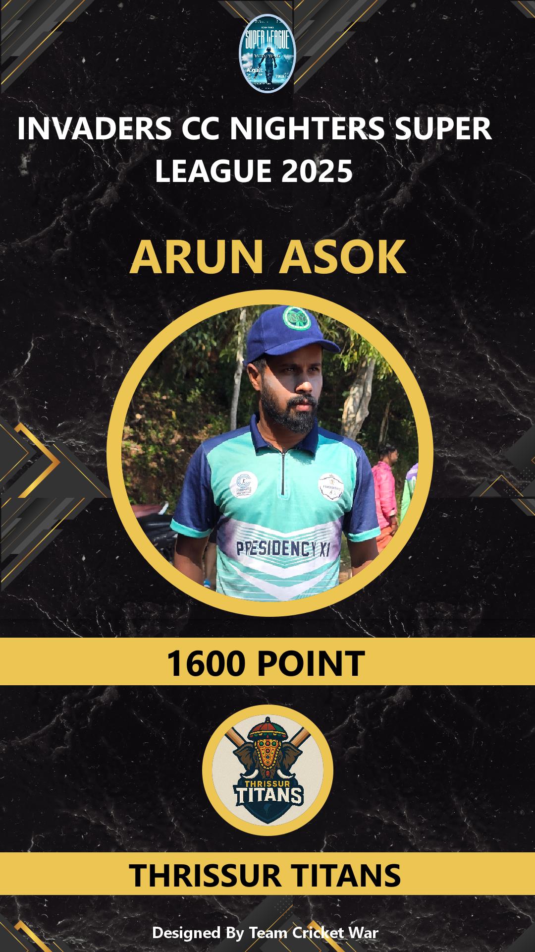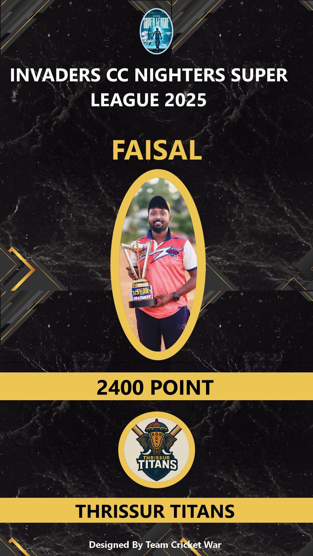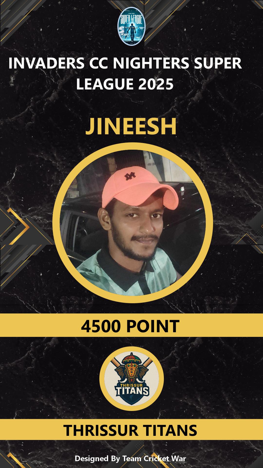 ALLROUNDER, AGE : 34 THRISSUR Bid Amount : 1600 Team : THRISSUR TITANS Download ID Card VIEW PROFILE |