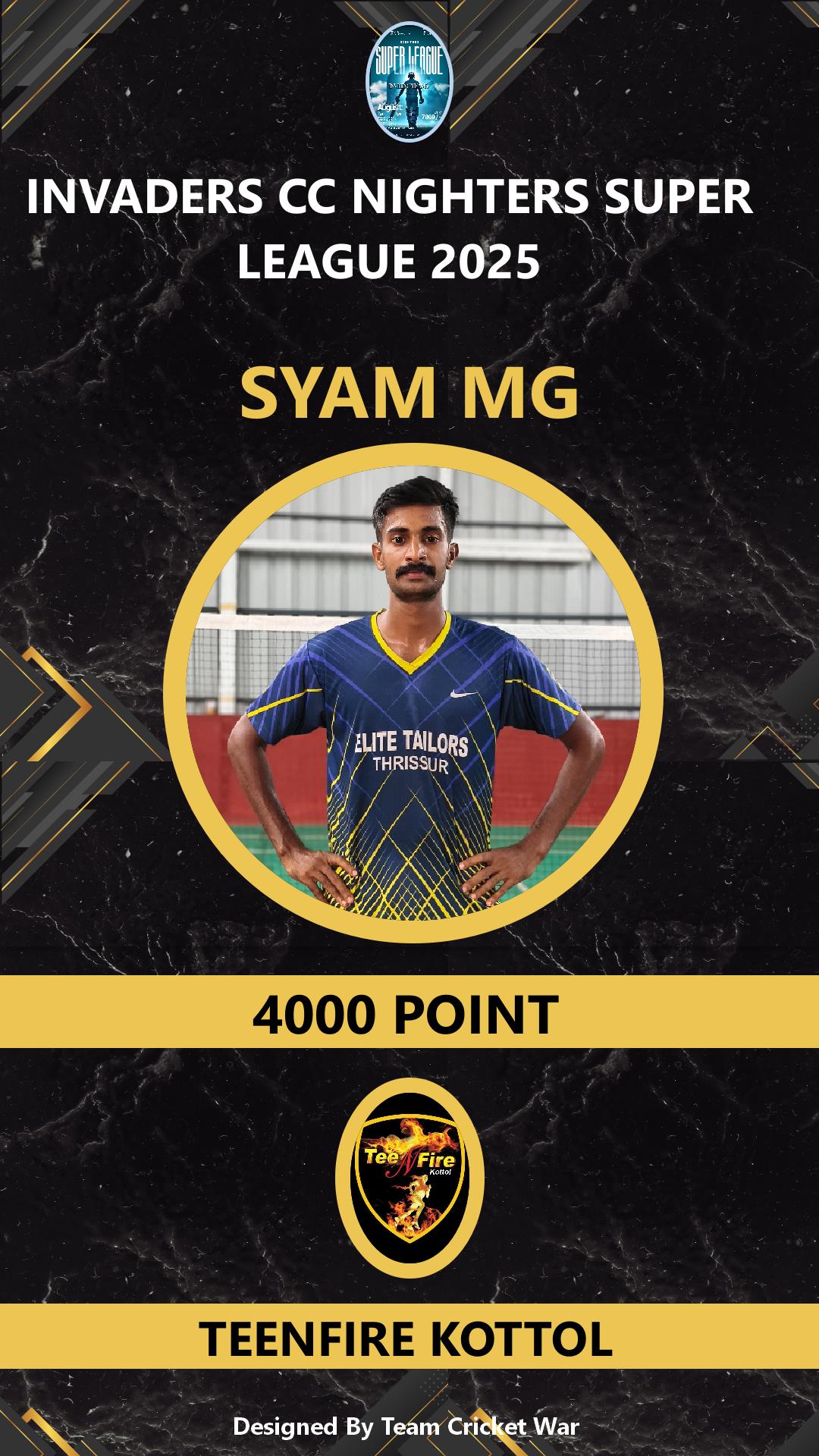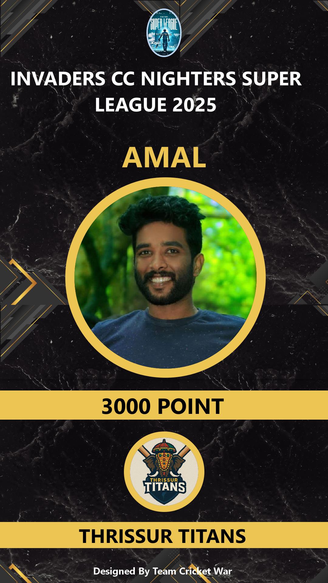 ALLROUNDER, AGE : 31 KUNNAMKULAM Bid Amount : 4000 Team : TEENFIRE KOTTOL Download ID Card VIEW PROFILE |