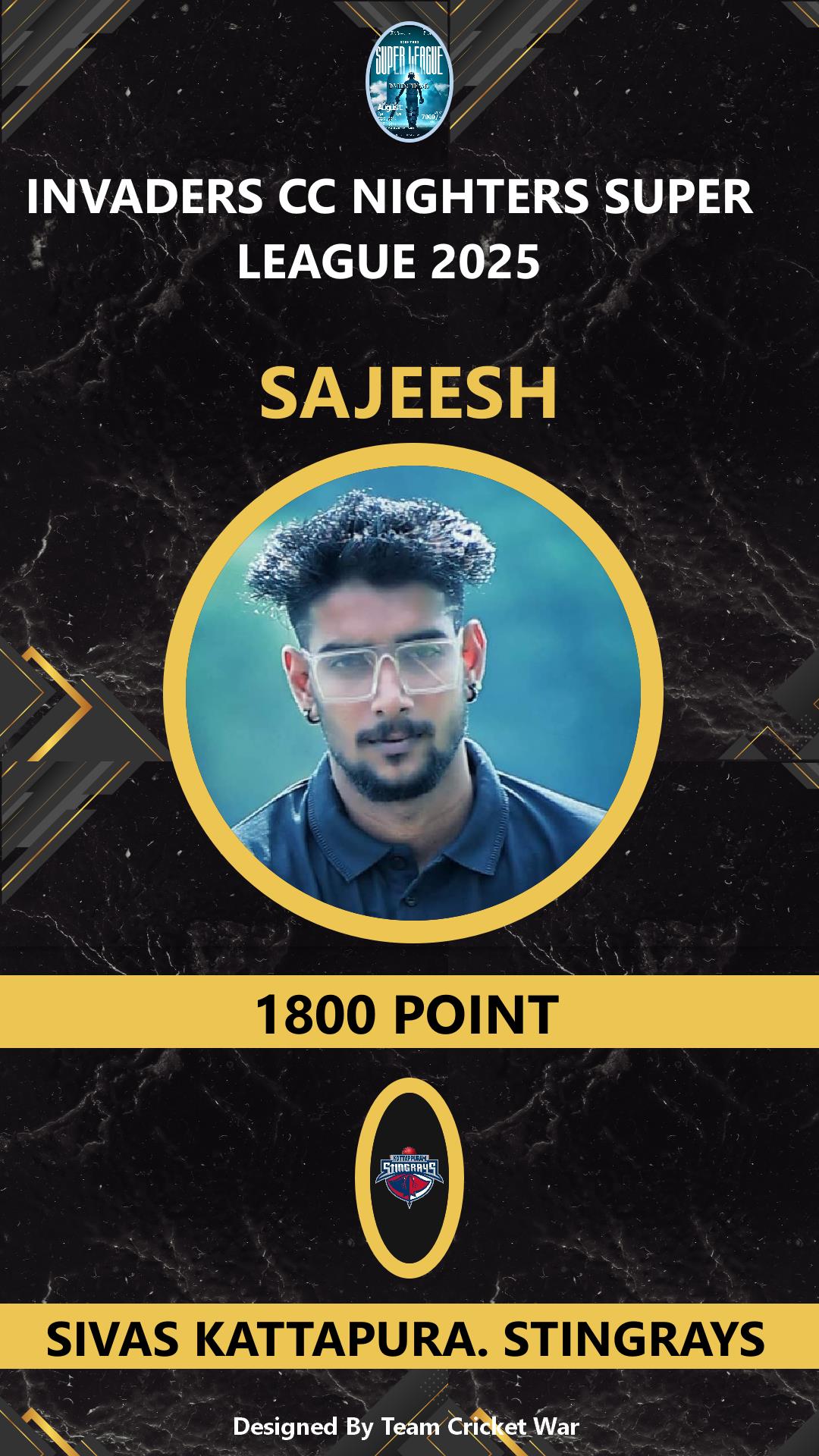 ALLROUNDER, AGE : 26 KANJIRAKODE Bid Amount : 3000 Team : SIVAS KATTAPURA. STINGRAYS Download ID Card VIEW PROFILE |