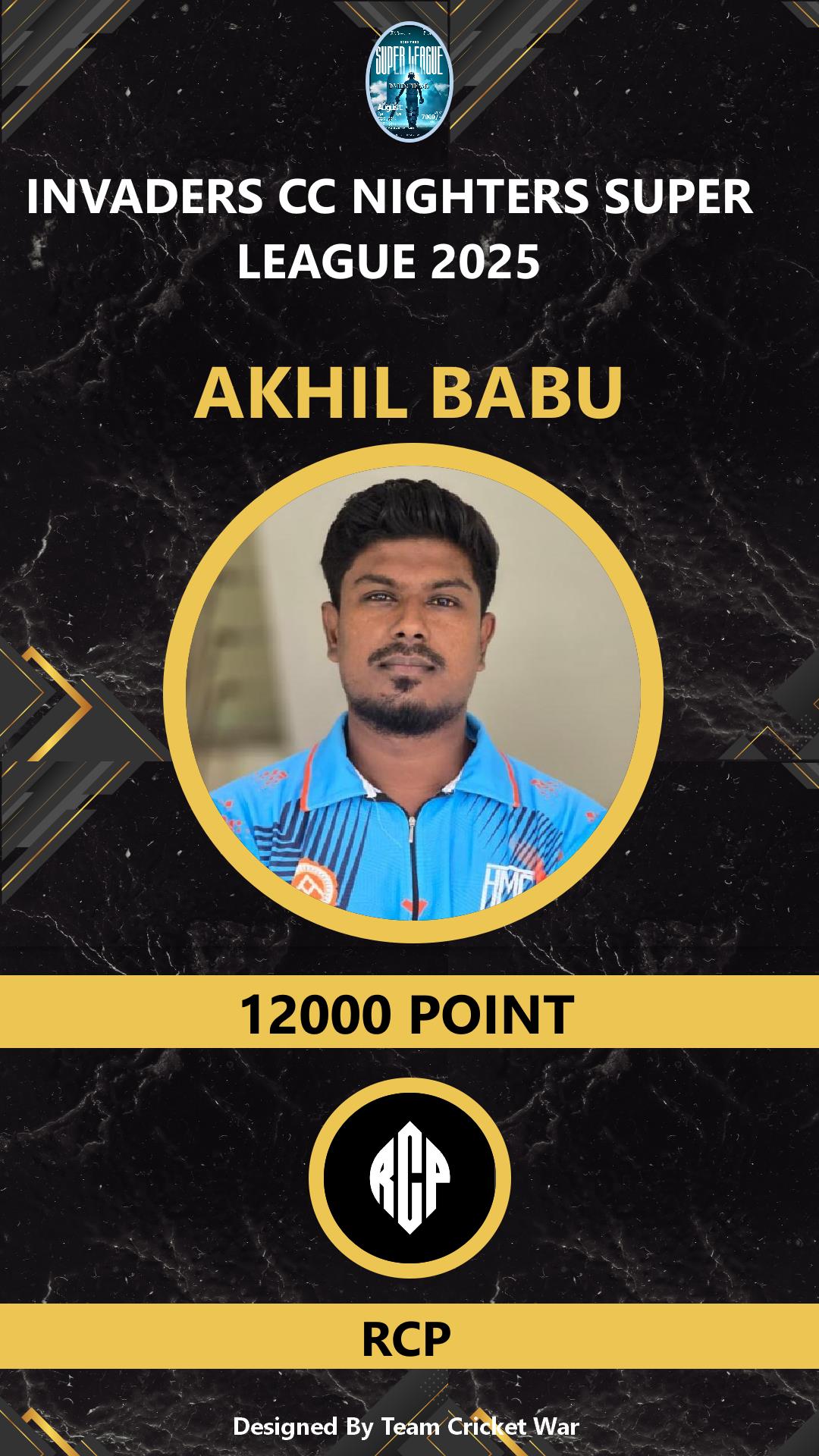 BATTING ALLROUNDER, AGE : 31 GURUVAYUR Bid Amount : 12000 Team : RCP Download ID Card VIEW PROFILE |