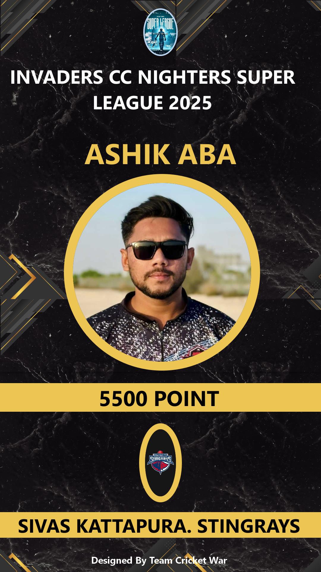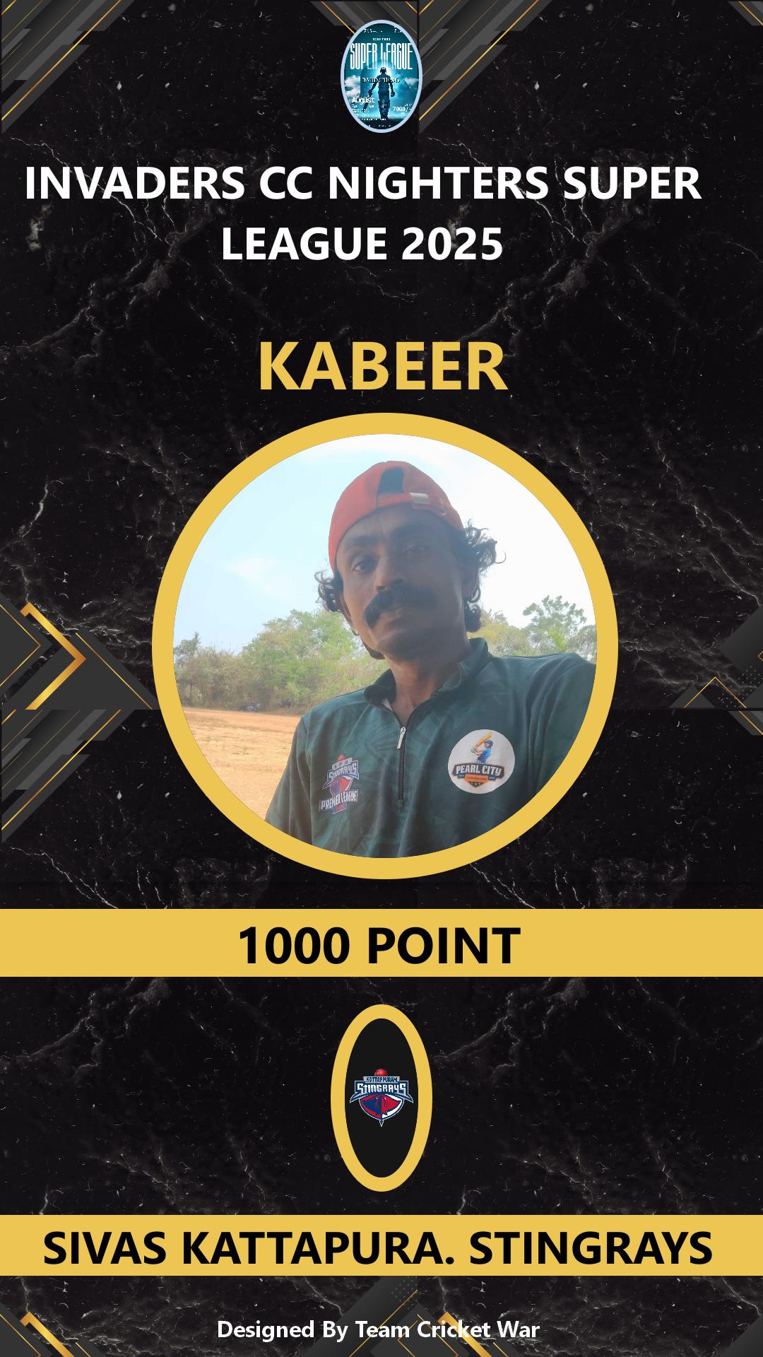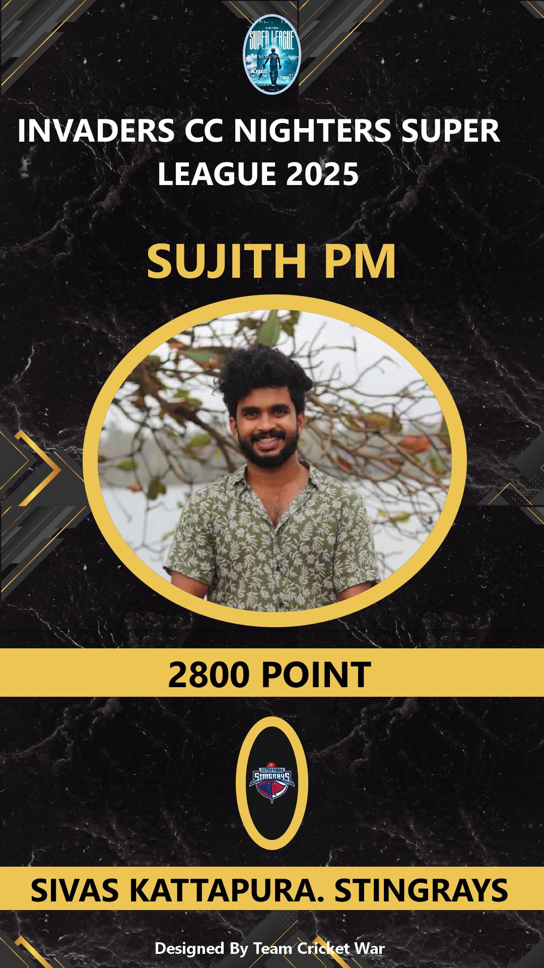 BATSMAN, AGE : 33 MANGAD Bid Amount : 2800 Team : SIVAS KATTAPURA. STINGRAYS Download ID Card |