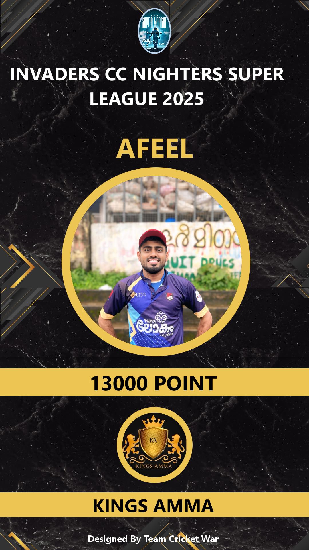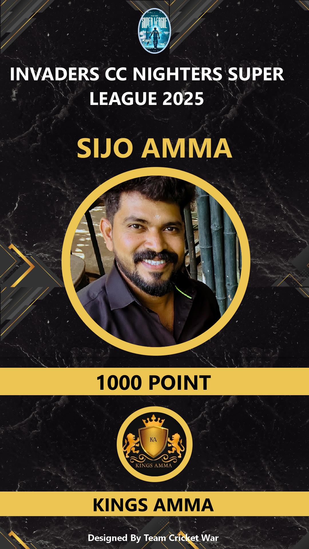 ALLROUNDER, AGE : 31 THRISSUR Bid Amount : 13000 Team : KINGS AMMA Download ID Card VIEW PROFILE |