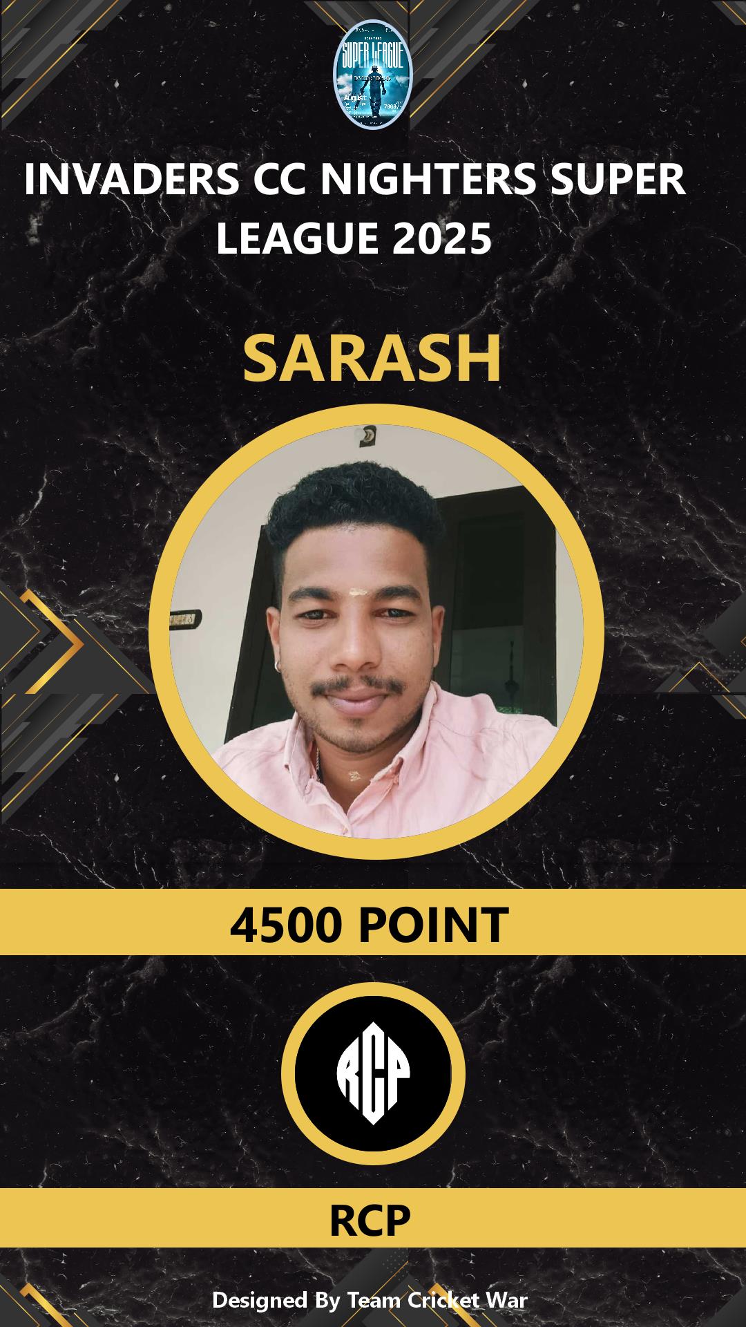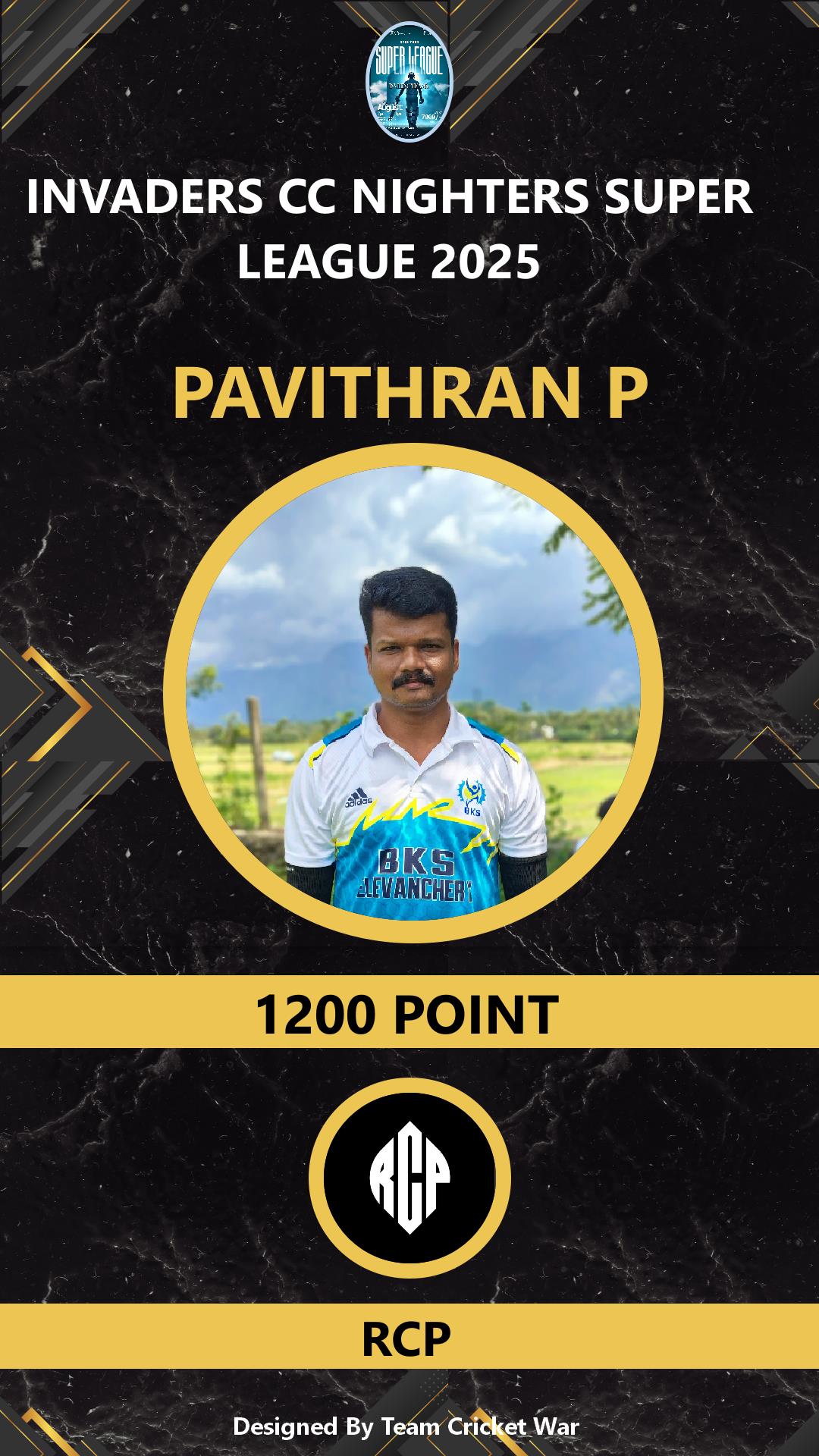 ALLROUNDER, AGE : 33 MAMABAZAR Bid Amount : 1200 Team : RCP Download ID Card |