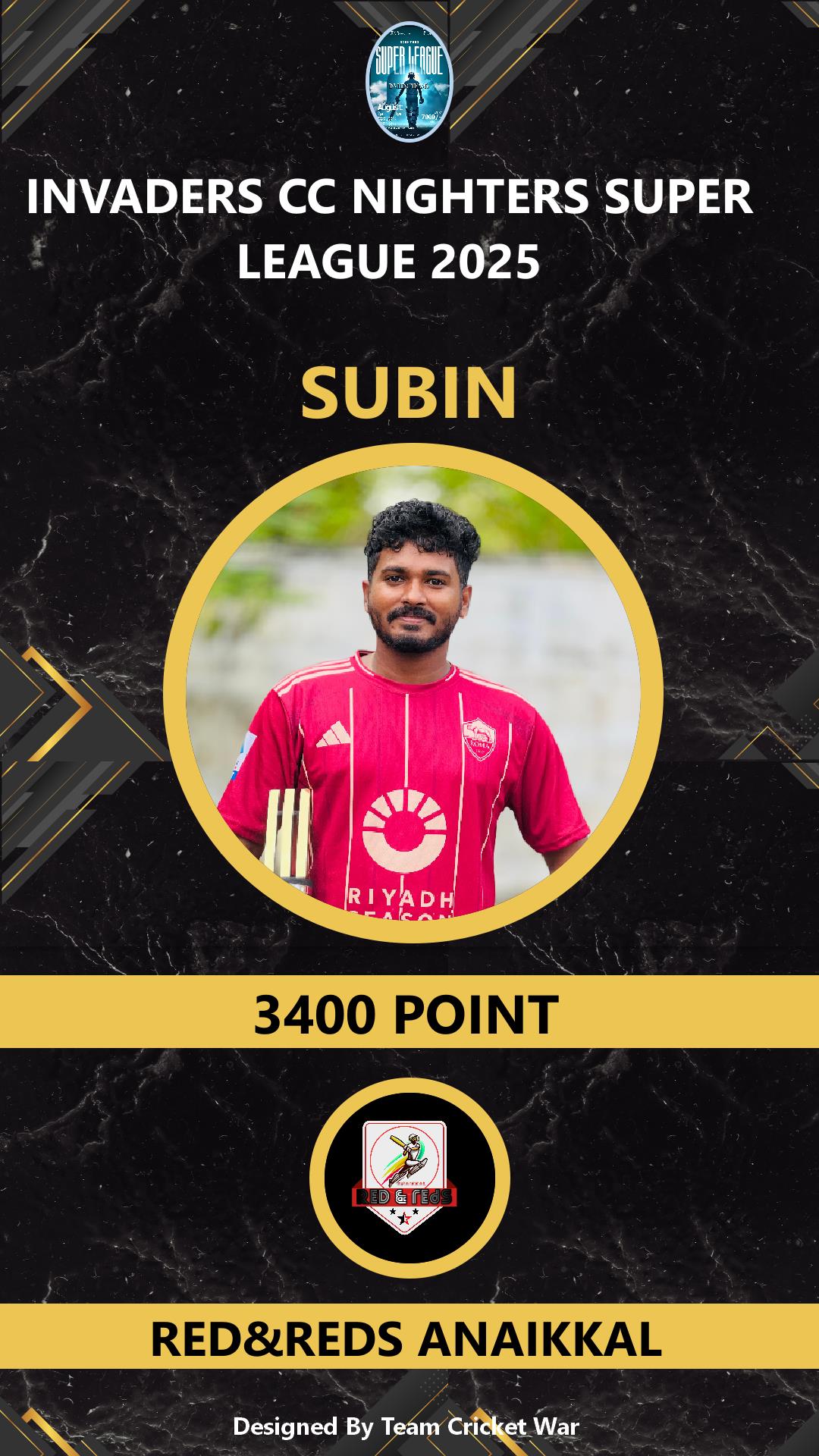 BATSMAN, AGE : 28 ANTHIKAD Bid Amount : 9500 Team : SPARTANS KANIPPAYYUR Download ID Card VIEW PROFILE |