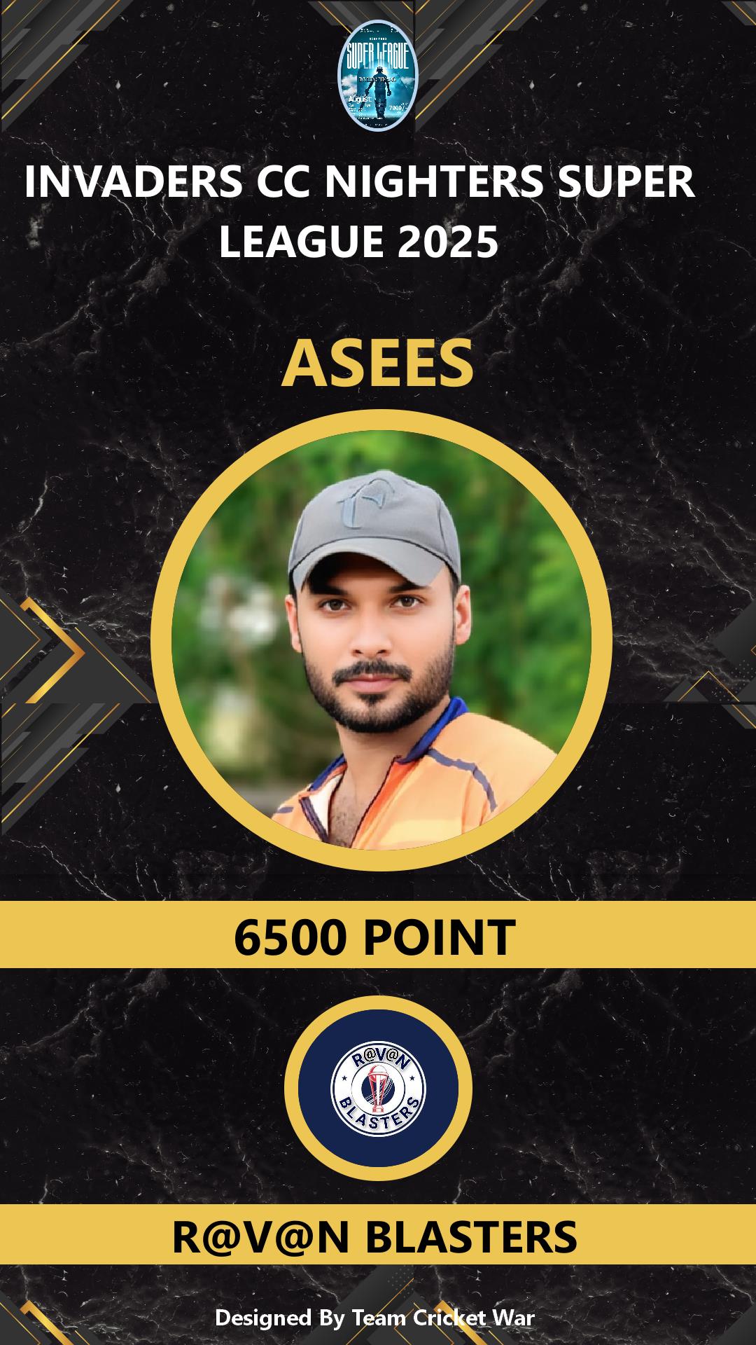 ALLROUNDER, AGE : 33 PANTHA LOOR Bid Amount : 6500 Team : R@V@N BLASTERS Download ID Card VIEW PROFILE |