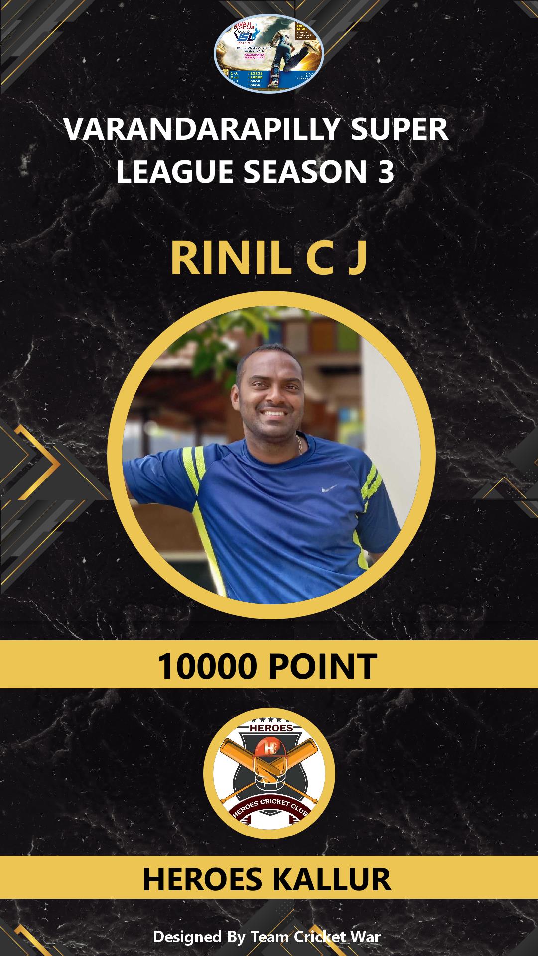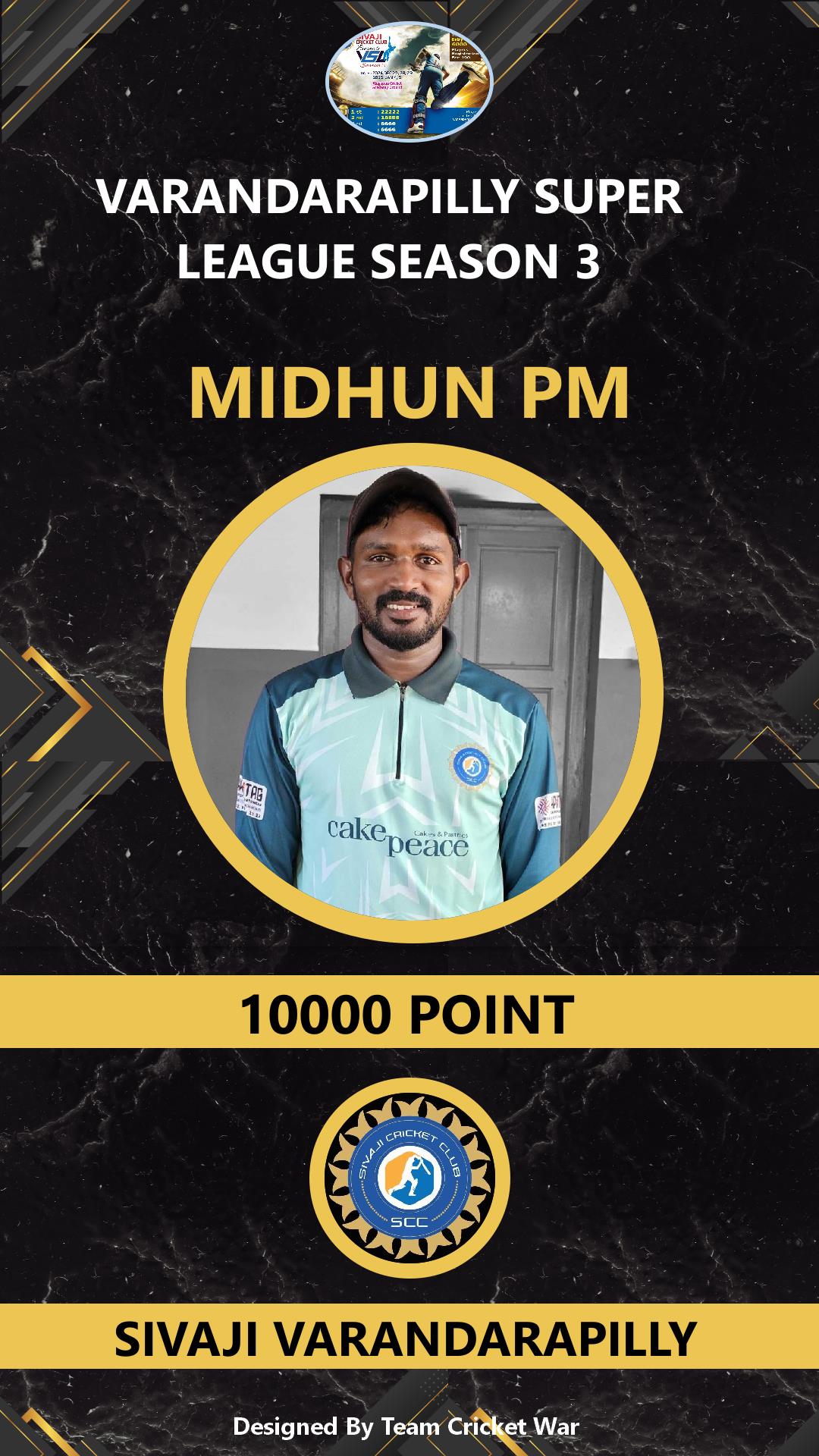 ALLROUNDER, AGE : 37 KARUVAPPADY Bid Amount : 10000 Team : MIRACLES CRICKETWAR Download ID Card VIEW PROFILE |