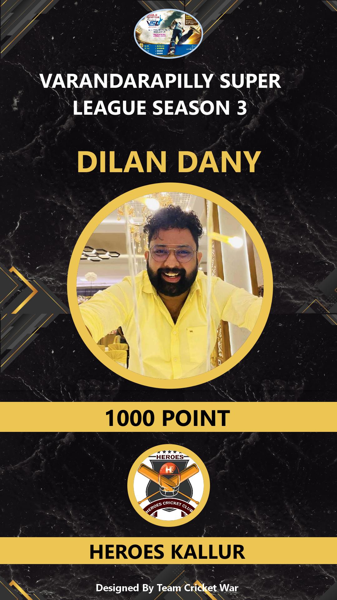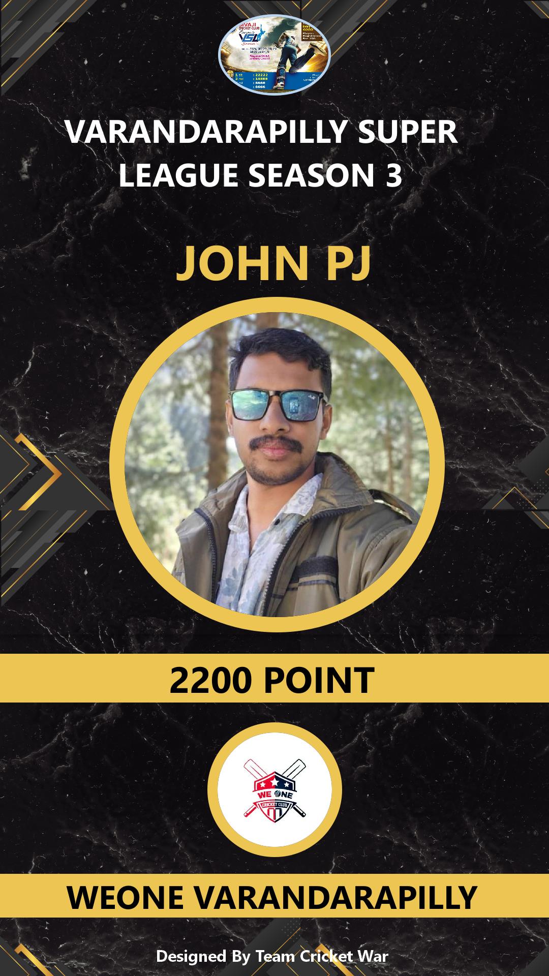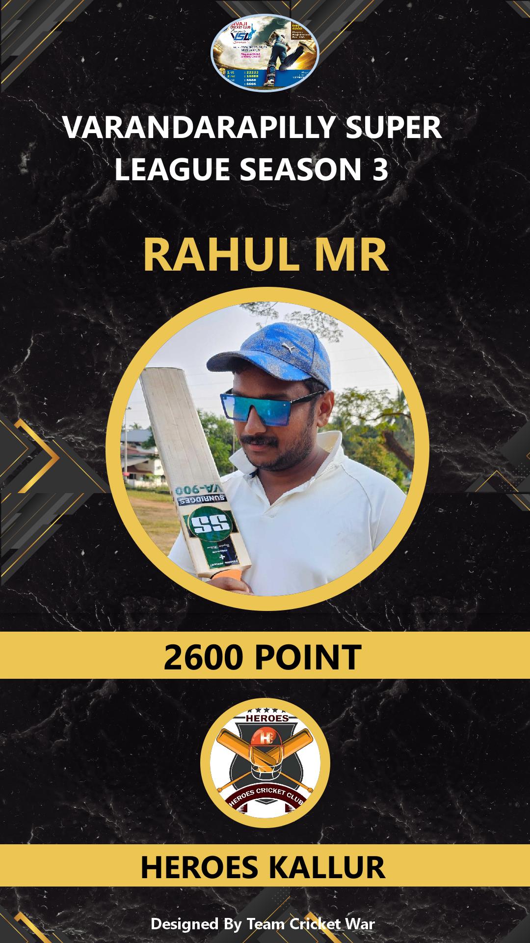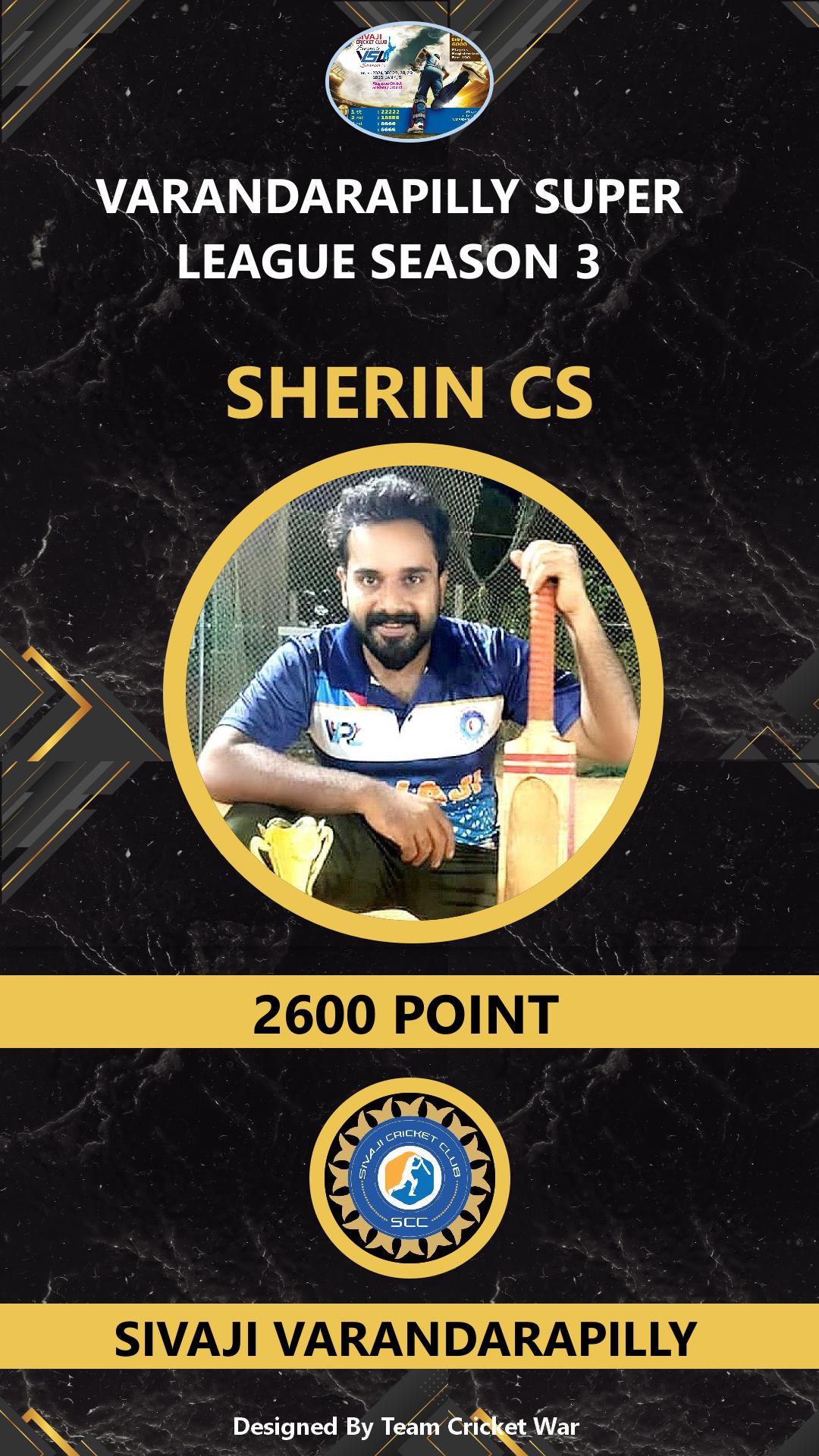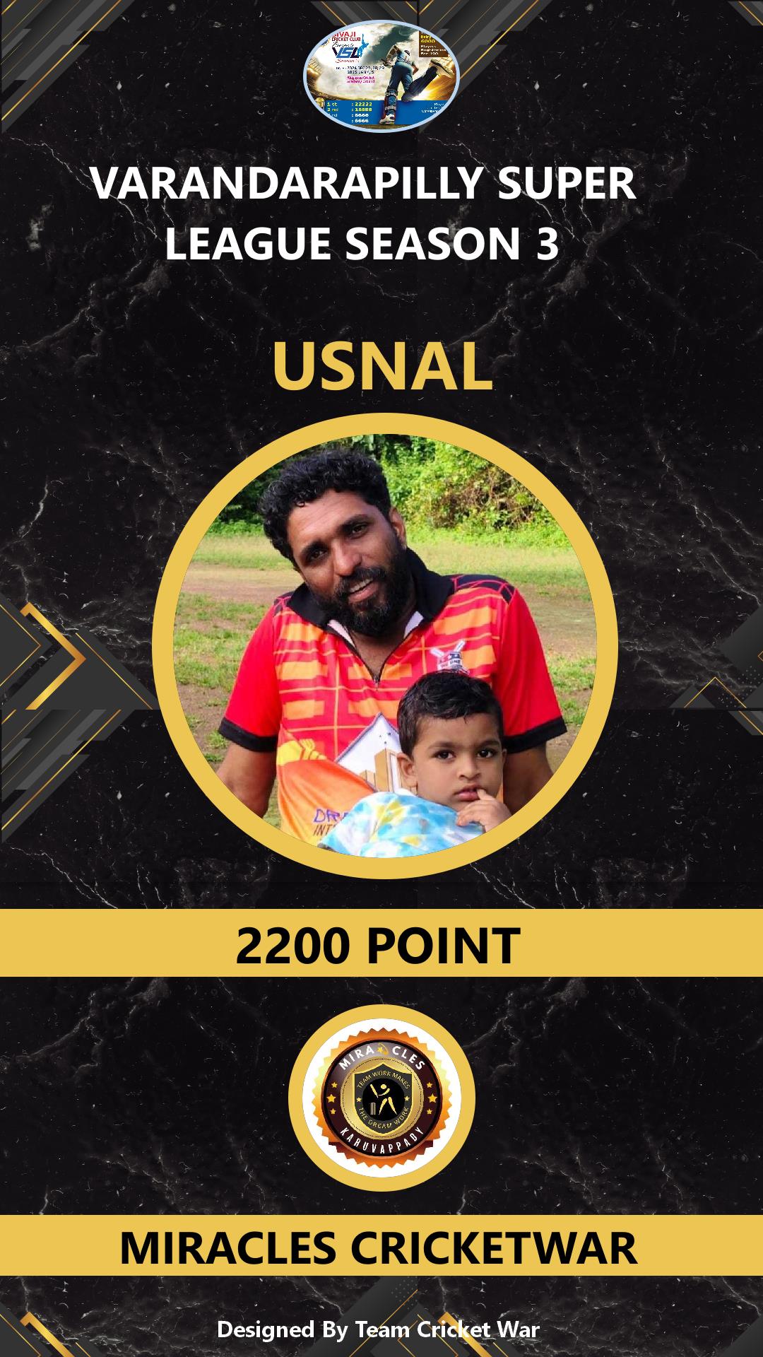 ALLROUNDER, AGE : 41 VARANDARAPPILLY Bid Amount : 2000 Team : MIRACLES CRICKETWAR Download ID Card VIEW PROFILE |