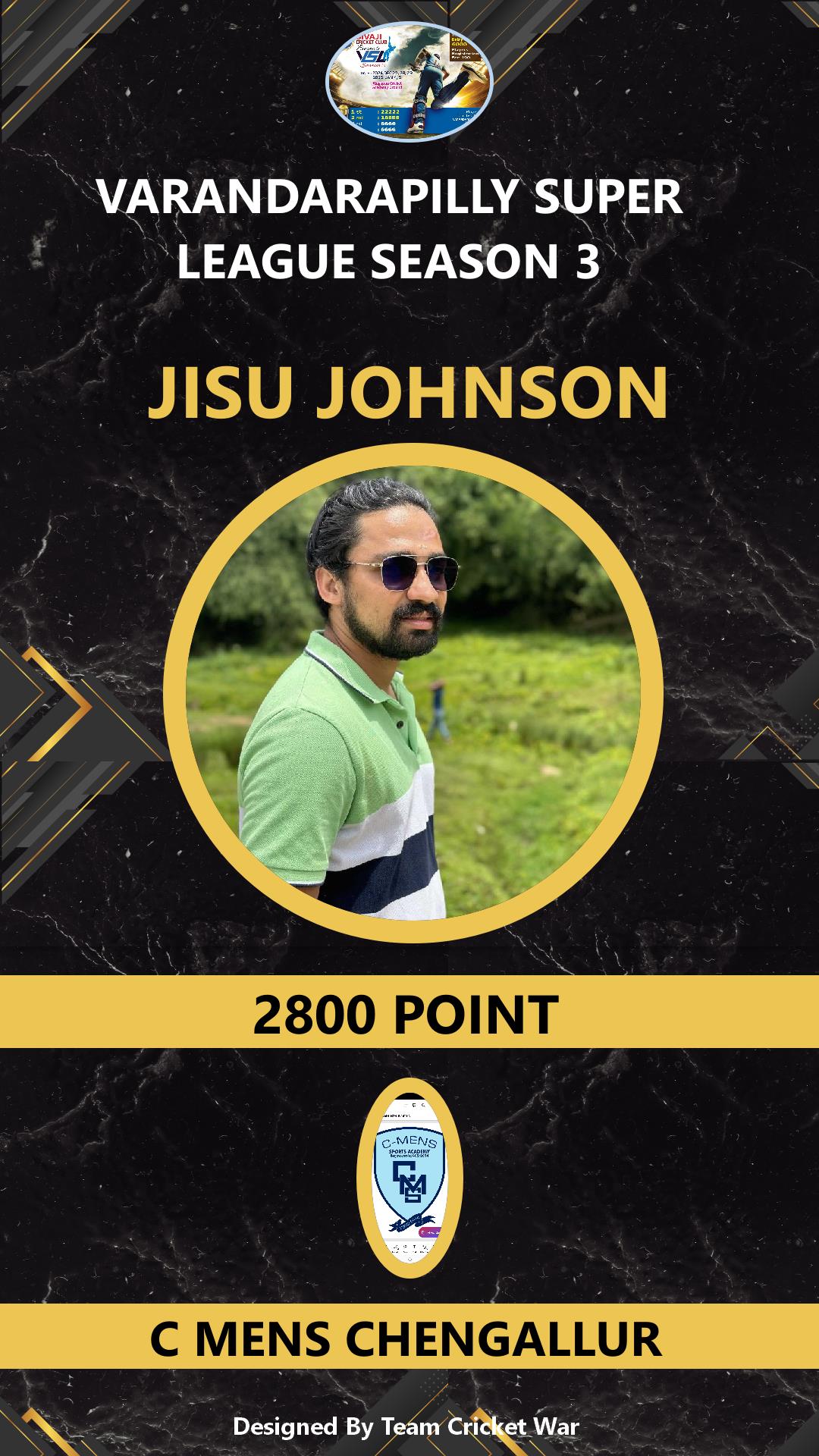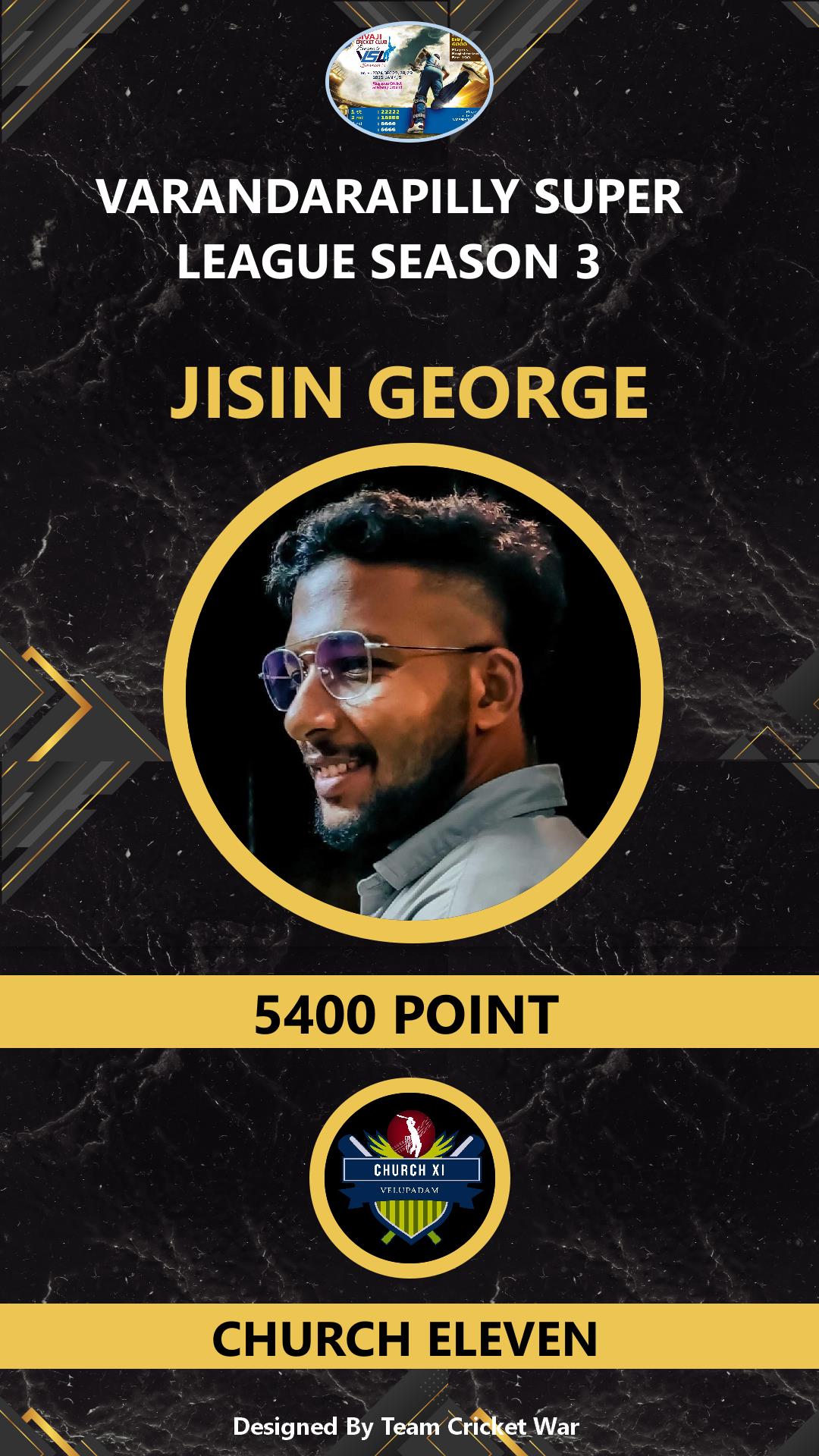 ALLROUNDER, AGE : 31 CHENGALOOR Bid Amount : 6500 Team : CHURCH ELEVEN Download ID Card VIEW PROFILE |