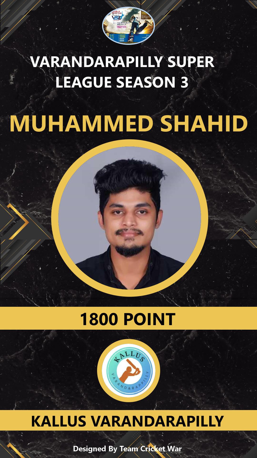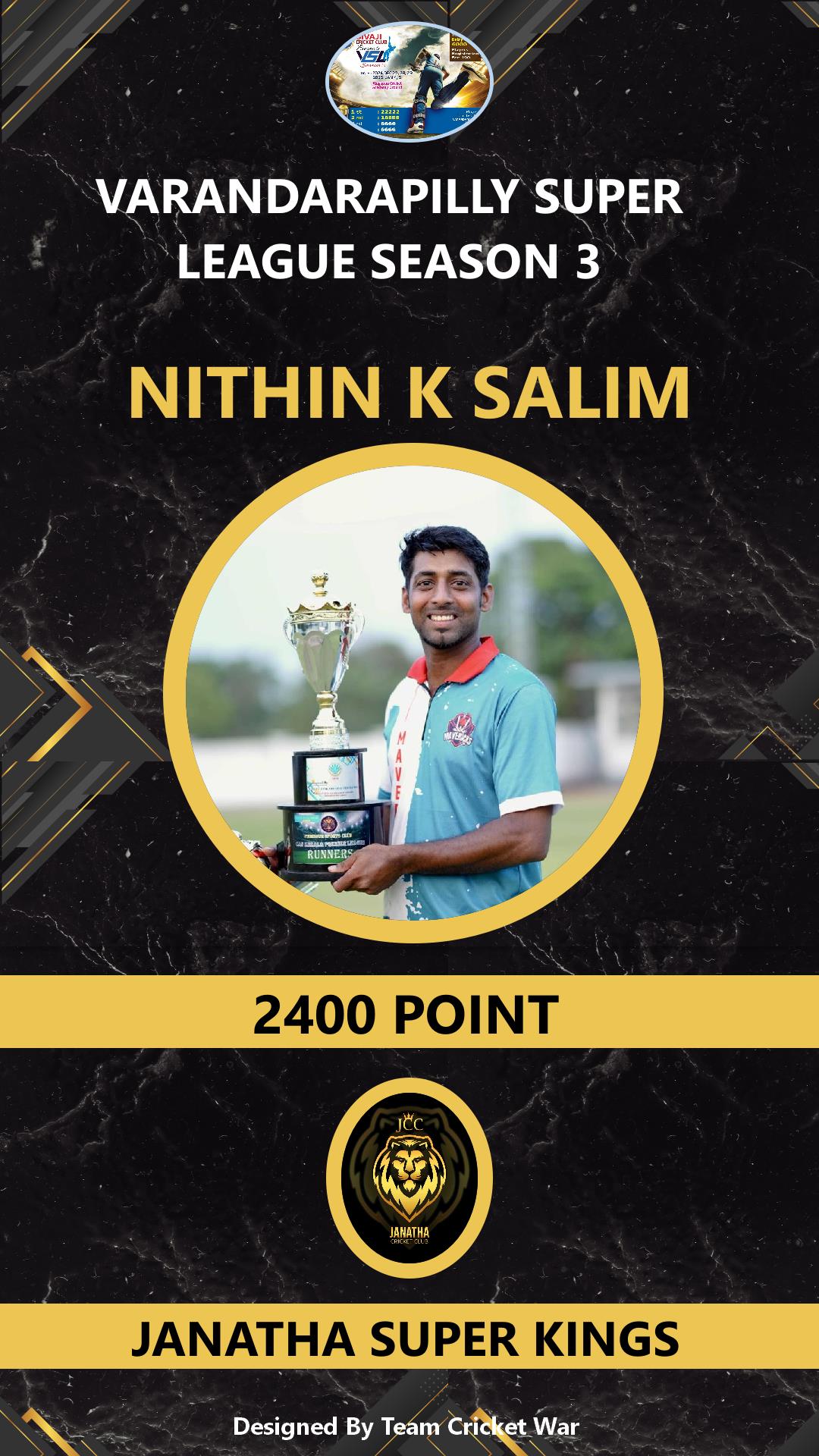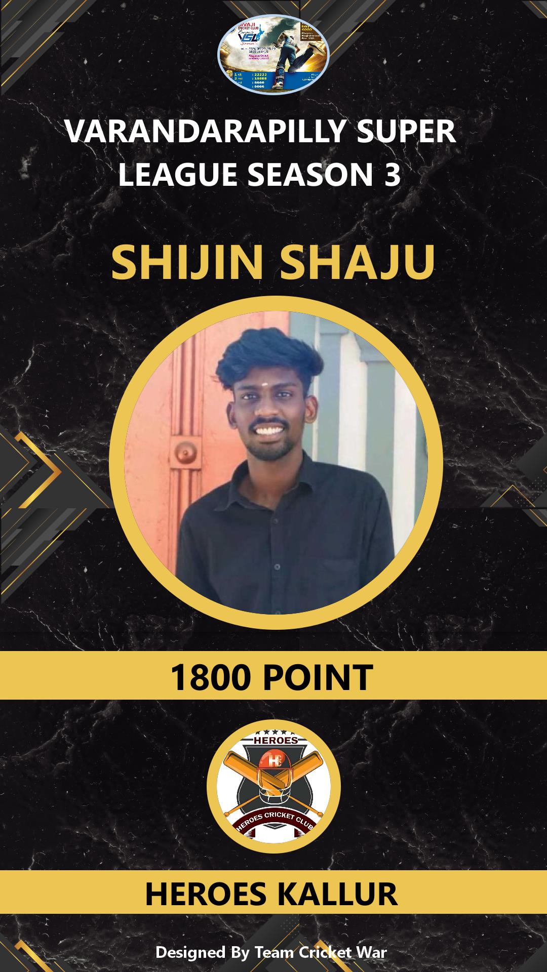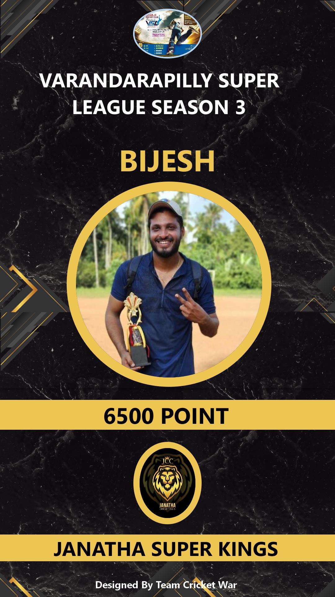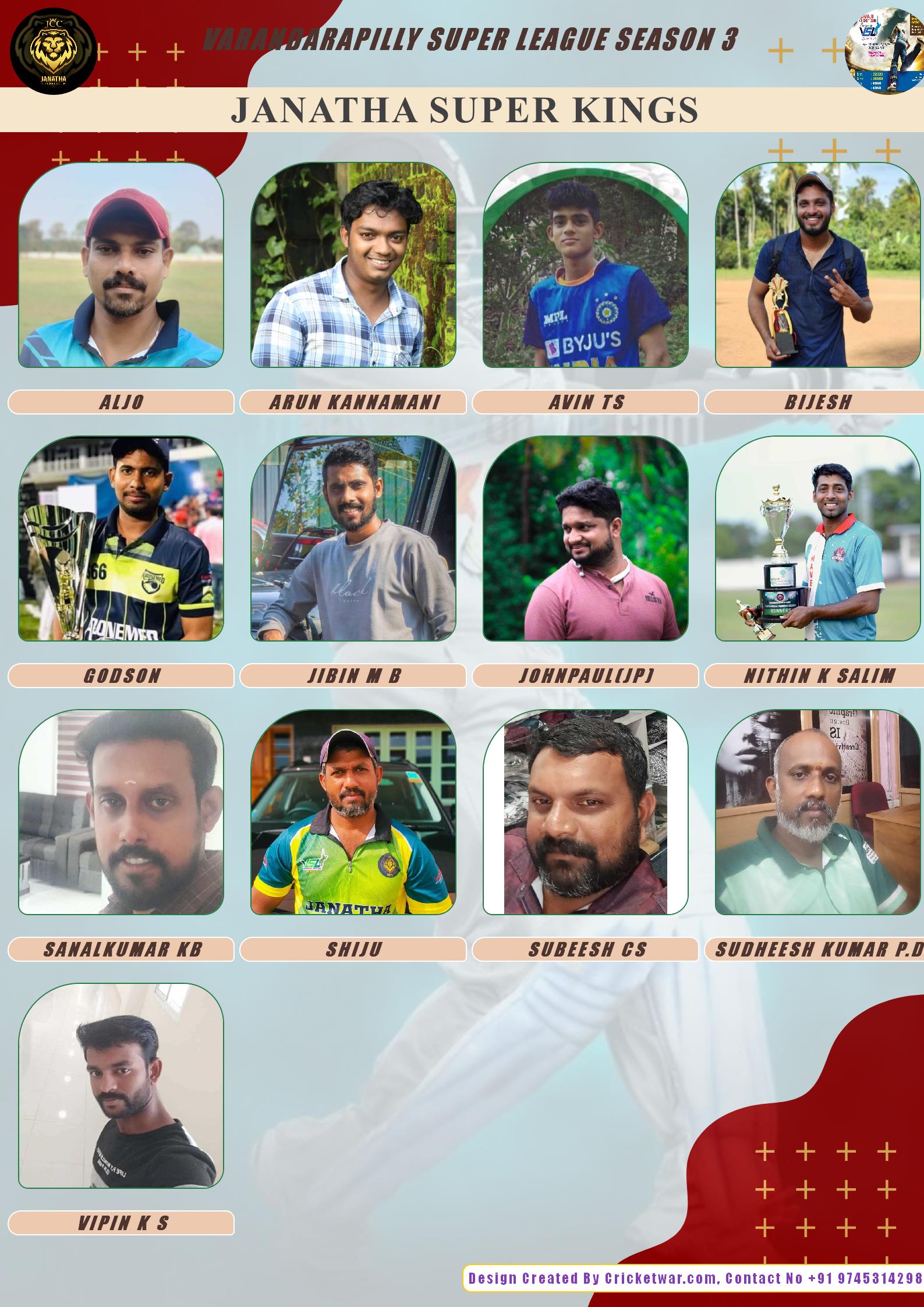 BATTING ALLROUNDER, AGE : 23 VARAKARA Bid Amount : 2000 Team : JANATHA SUPER KINGS Download ID Card VIEW PROFILE |