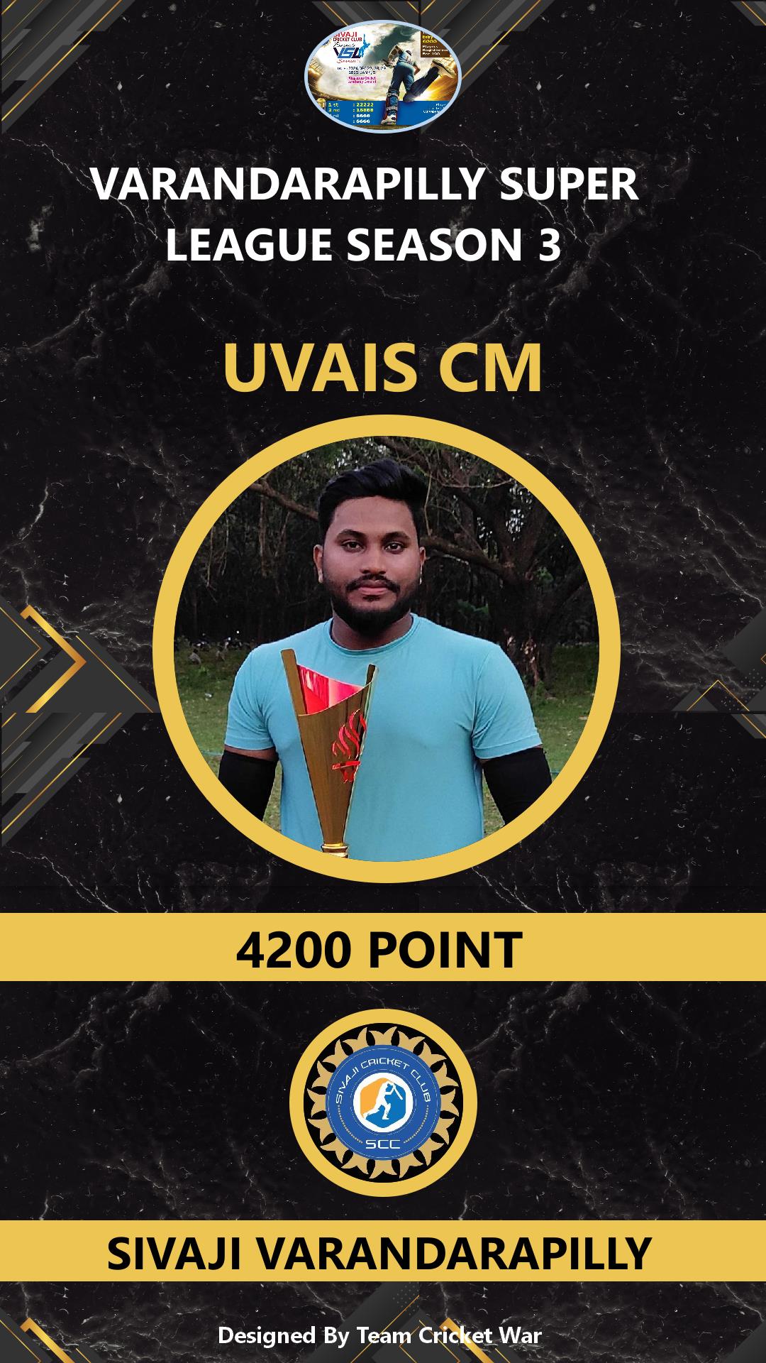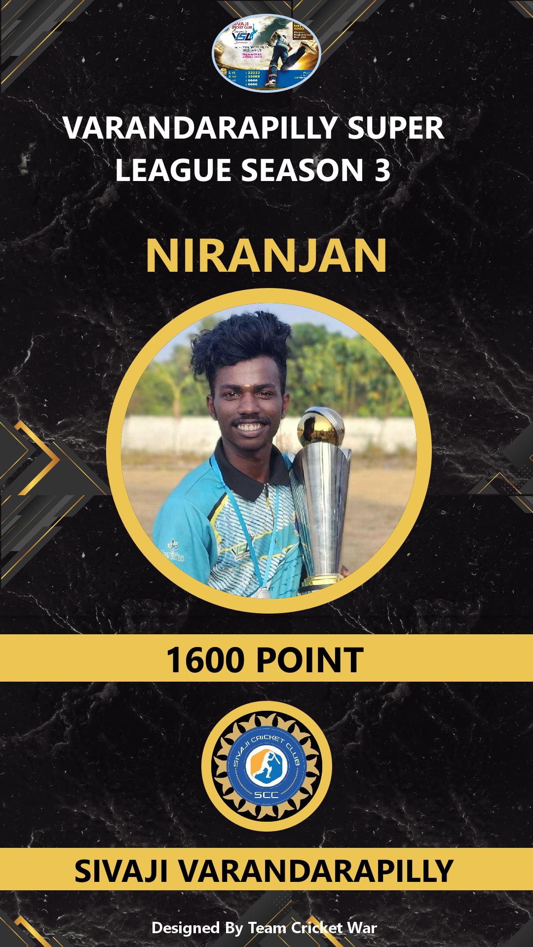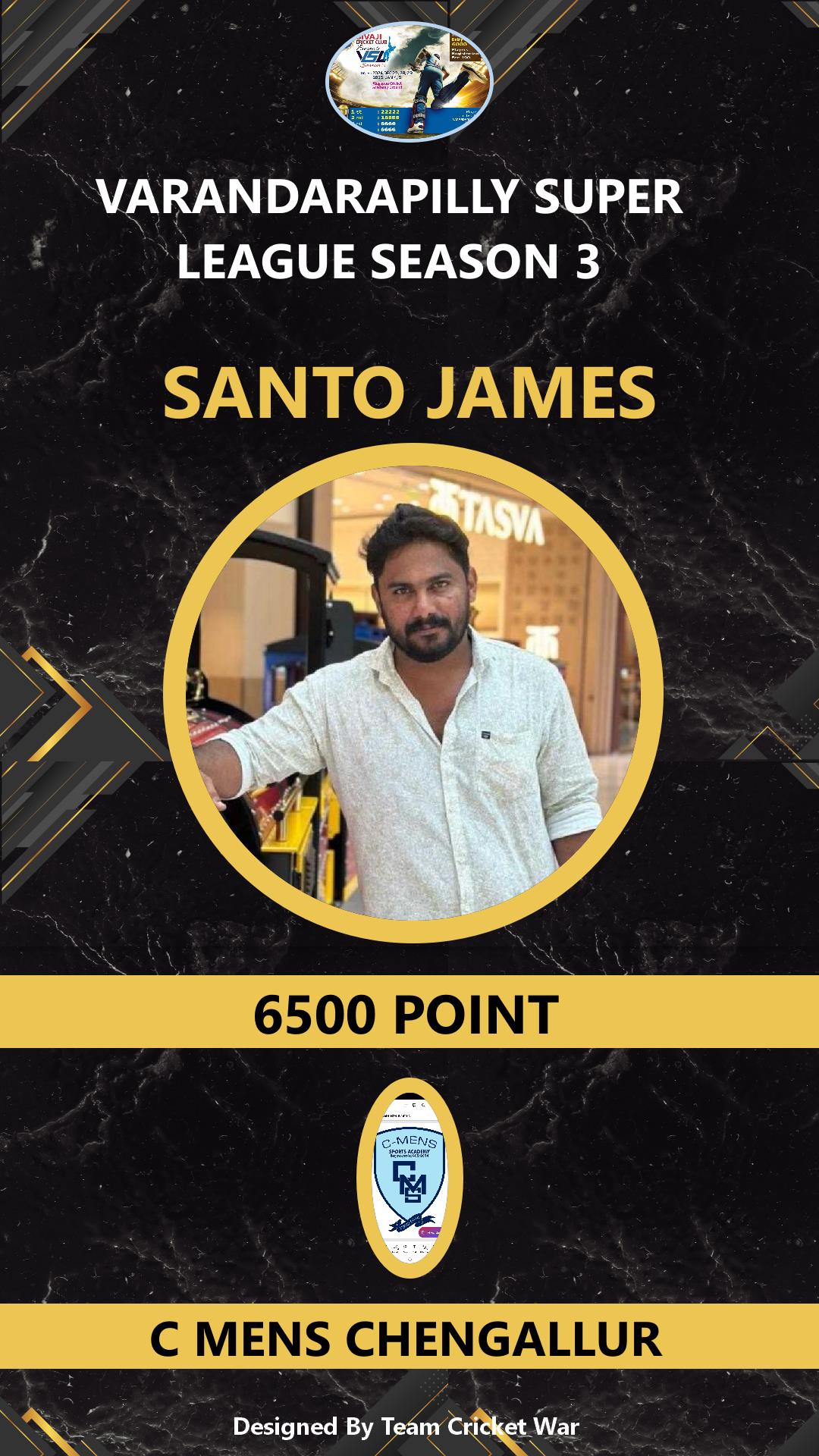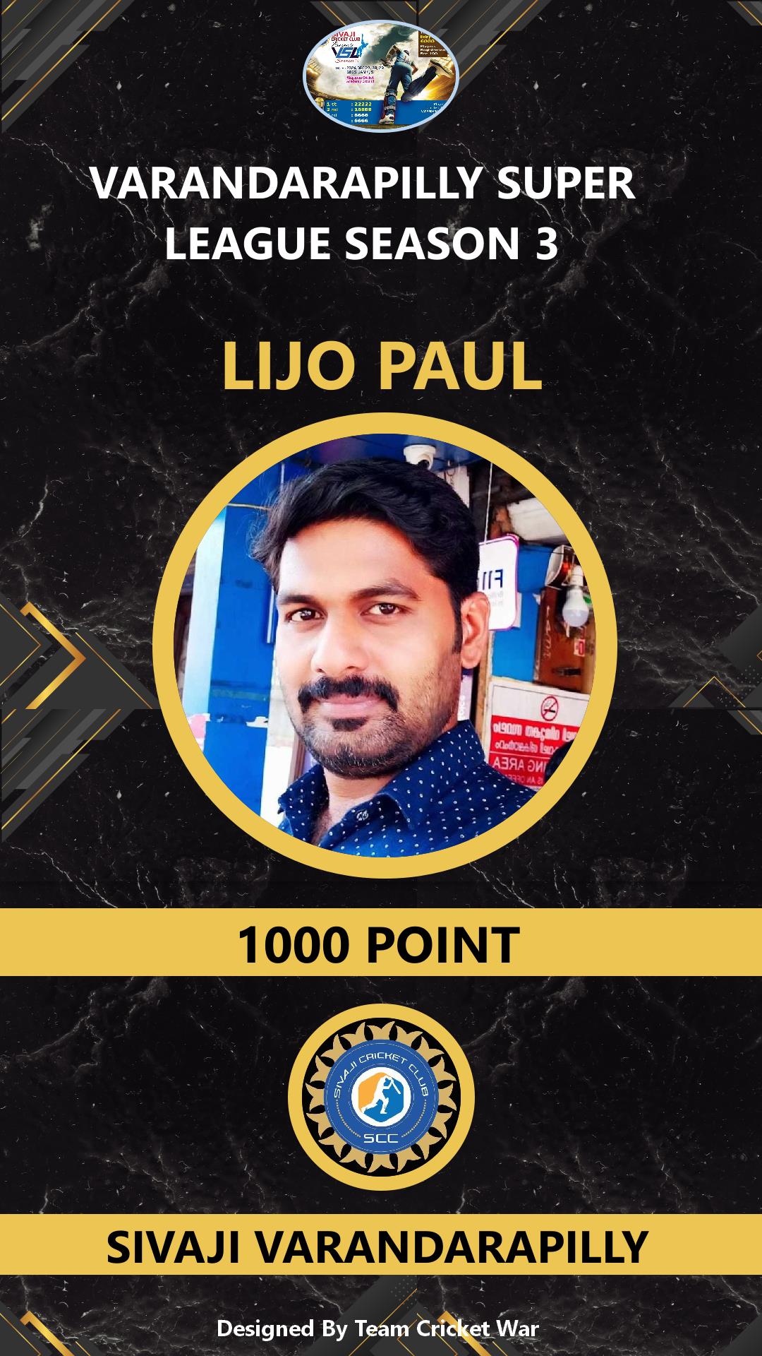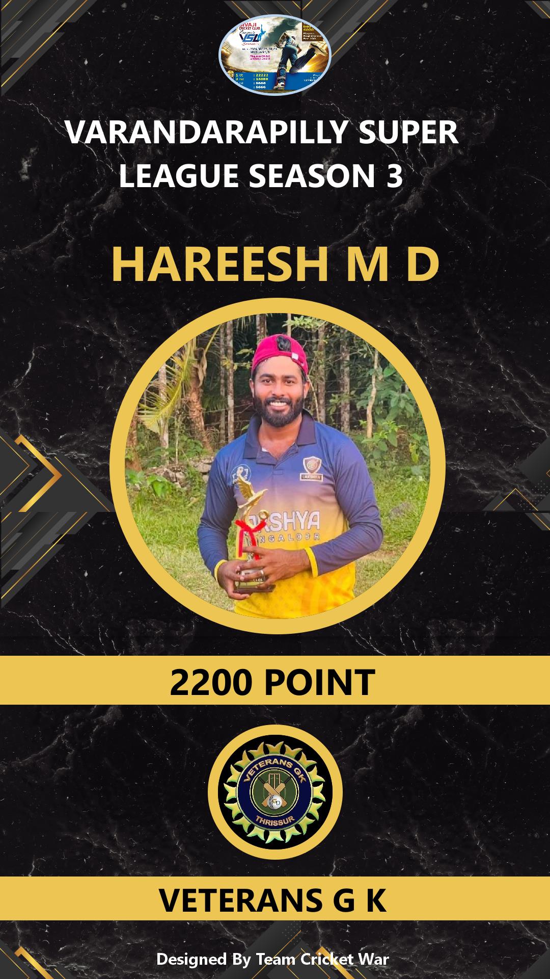 ALLROUNDER, AGE : 32 VELUPADAM Bid Amount : 4200 Team : SIVAJI VARANDARAPILLY Download ID Card VIEW PROFILE |