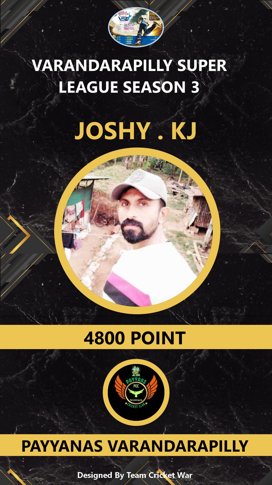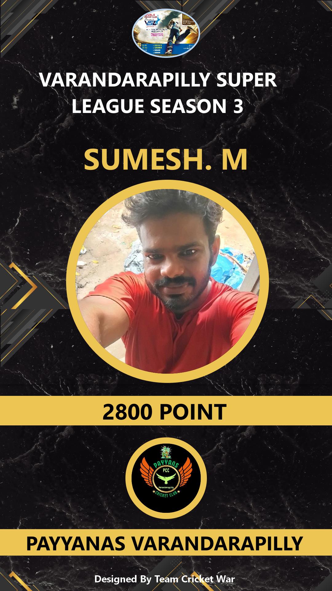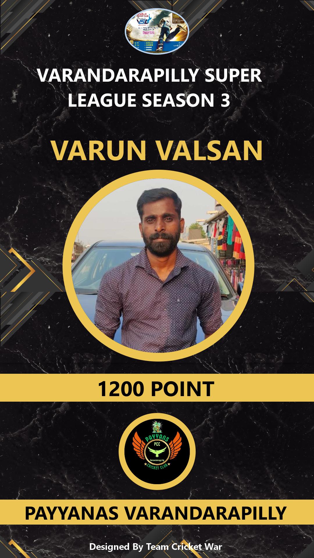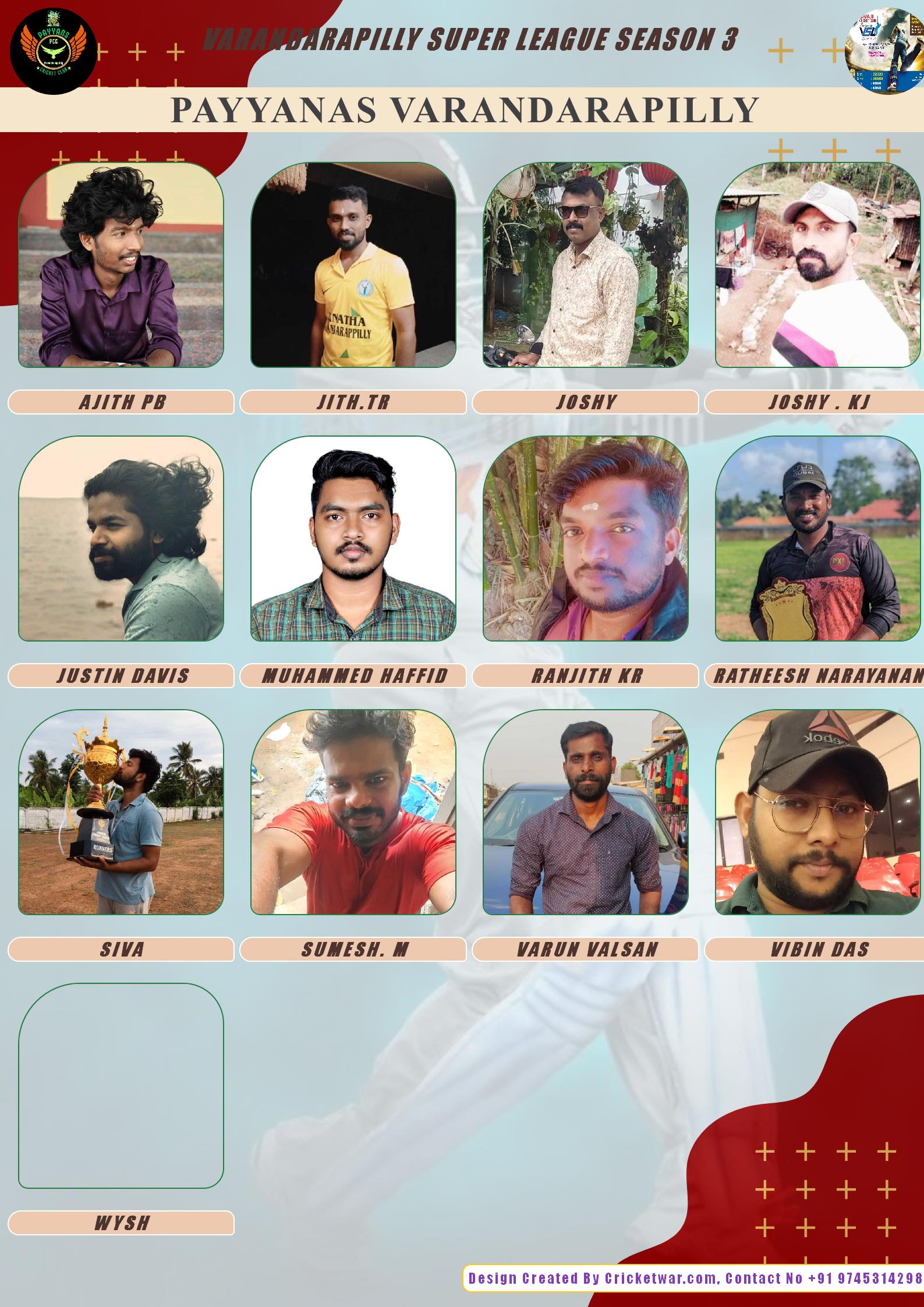 ALLROUNDER, AGE : 35 VARANDARAPPILLY Bid Amount : 2800 Team : PAYYANAS VARANDARAPILLY Download ID Card VIEW PROFILE |