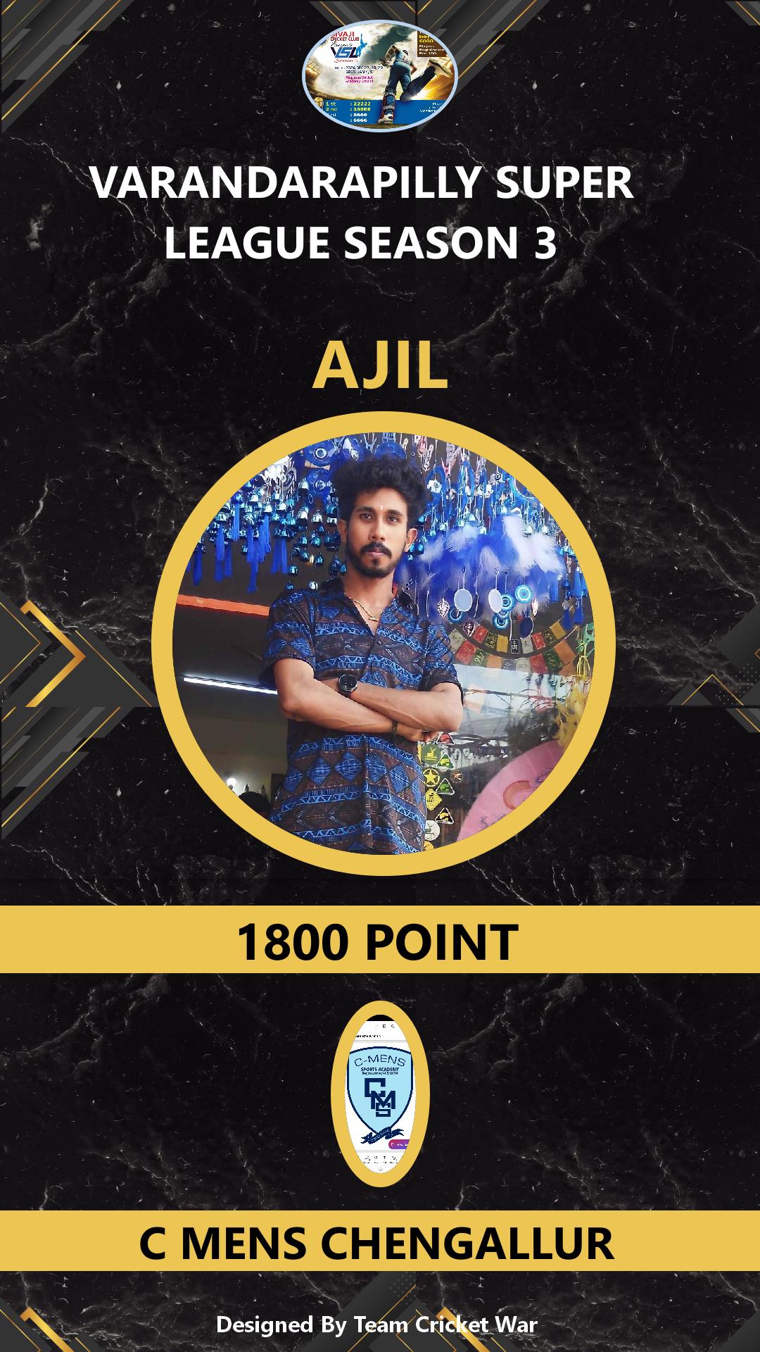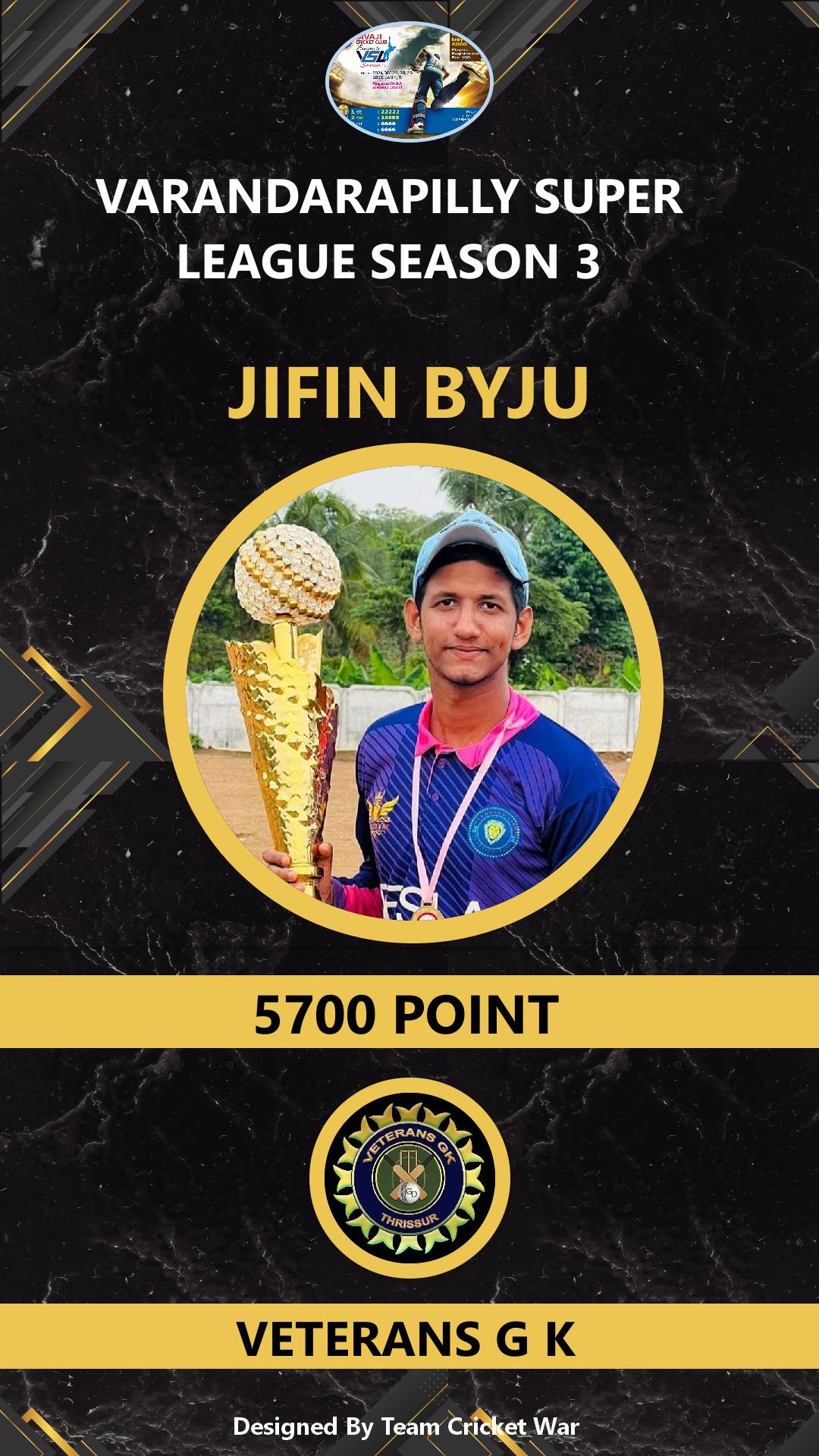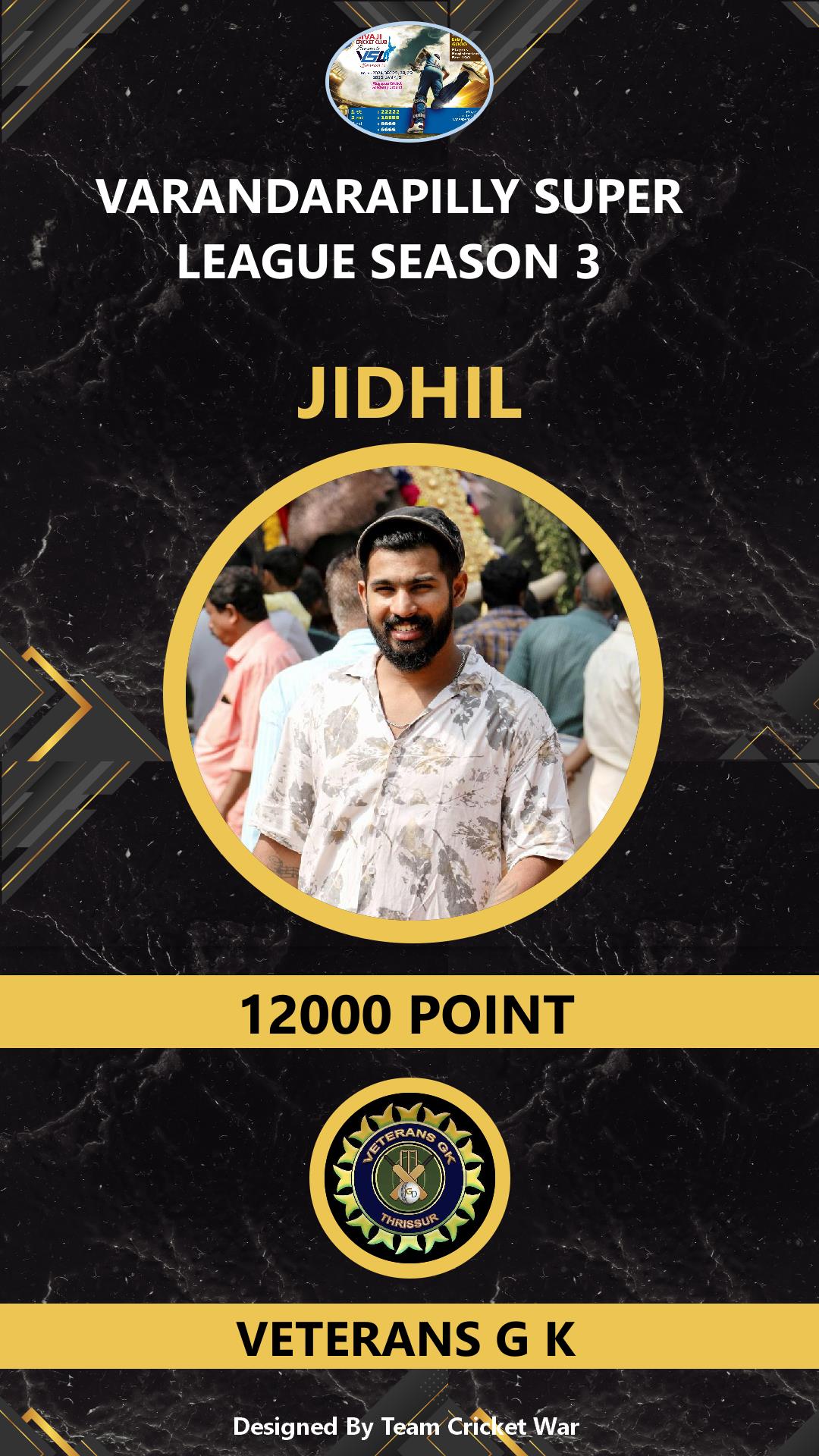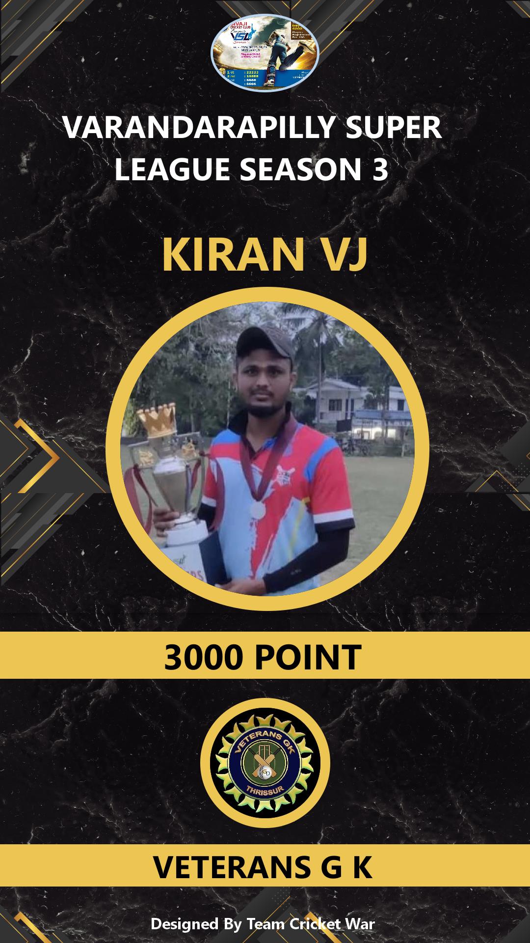 ALLROUNDER, AGE : 26 MANNAMPETTA Bid Amount : 5700 Team : VETERANS G K Download ID Card VIEW PROFILE |