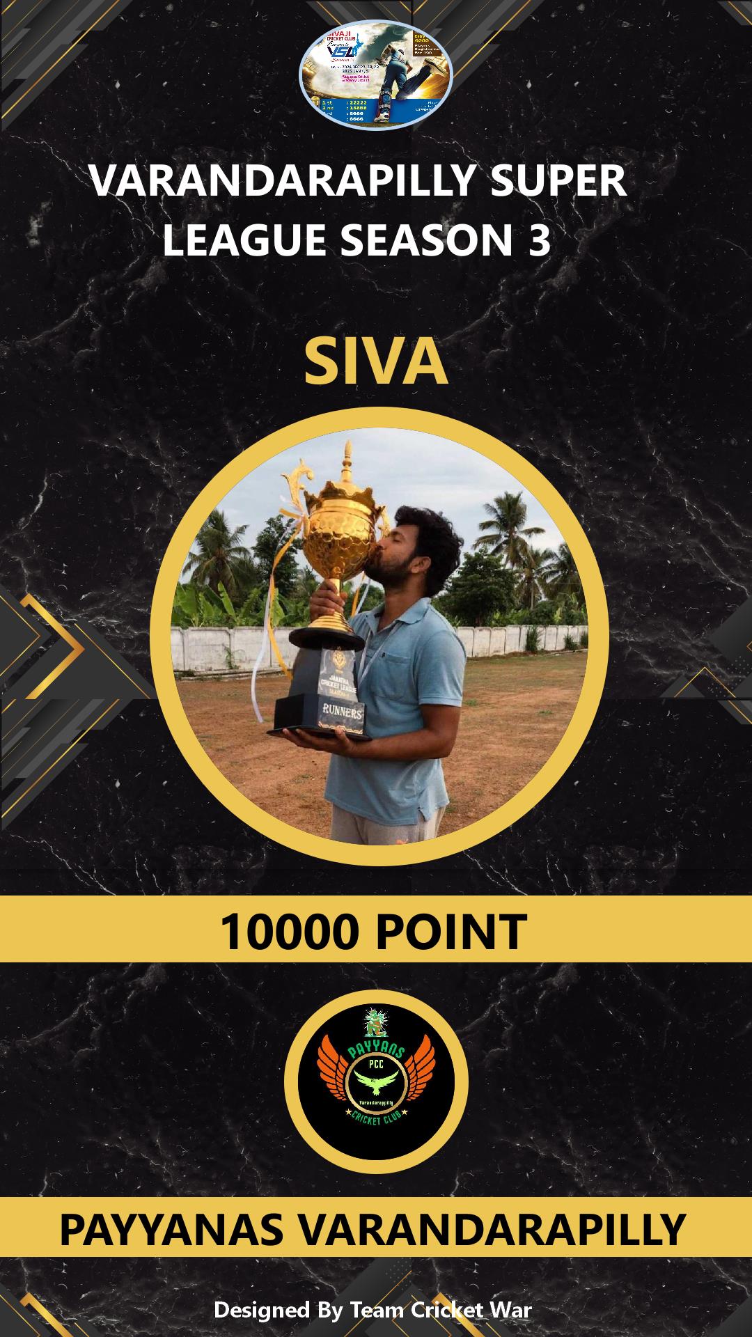 BOWLING ALLROUNDER, AGE : 35 VARANDARAPPILLY Bid Amount : 10000 Team : PAYYANAS VARANDARAPILLY Download ID Card VIEW PROFILE |