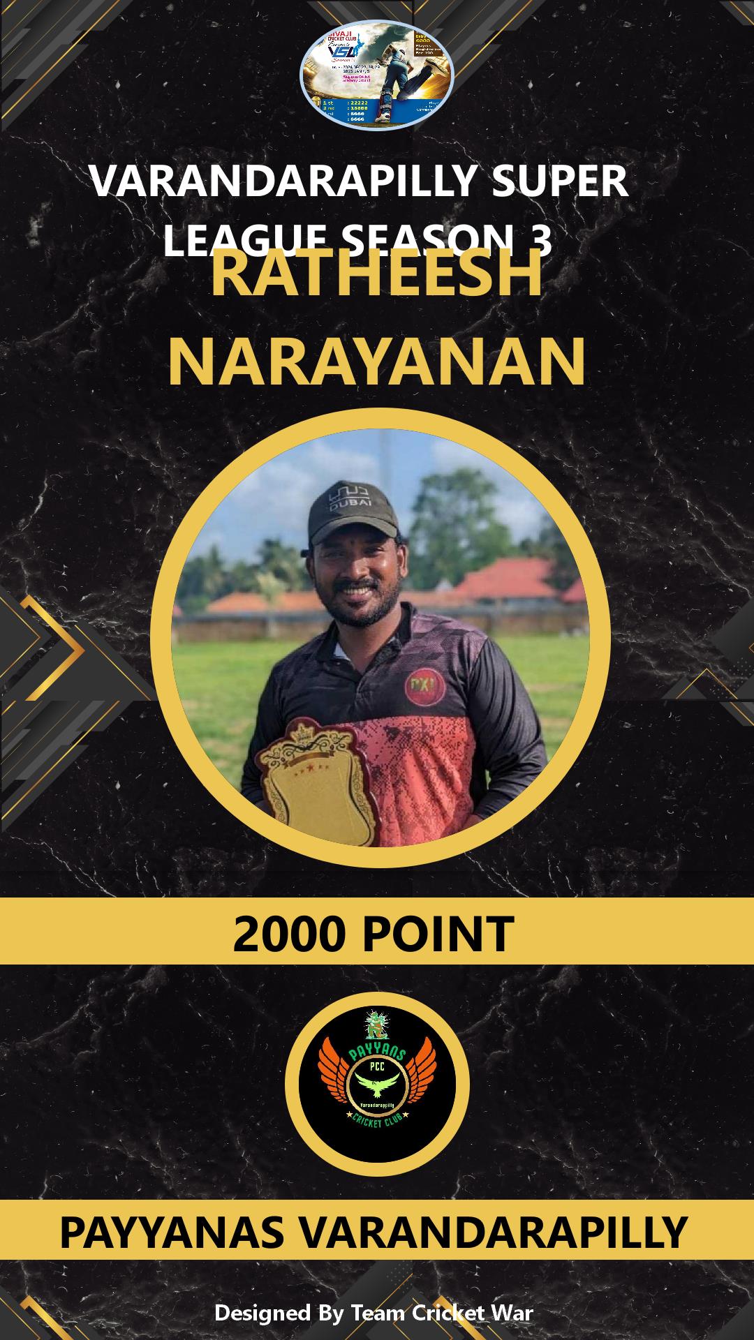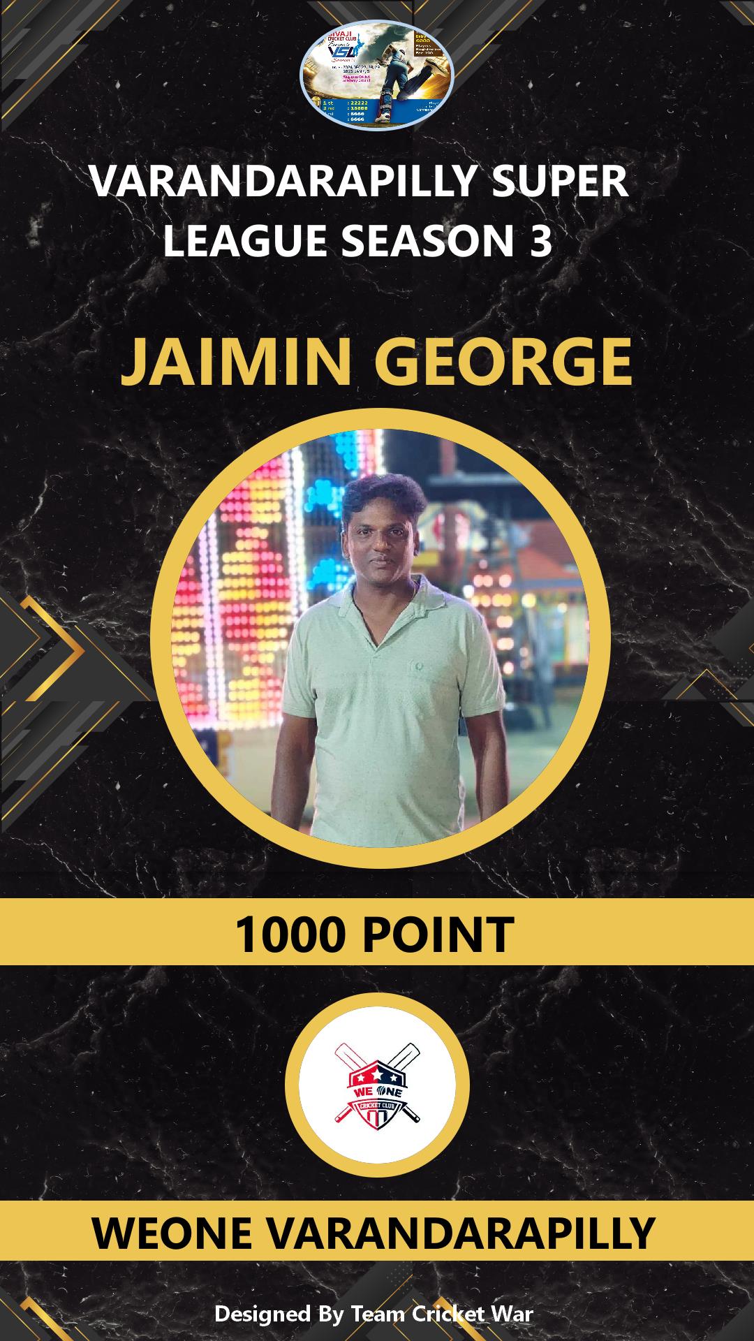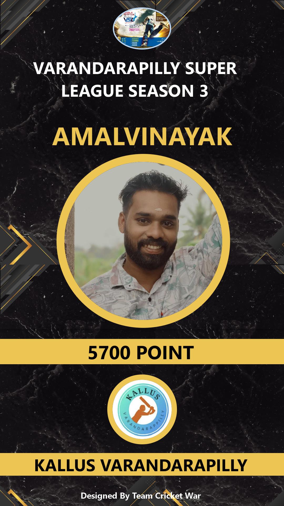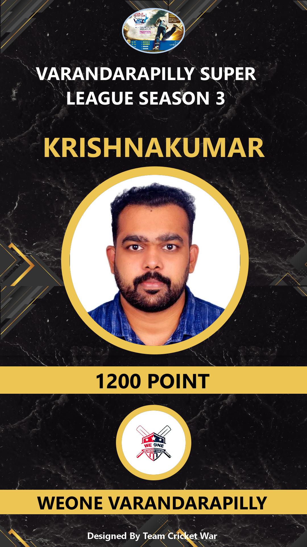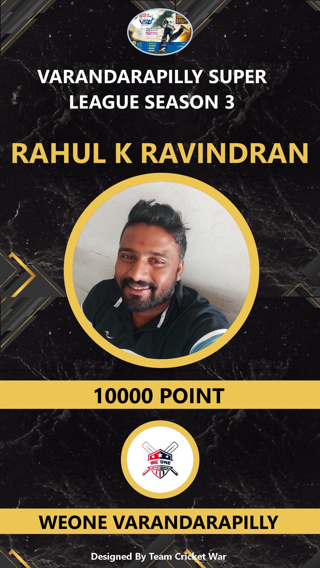 ALLROUNDER, AGE : 34 KALLUR Bid Amount : 1000 Team : WEONE VARANDARAPILLY Download ID Card |