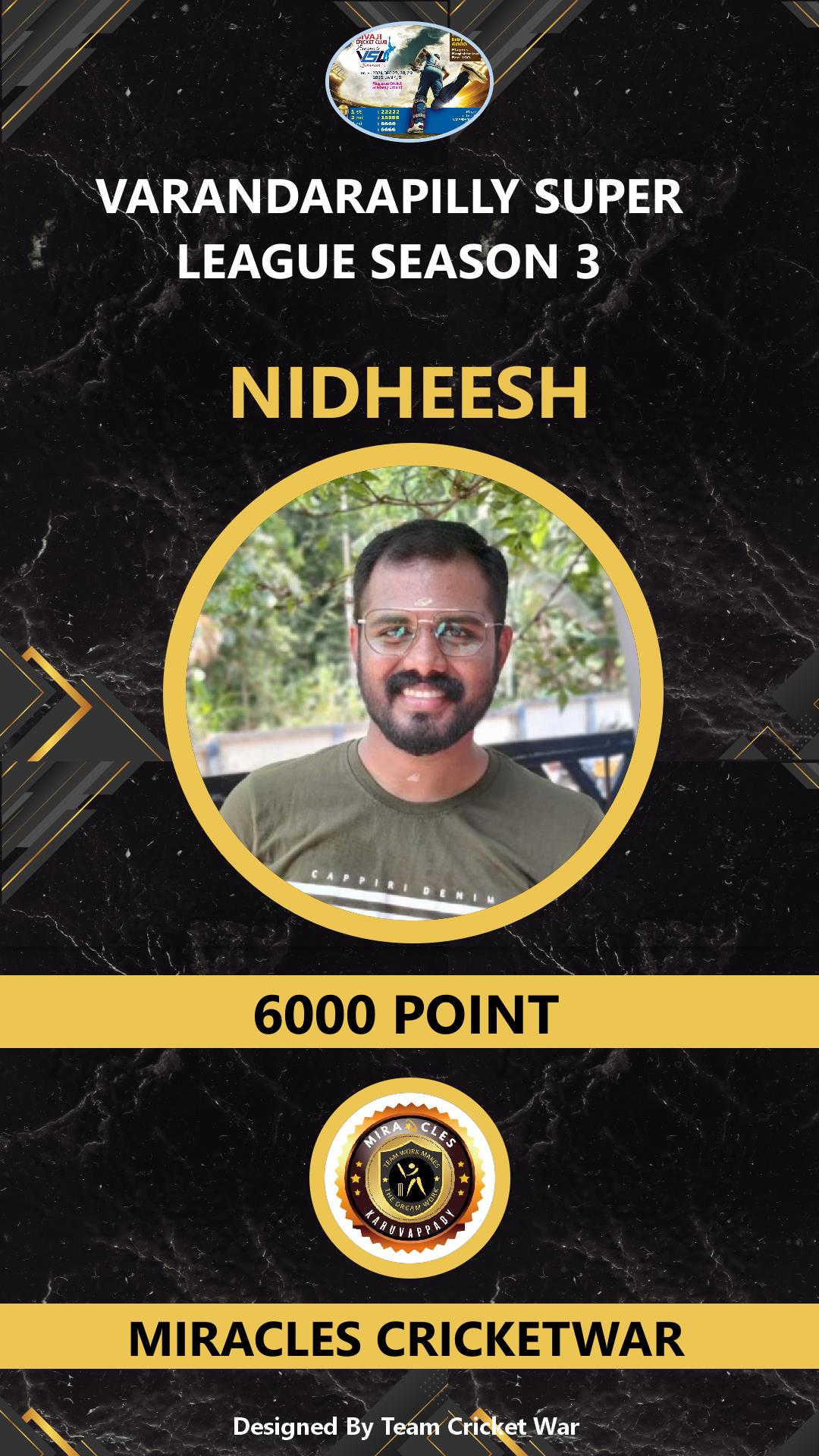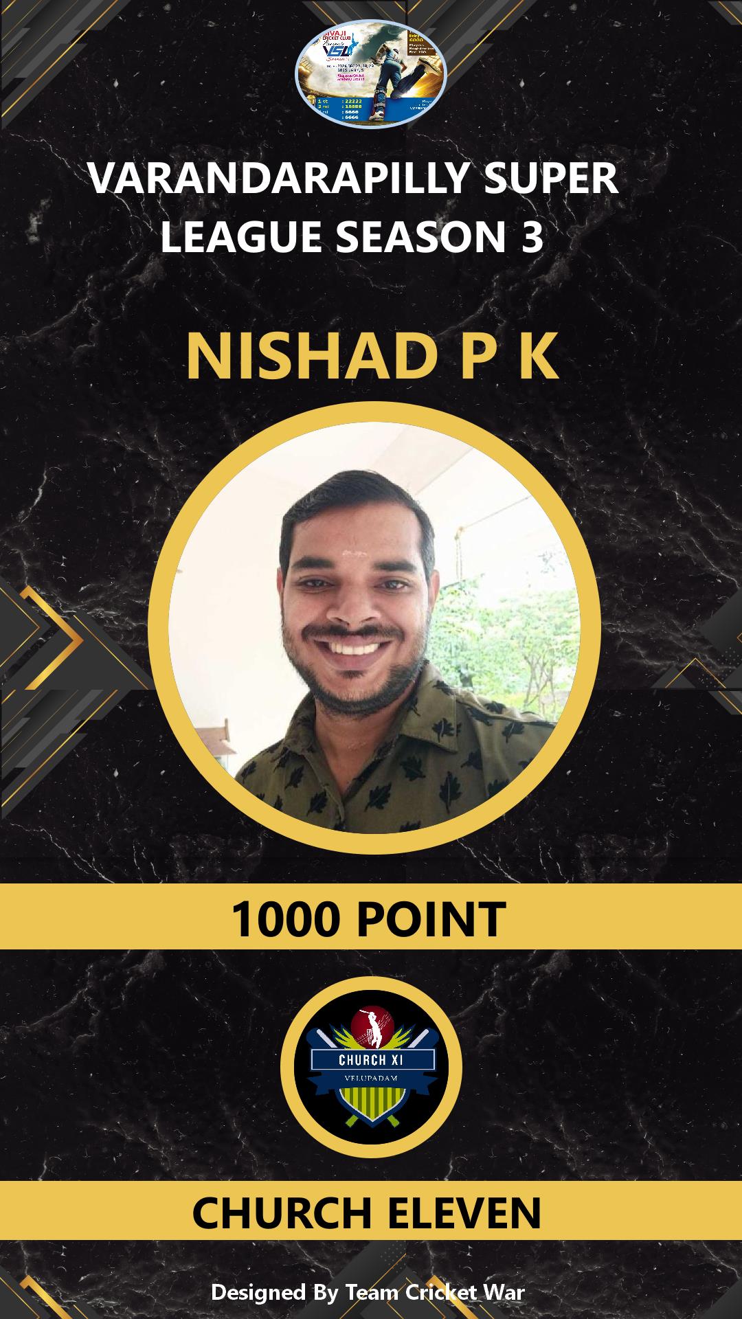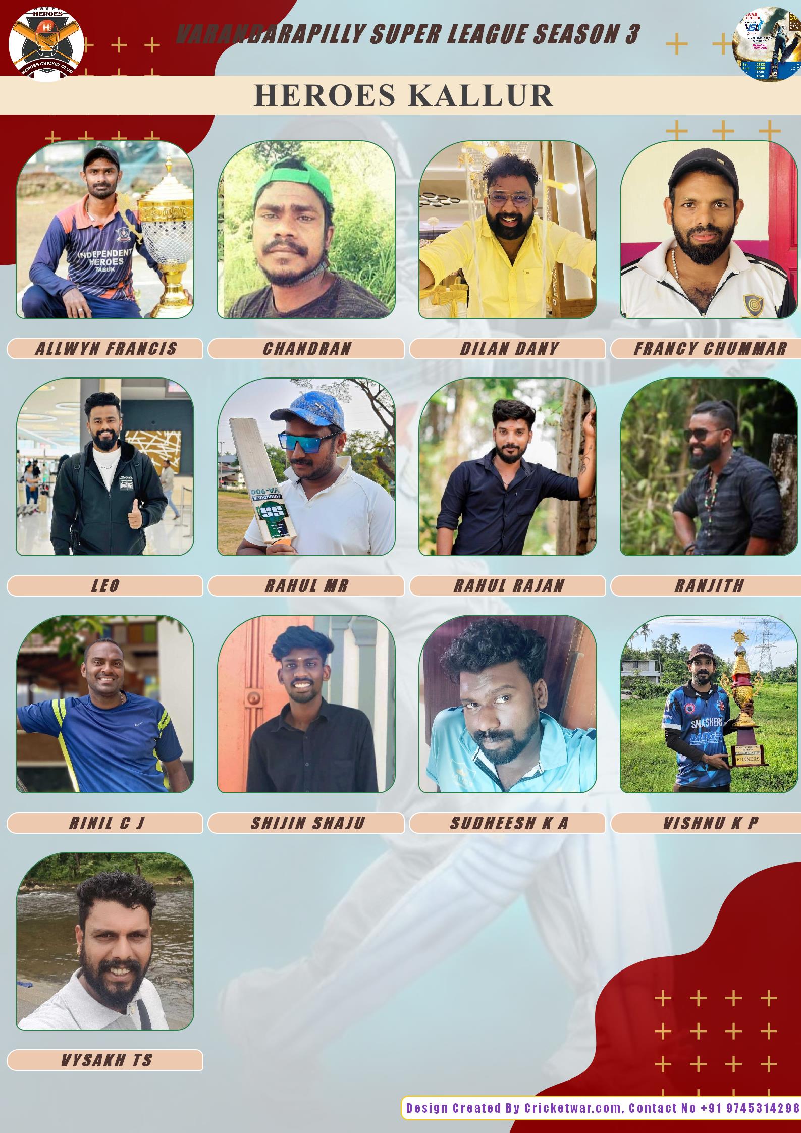 ALLROUNDER, AGE : 33 PUDUKAD Bid Amount : 1000 Team : HEROES KALLUR Download ID Card VIEW PROFILE |