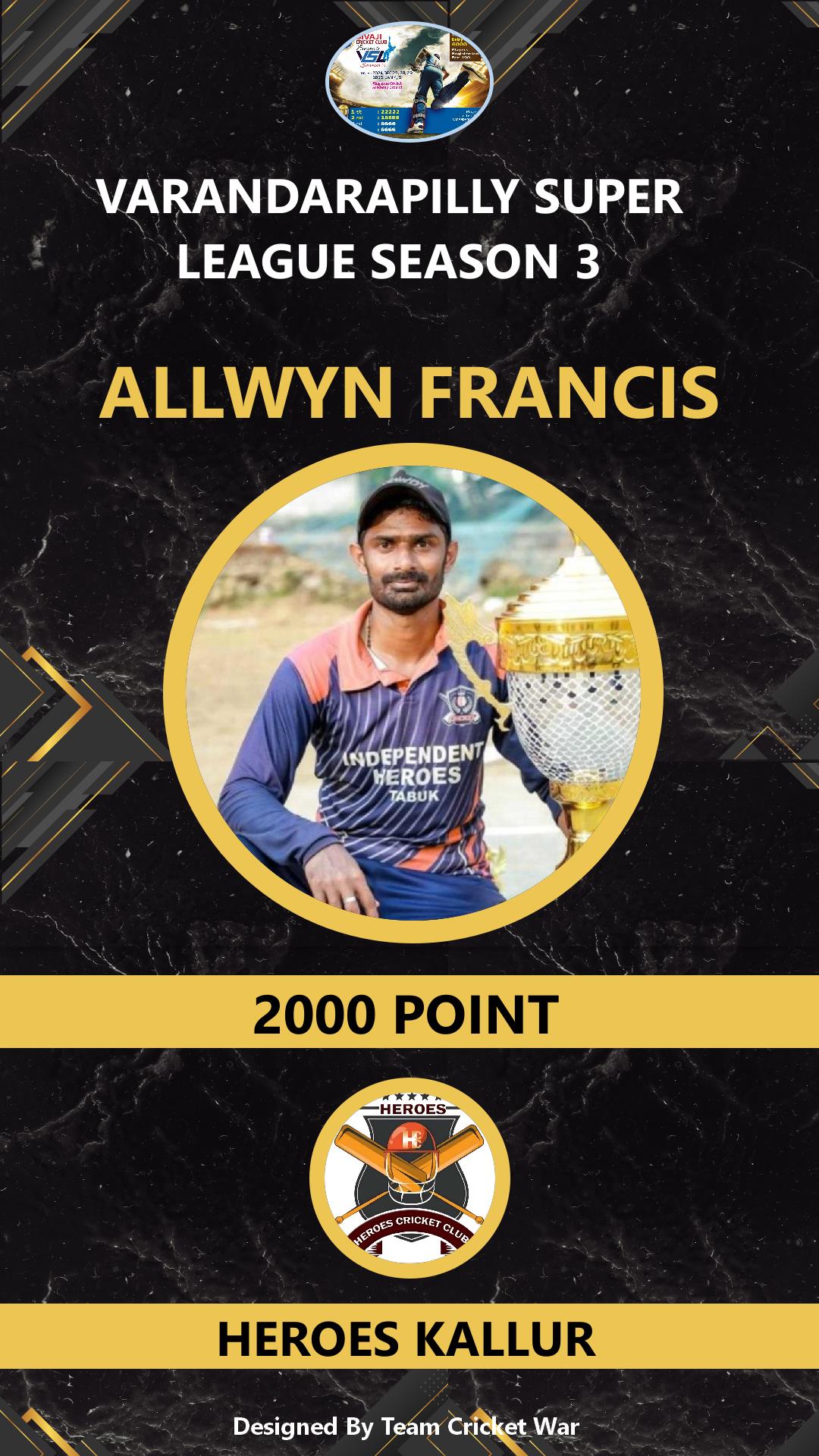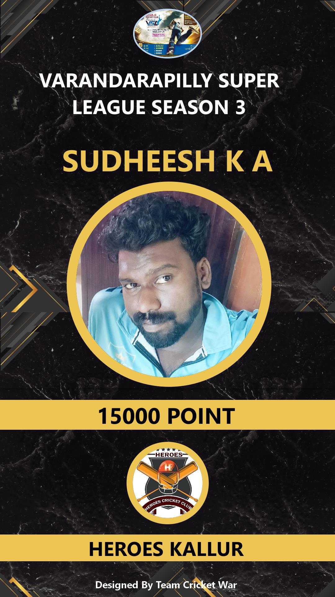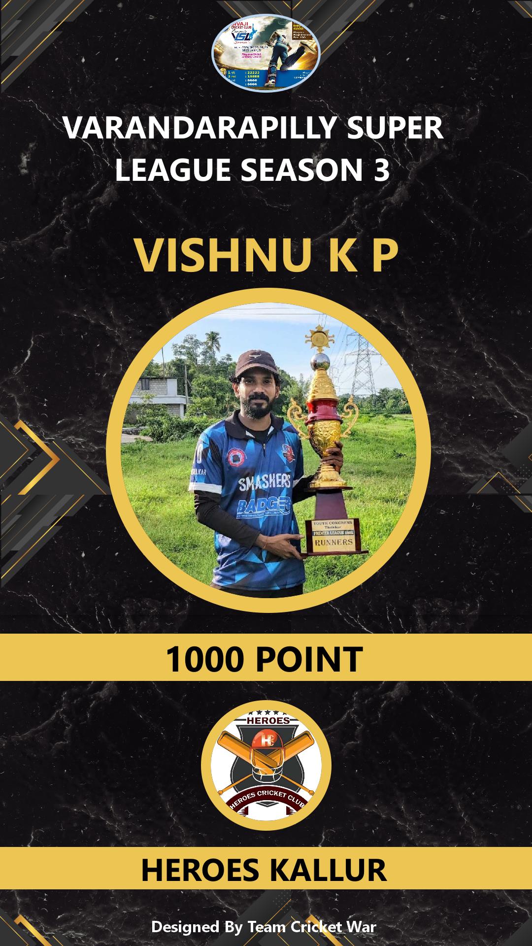 ALLROUNDER, AGE : 33 PUDUKAD Bid Amount : 1000 Team : HEROES KALLUR Download ID Card VIEW PROFILE |