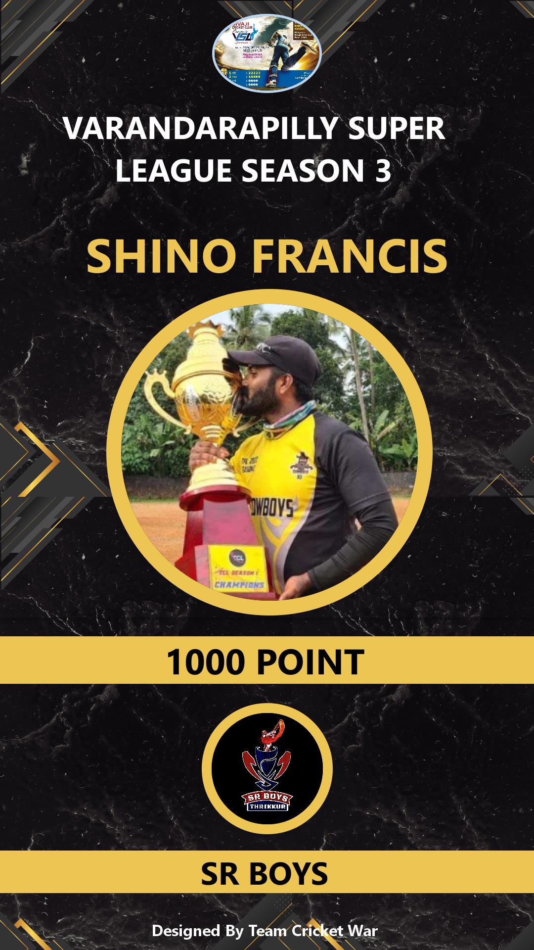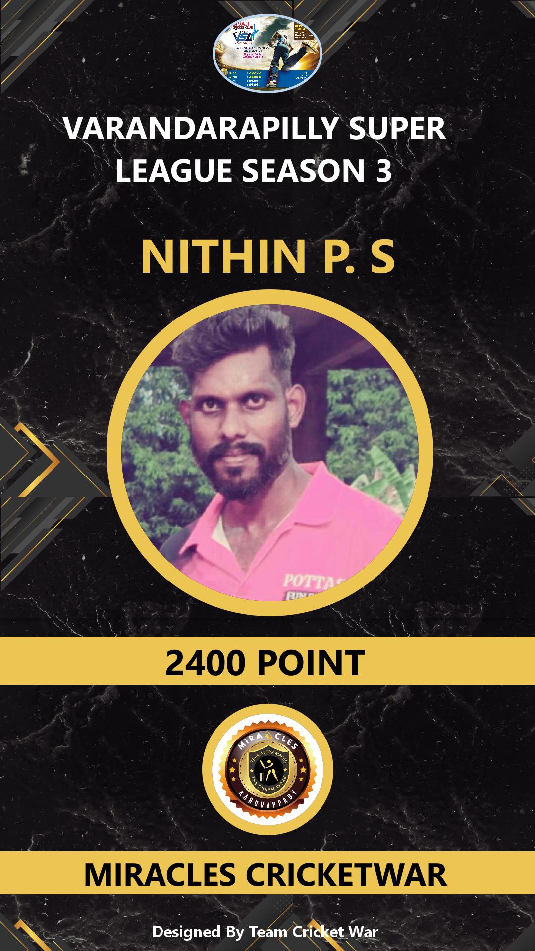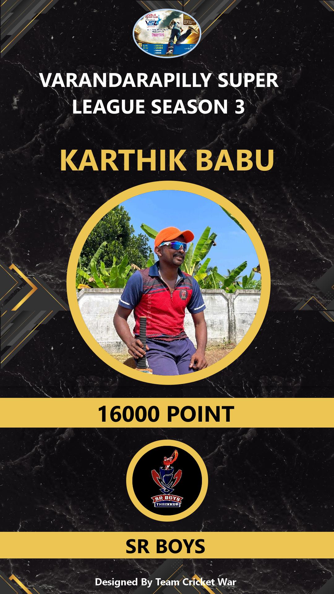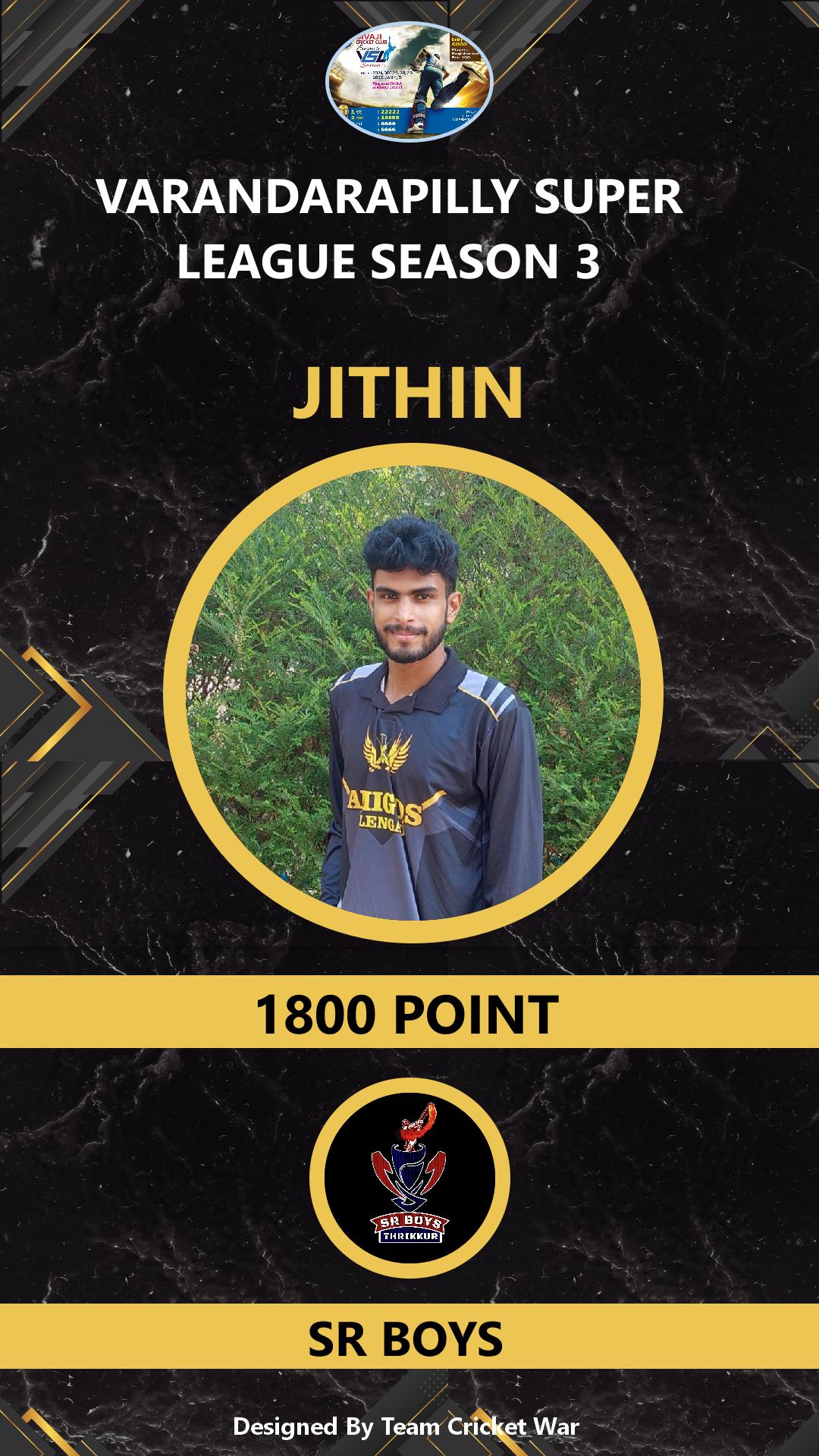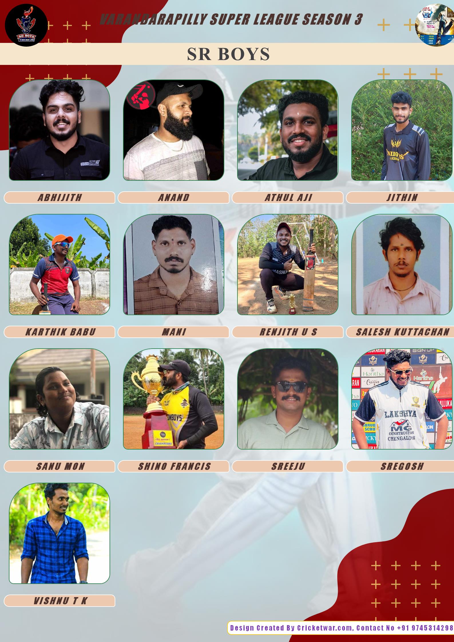 ALLROUNDER, AGE : 26 VARANDARAPPILLY Bid Amount : 2400 Team : SR BOYS Download ID Card VIEW PROFILE |