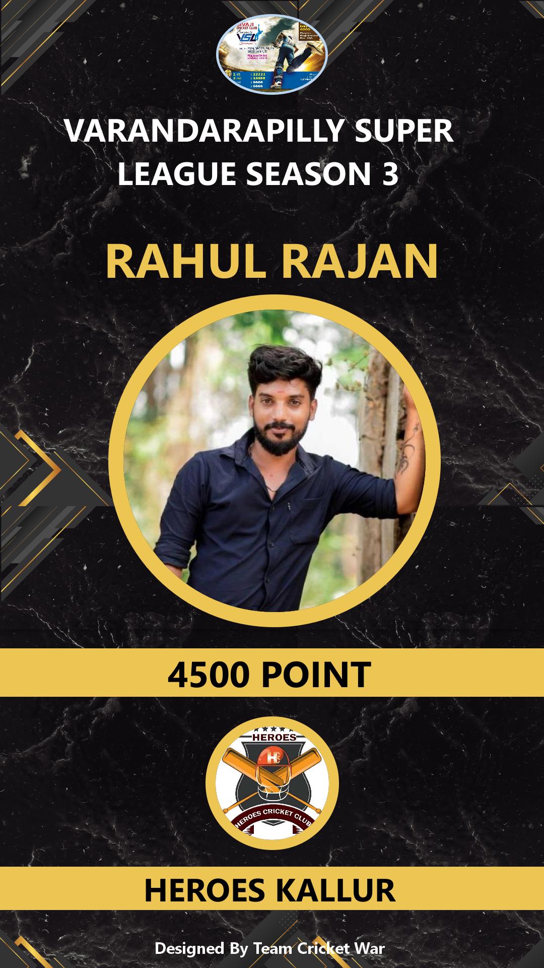ALLROUNDER, AGE : 38 RANDAMKALLU Bid Amount : 1400 Team : JANATHA SUPER KINGS Download ID Card VIEW PROFILE |