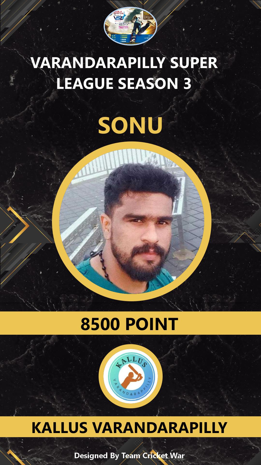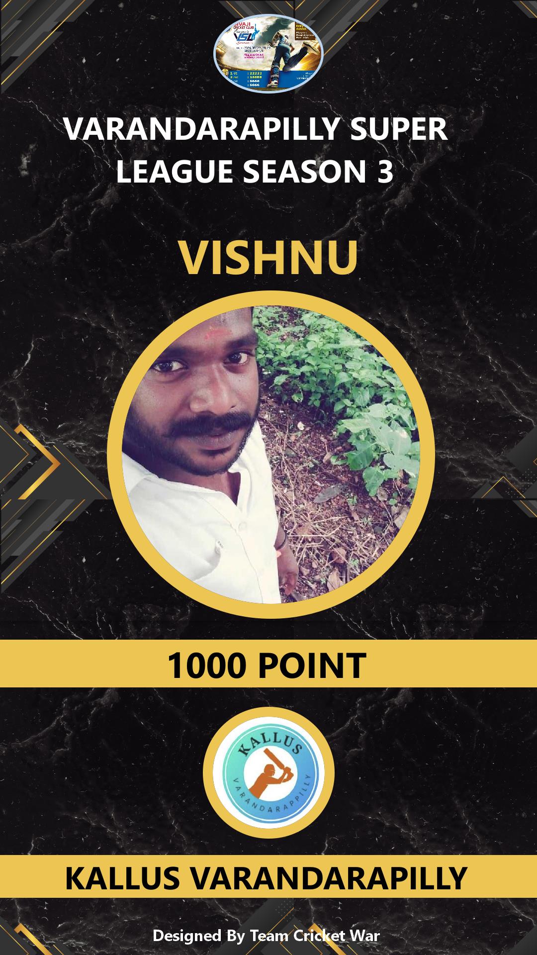 ALLROUNDER, AGE : 29 KALLIR Bid Amount : 2000 Team : SIVAJI VARANDARAPILLY Download ID Card VIEW PROFILE |