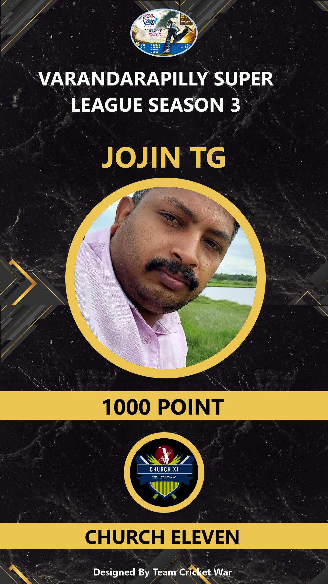 ALLROUNDER, AGE : 36 PALLIKUNNU Bid Amount : 1000 Team : CHURCH ELEVEN Download ID Card VIEW PROFILE |