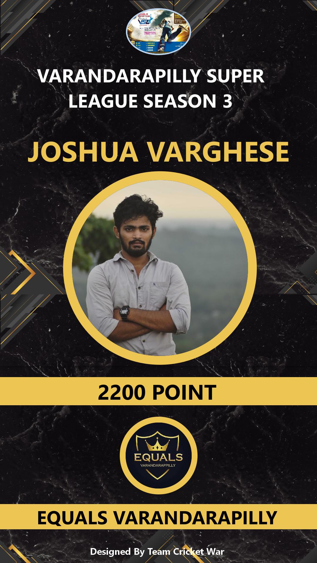 ALLROUNDER, AGE : 35 VARANDARAPPILLY Bid Amount : 12000 Team : EQUALS VARANDARAPILLY Download ID Card VIEW PROFILE |