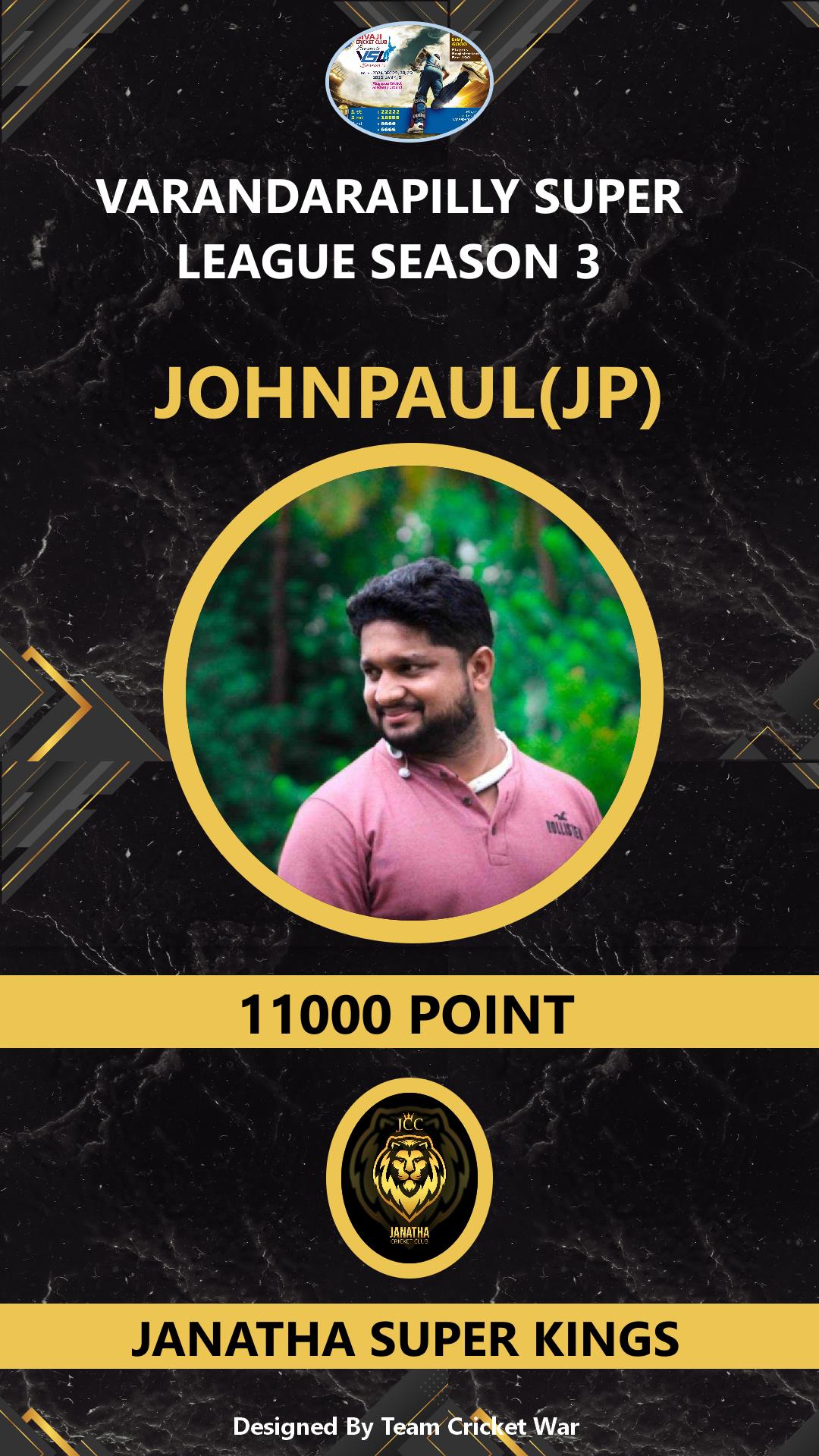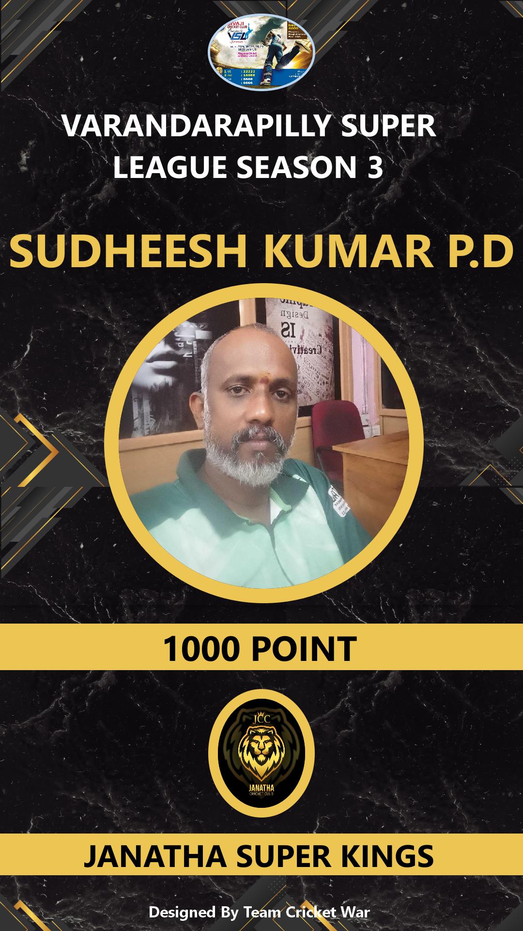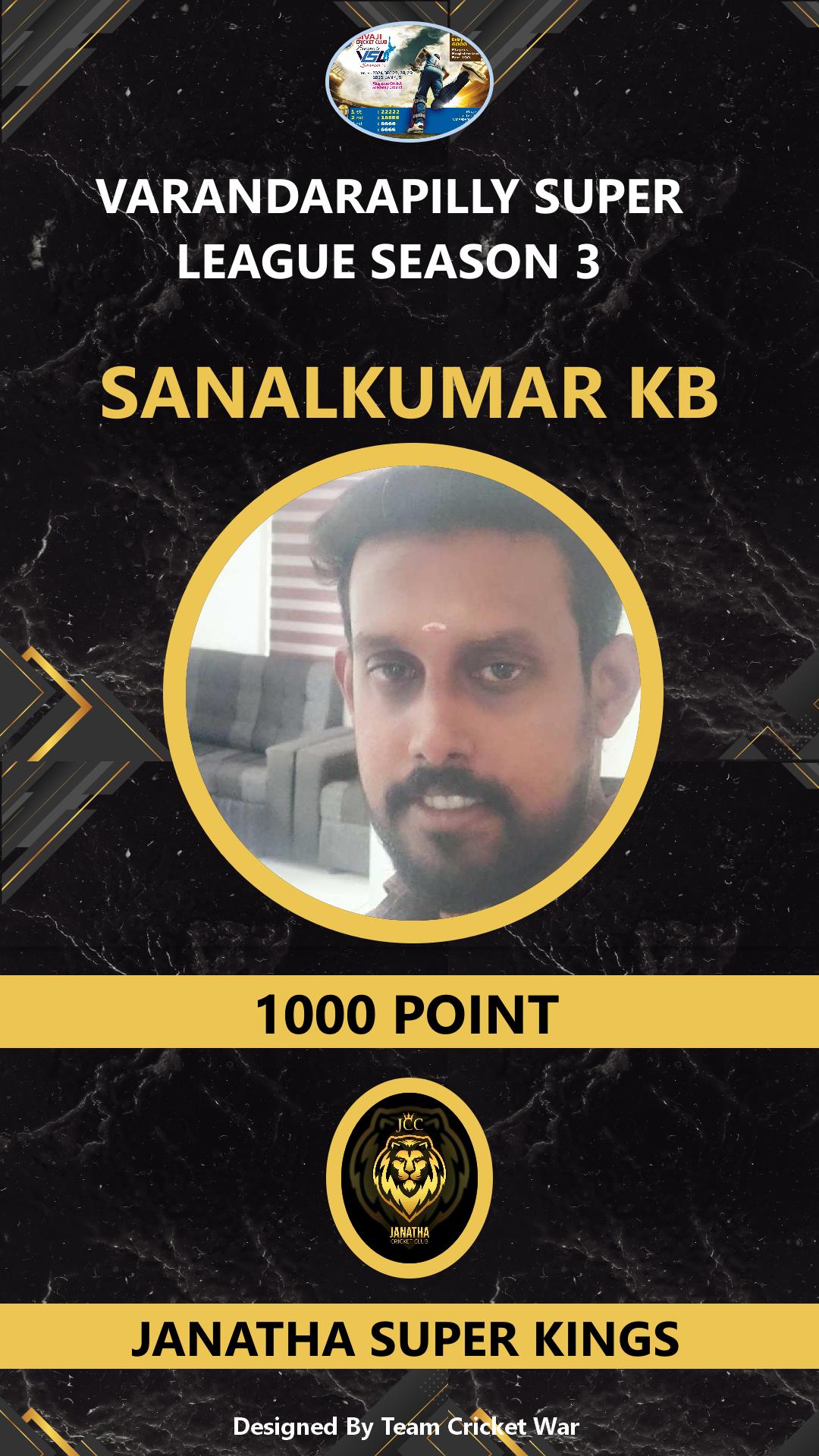 ALLROUNDER, AGE : 46 KALAVARAKKUNNU Bid Amount : 1000 Team : JANATHA SUPER KINGS Download ID Card VIEW PROFILE |