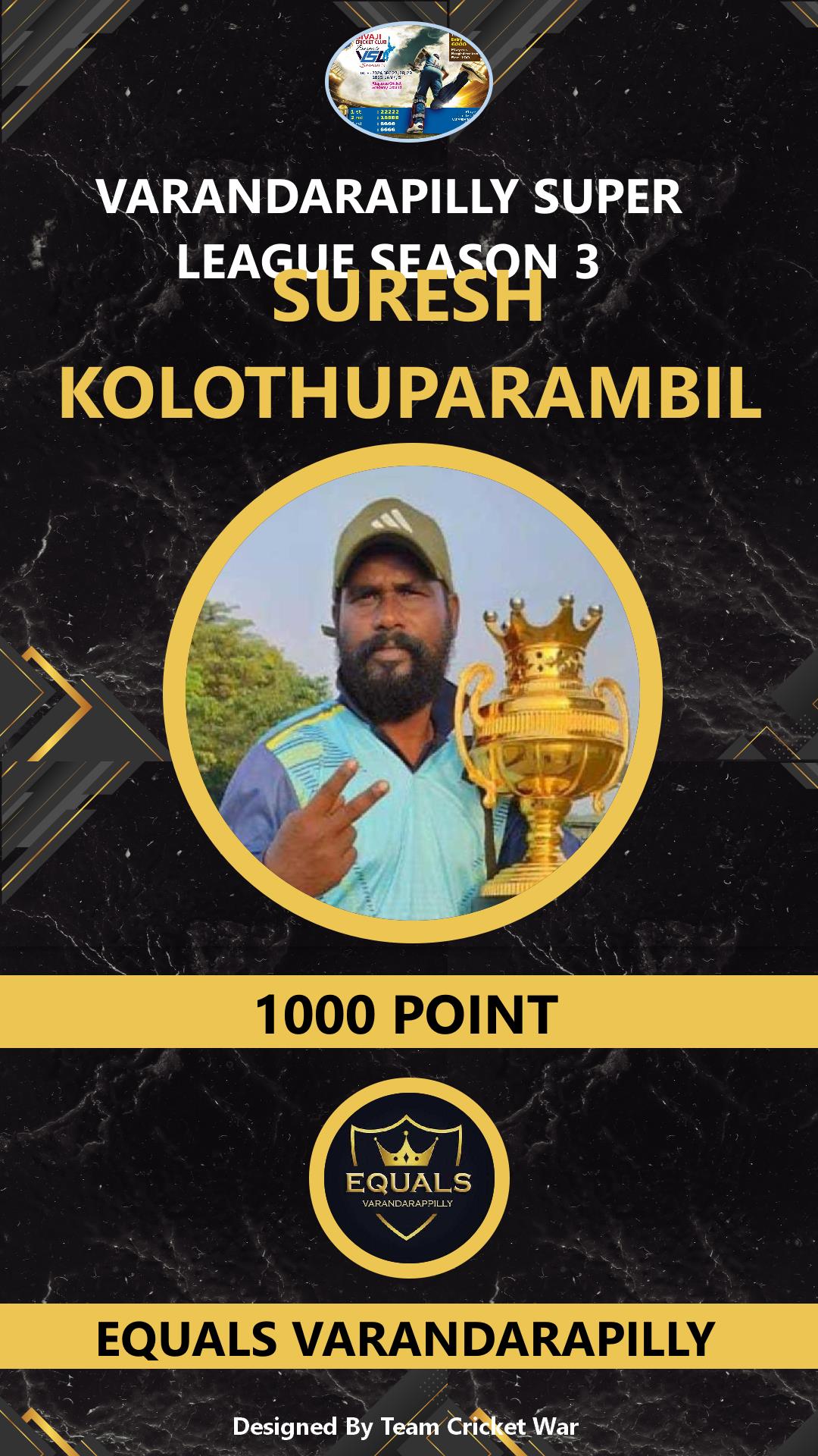 BATSMAN, AGE : 35 KALAVARAKKUNNU Bid Amount : 1000 Team : EQUALS VARANDARAPILLY Download ID Card VIEW PROFILE |