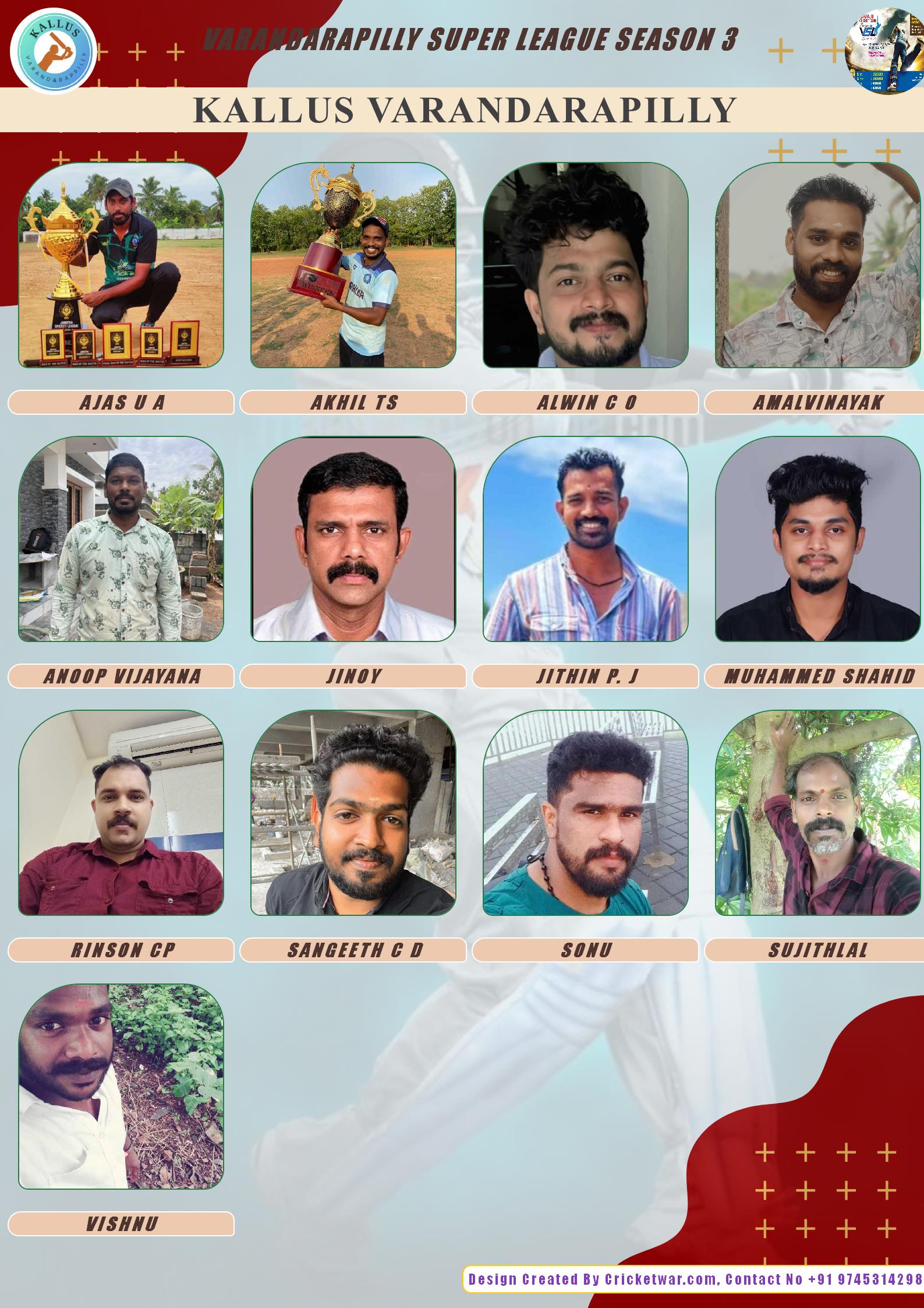 ALLROUNDER, AGE : 38 VARANDARAPPILLY Bid Amount : 9000 Team : KALLUS VARANDARAPILLY Download ID Card VIEW PROFILE |