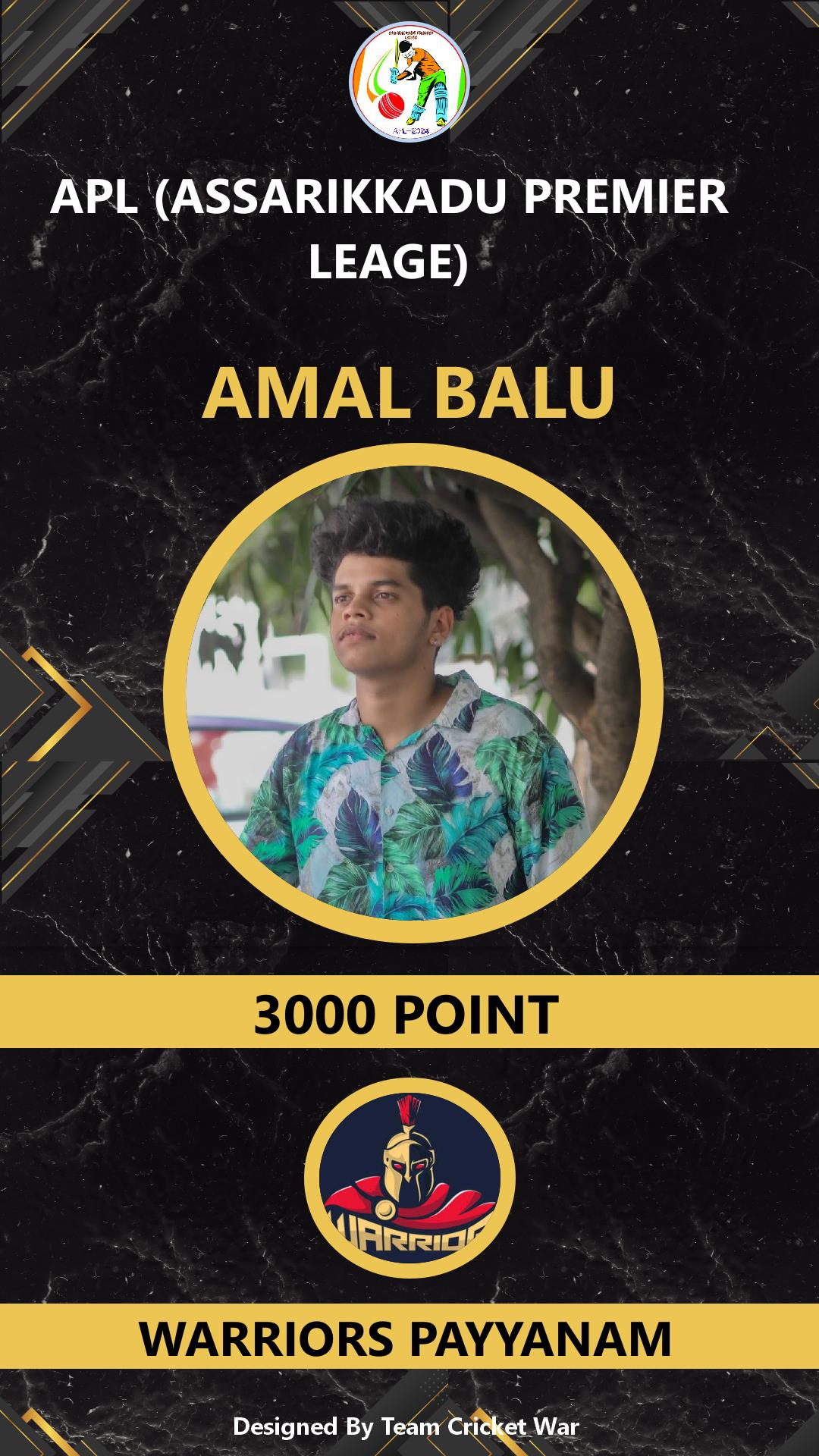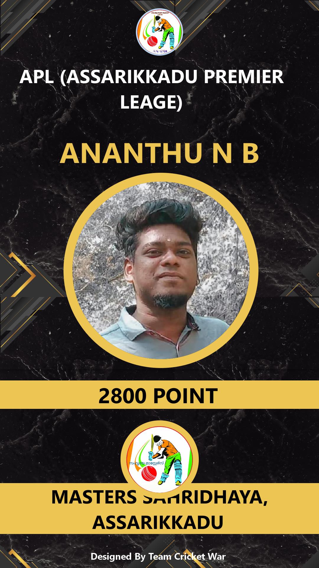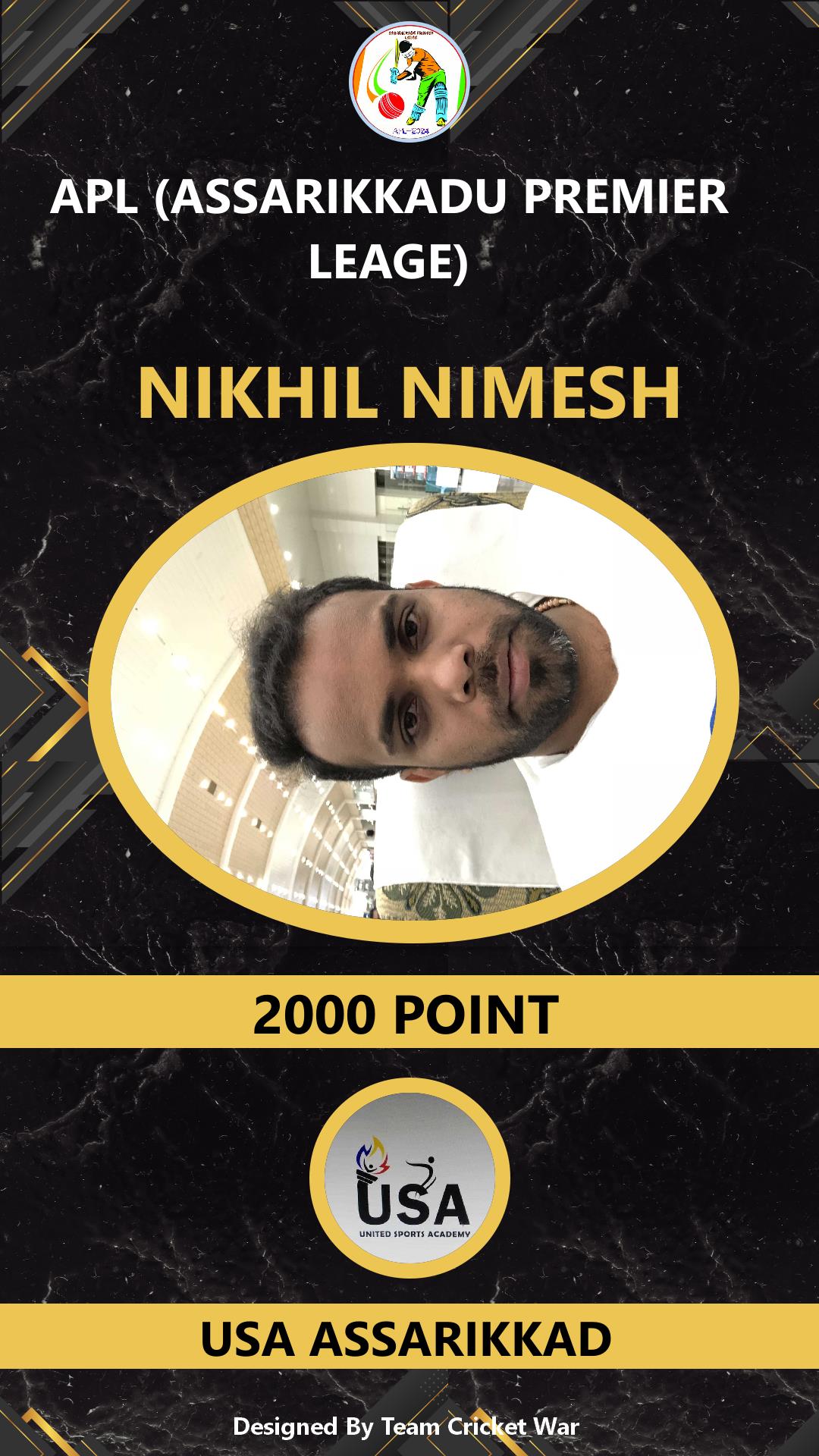 BATTING ALLROUNDER, AGE : 29 ASSARIKKAD VIEW PROFILE |