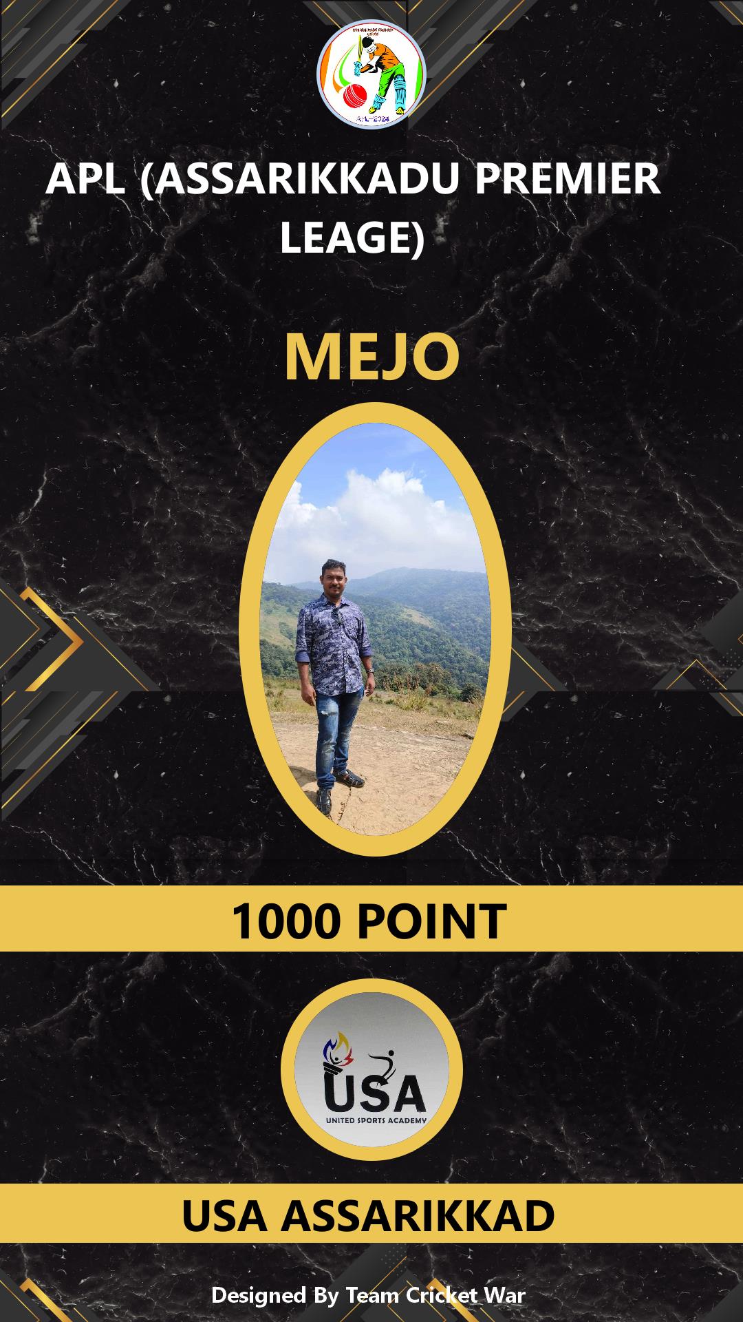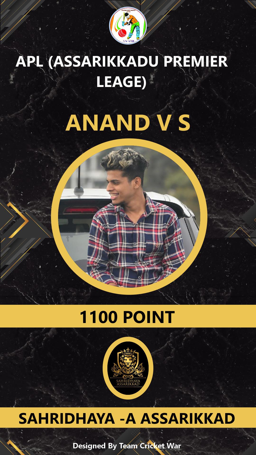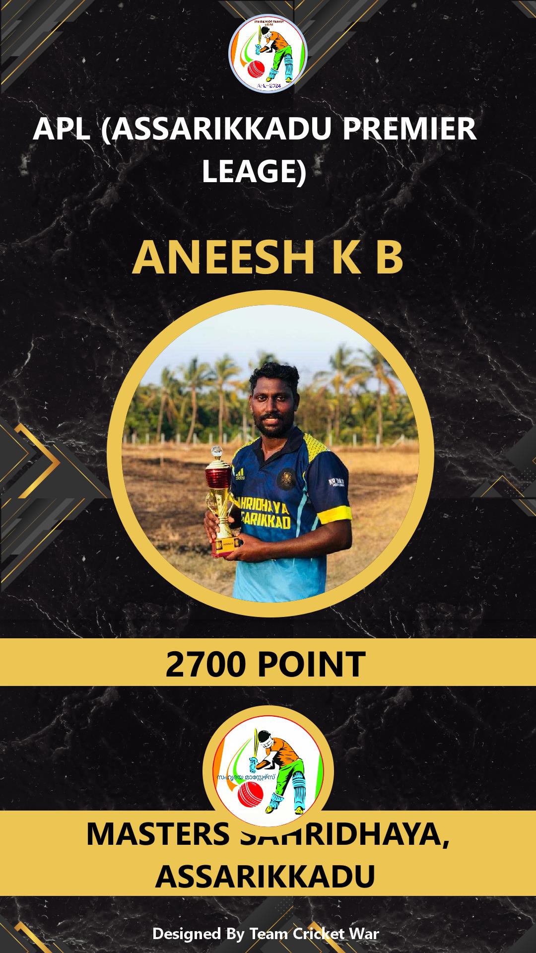 BATTING ALLROUNDER, AGE : 29 ASSARIKKAD VIEW PROFILE |