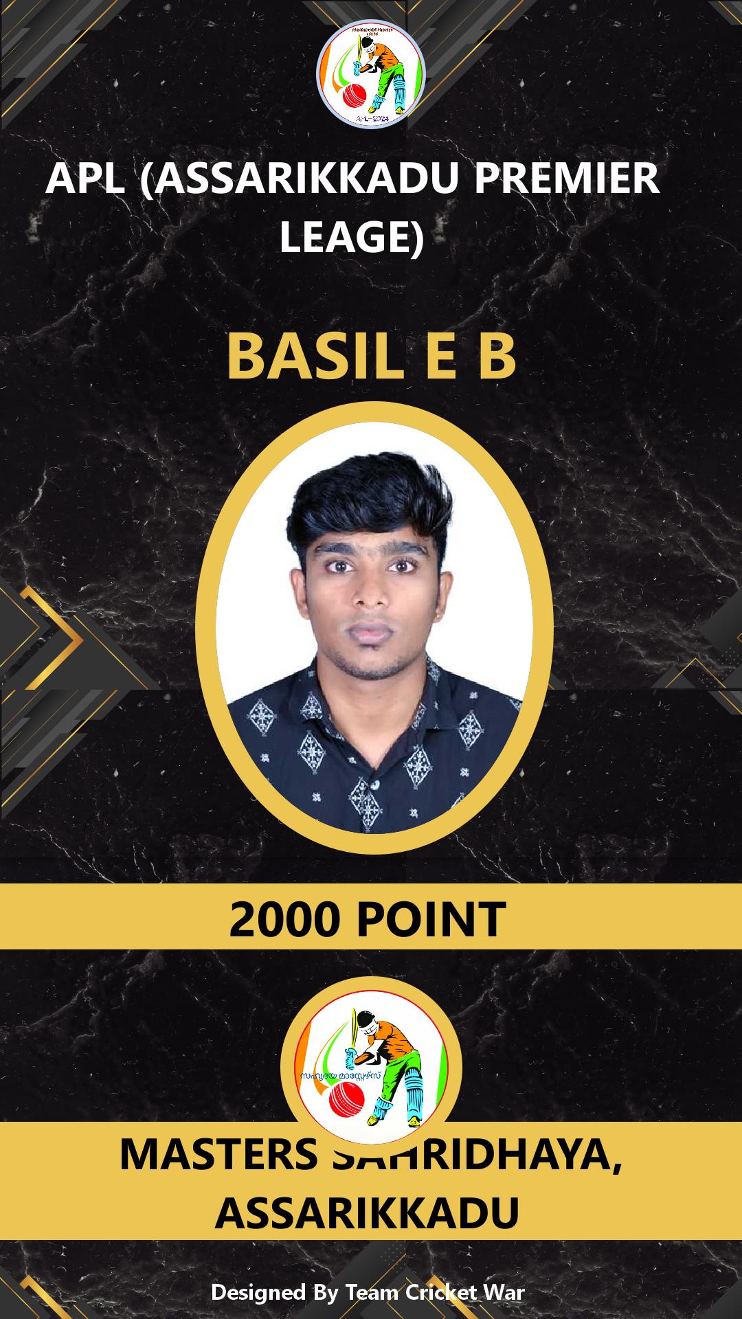 BATSMAN, AGE : 25 ASSARIKKAD Bid Amount : 2800 Team : MASTERS SAHRIDHAYA, ASSARIKKADU Download ID Card VIEW PROFILE |